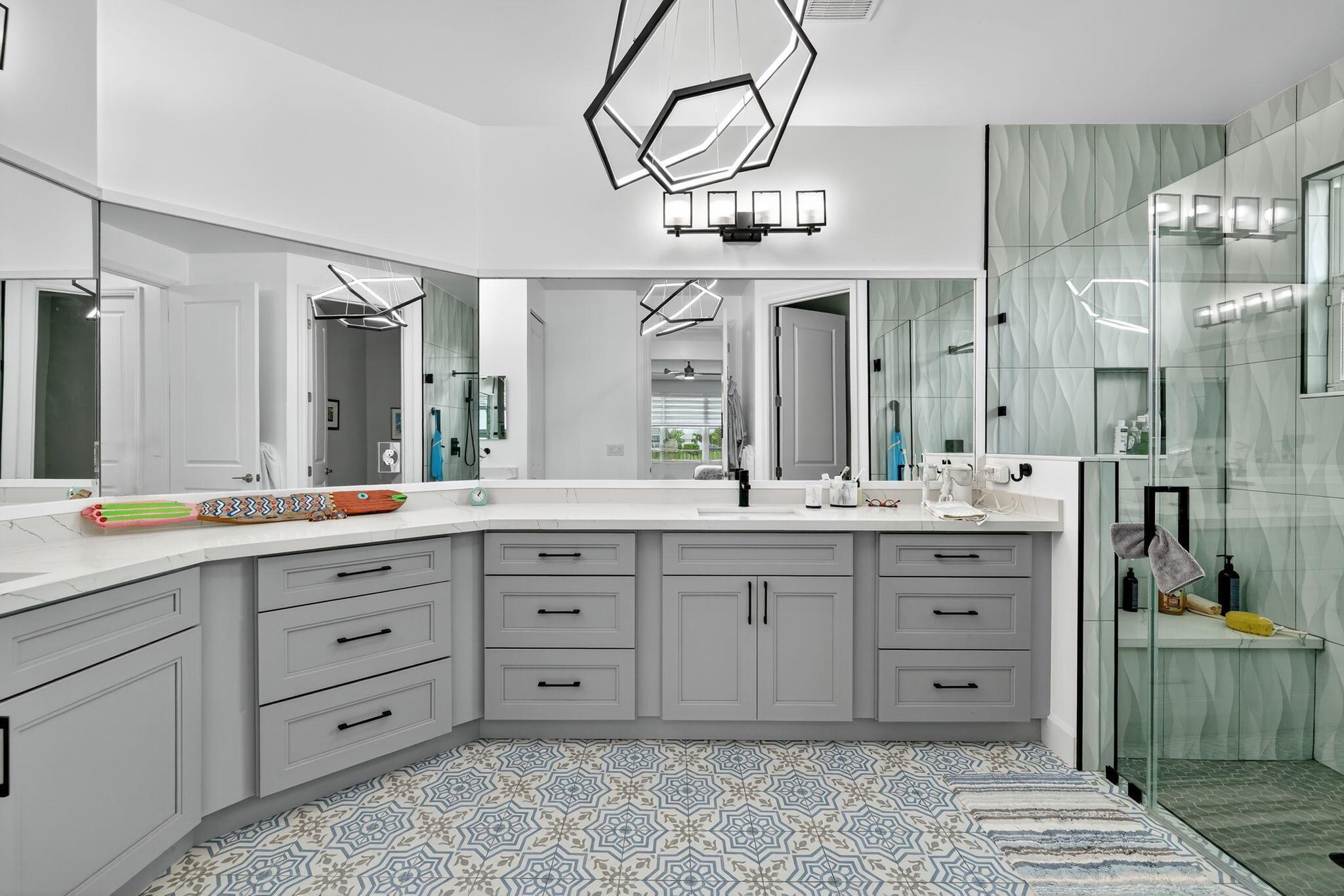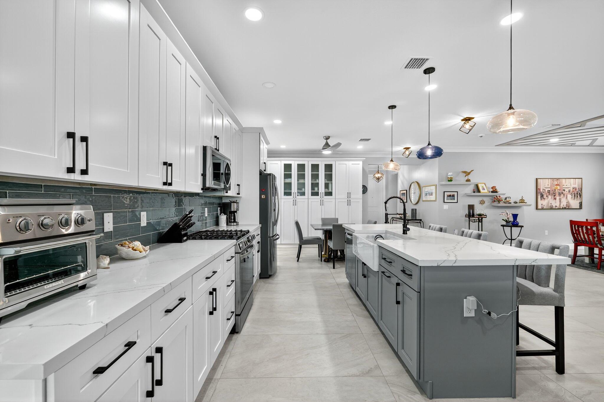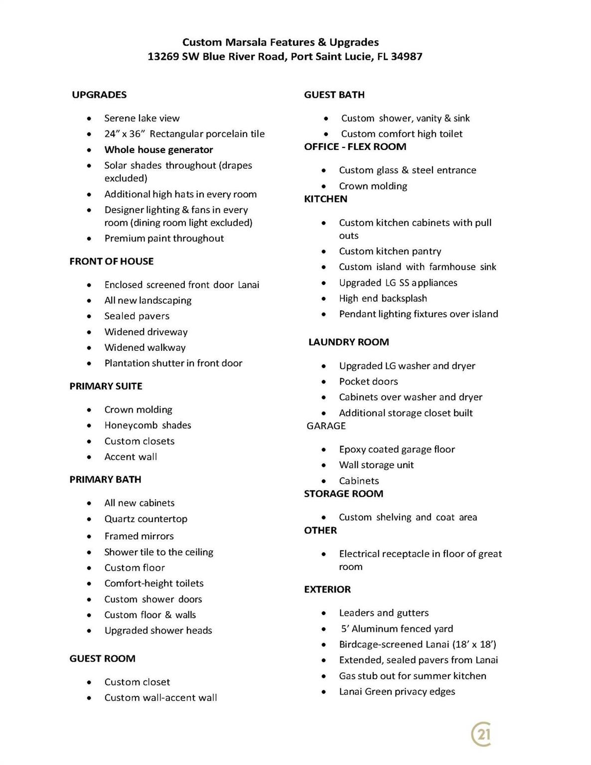 Welcome to GL's premier 55+ community of Valencia Grove at Riverland--where sophistication meets thoughtful design. Originally a Marsala model, this exceptional home has been custom reimagined and reconfigured by an architect to create a truly one-of-a-kind residence offering luxury, comfort, and functionality throughout its 2,127 square feet under air. From the moment you arrive, the widened driveway, sealed pavers, and refreshed landscaping make a striking first impression. Inside, every detail has been meticulously curated, featuring 24'' x 36'' porcelain tile flooring, crown molding, designer lighting, premium paint, and solar shades throughout. The chef's kitchen is a showpiece with custom cabinetry, a full pantry, pull-out shelving, a farmhouse-style island sink, high-end backsplash,