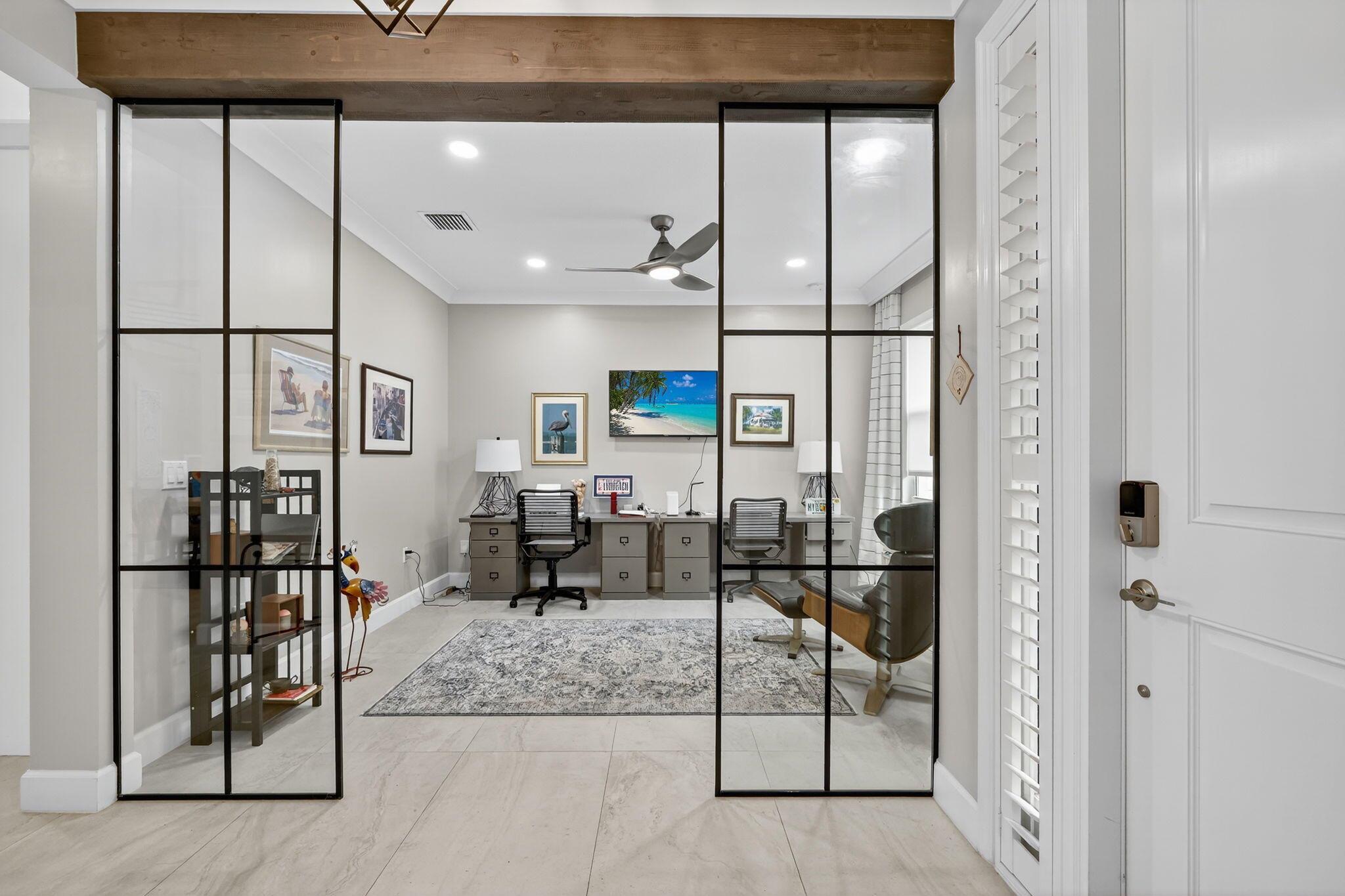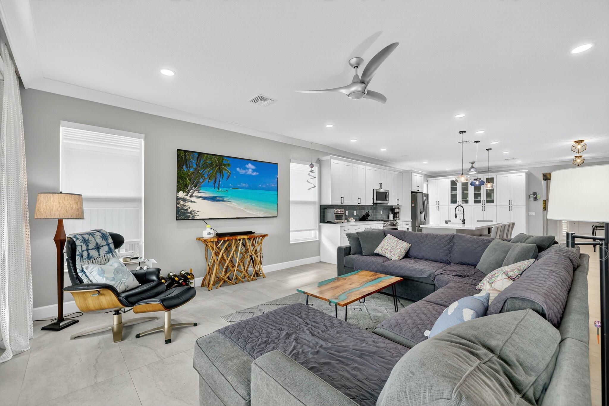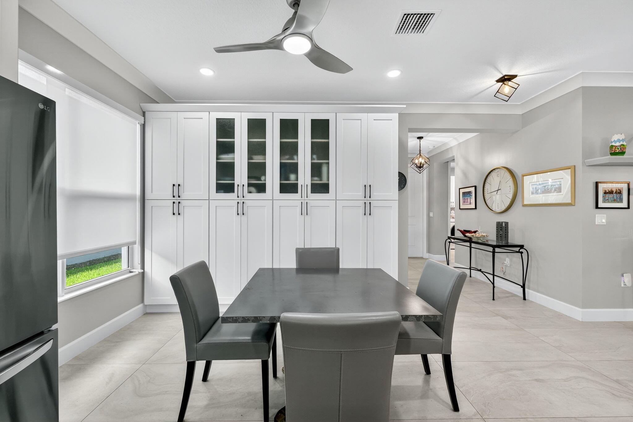 Welcome to GL's premier 55+ community of Valencia Grove at Riverland--where sophistication meets thoughtful design. Originally a Marsala model, this exceptional home has been custom reimagined and reconfigured by an architect to create a truly one-of-a-kind residence offering luxury, comfort, and functionality throughout its 2,127 square feet under air. From the moment you arrive, the widened driveway, sealed pavers, and refreshed landscaping make a striking first impression. Inside, every detail has been meticulously curated, featuring 24'' x 36'' porcelain tile flooring, crown molding, designer lighting, premium paint, and solar shades throughout. The chef's kitchen is a showpiece with custom cabinetry, a full pantry, pull-out shelving, a farmhouse-style island sink, high-end backsplash,
