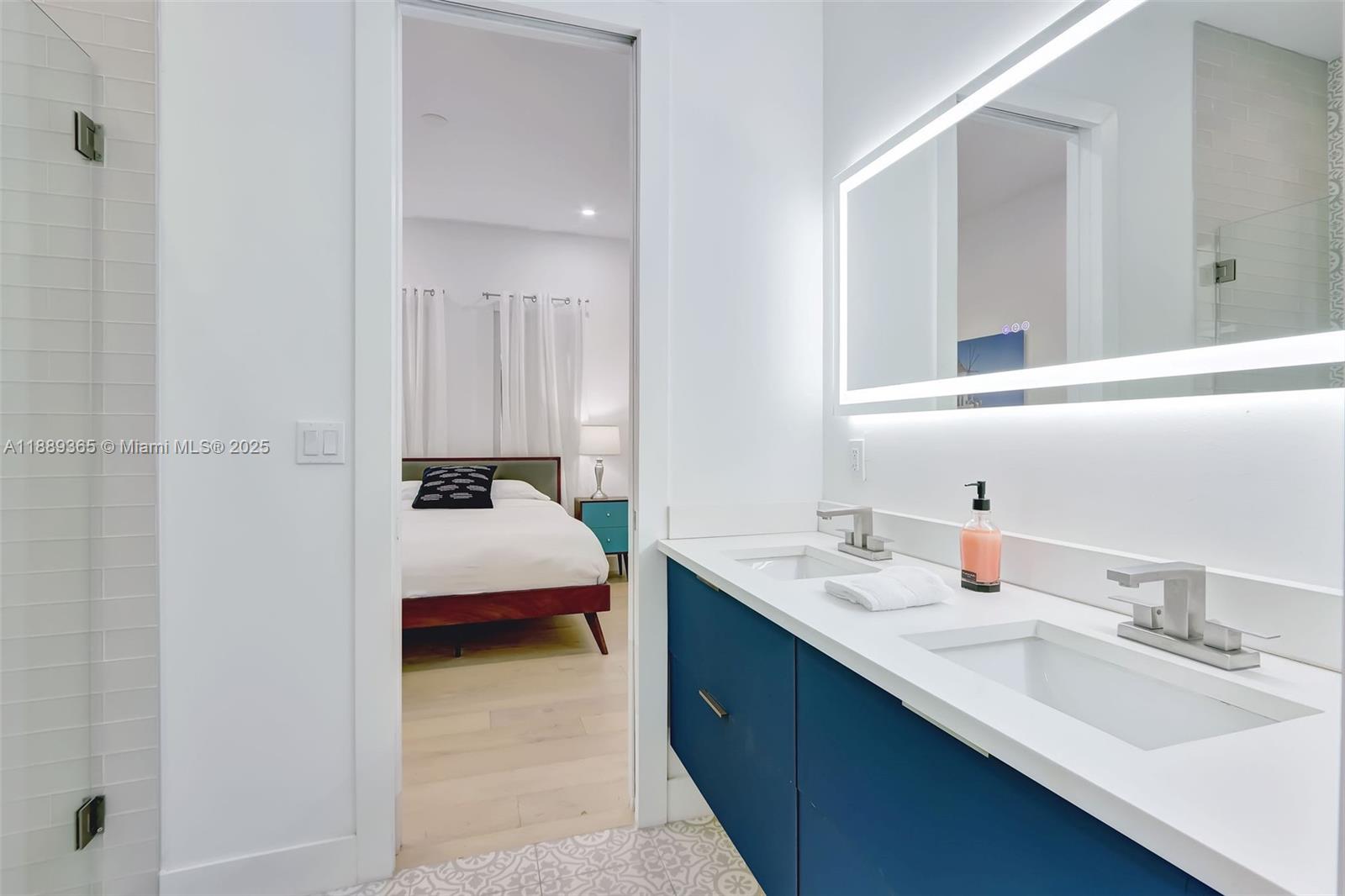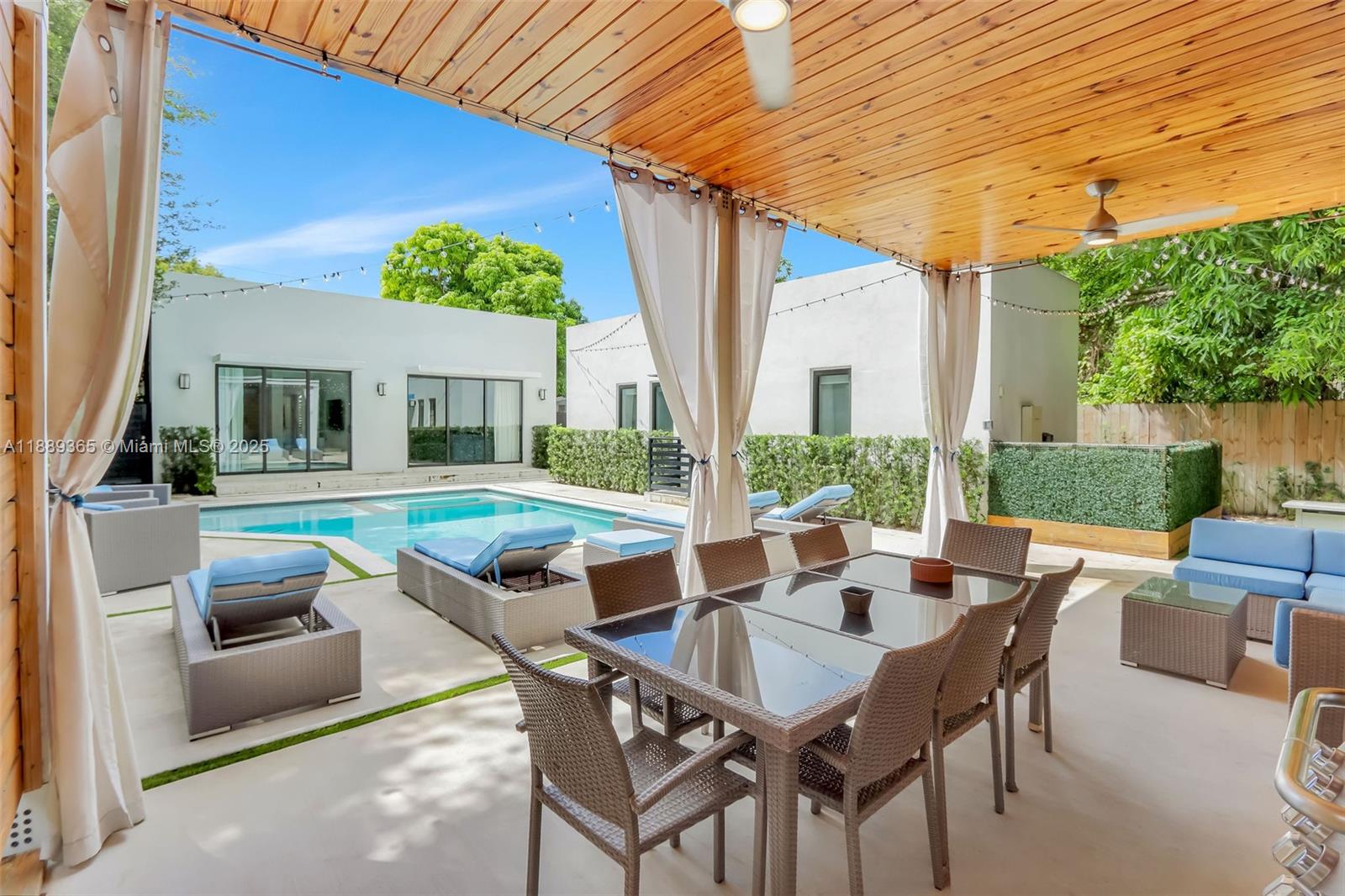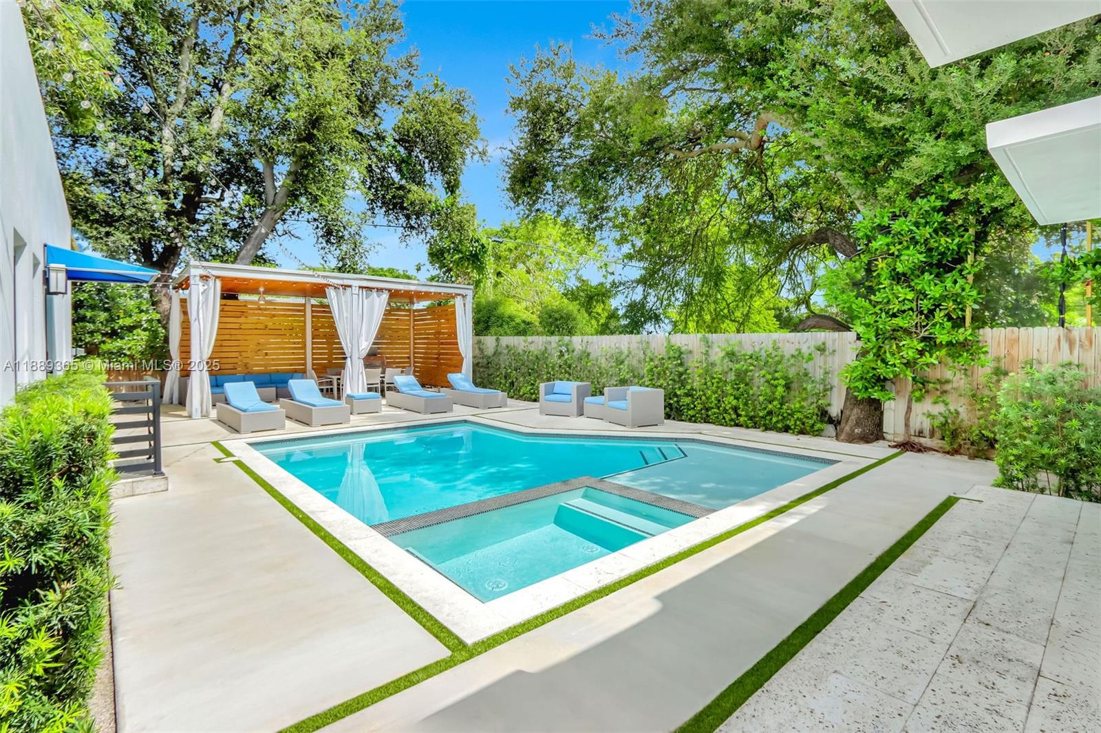 Built in 2022, this nearly 2,300 sq ft, 5 bed/3.5 bath Buena Vista home blends modern style, convenience, just one block from Miami's Design District. The main house offers 3 bedrooms, 2.5 baths, soaring 10-ft ceilings, and an open flow-through layout that extends seamlessly to an entertainer’s backyard with a resort-style pool, hot tub and covered terrace. The private, fenced 7,200 sq ft low maintenance lot features turf, concrete patio spaces, and two mature mango trees. The spacious primary suite includes a walk-in closet and spa-like bath. A separate 2-bedroom, 1-bath guest house with kitchenette is ideal for visitors, multi-gen living, or gym/office space. On a quiet street lined with new construction homes, this house is minutes from Wynwood, Brickell, Miami Beach, and the airport.