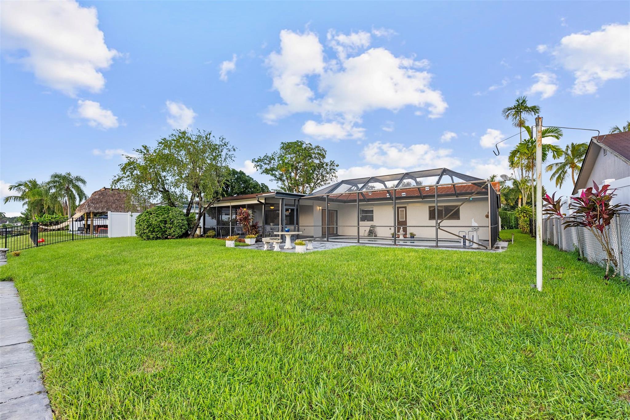 The care shows in every detail with just ONE proud owner on this oversized 11,000 sq ft lot. Make this your private oasis with the lush landscaping, sparkling pool, & lake views. The kitchen was remodeled in 2023. BONUS: gas stove! Impact windows, A/C, water heater, & tiled roof all updated in 2017, and the flat patio roof was redone in 2023 for added peace of mind. 2-car garage, freshly painted W/central A/C, flexibility for a workout area, workshop, etc. Other perks: upgraded electrical panel, renovated shed, cleaned underground plumbing, and PVC water pipes. Generous outdoor space, this home could easily be converted into 3 or 4 bedrooms, giving you room to grow. Near top-rated schools, this rare gem blends comfort, style, and versatility—come see the pride of ownership for yourself!