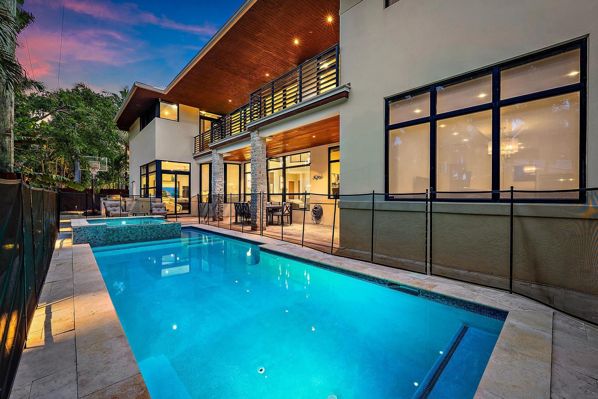 6 beds + den! This grand home is the perfect balance of modern and quaint, equipped with 22 foot ceilings, gated entrance, pool and playground. A main bedroom upstairs and a main bedroom downstairs, it is perfect for any buyer! The chefs kitchen, family room, summer kitchen and back patio are the perfect place to relax at the end of a long day! Coral Ridge is the premier no HOA neighborhood of Fort Lauderdale, featuring a huge neighborhood park w/ competitive pickleball, access to the intracoastal and a short bike ride to The soon to be renovated Galleria mall! This home is close to the ocean and great restaurants, a true gem. The house is priced well and ready to welcome you, it's next owner!
