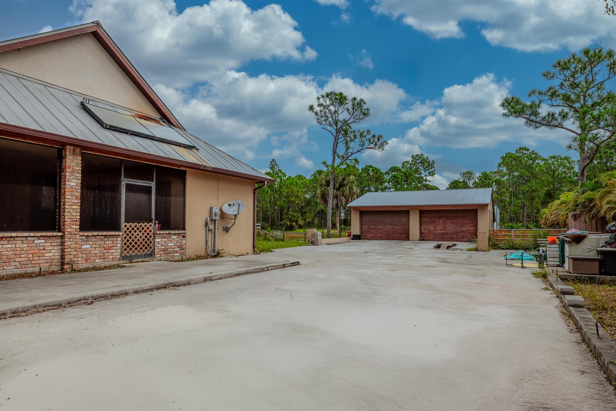Welcome to your private retreat! This charming ranch-style home sits on 1.16 acres in a peaceful natural preserve setting, offering the perfect blend of privacy & convenience. The property features a spacious 4-car detached garage, providing ample room for vehicles, storage or a workshop. Enjoy the open-style front porch, perfect for relaxing & taking in the tranquil surroundings. The large yard offers plenty of space for horses, outdoor activities, or even a future pool. Inside, you'll find a large unfinished attic with endless potential. Located on private roads, you can ride your 4-wheelers, UTVs, or horses right from your property, all while being just minutes from I-95, shopping, and restaurants. Enjoy peaceful country living with the convenience of city amenities. Come see it today!
