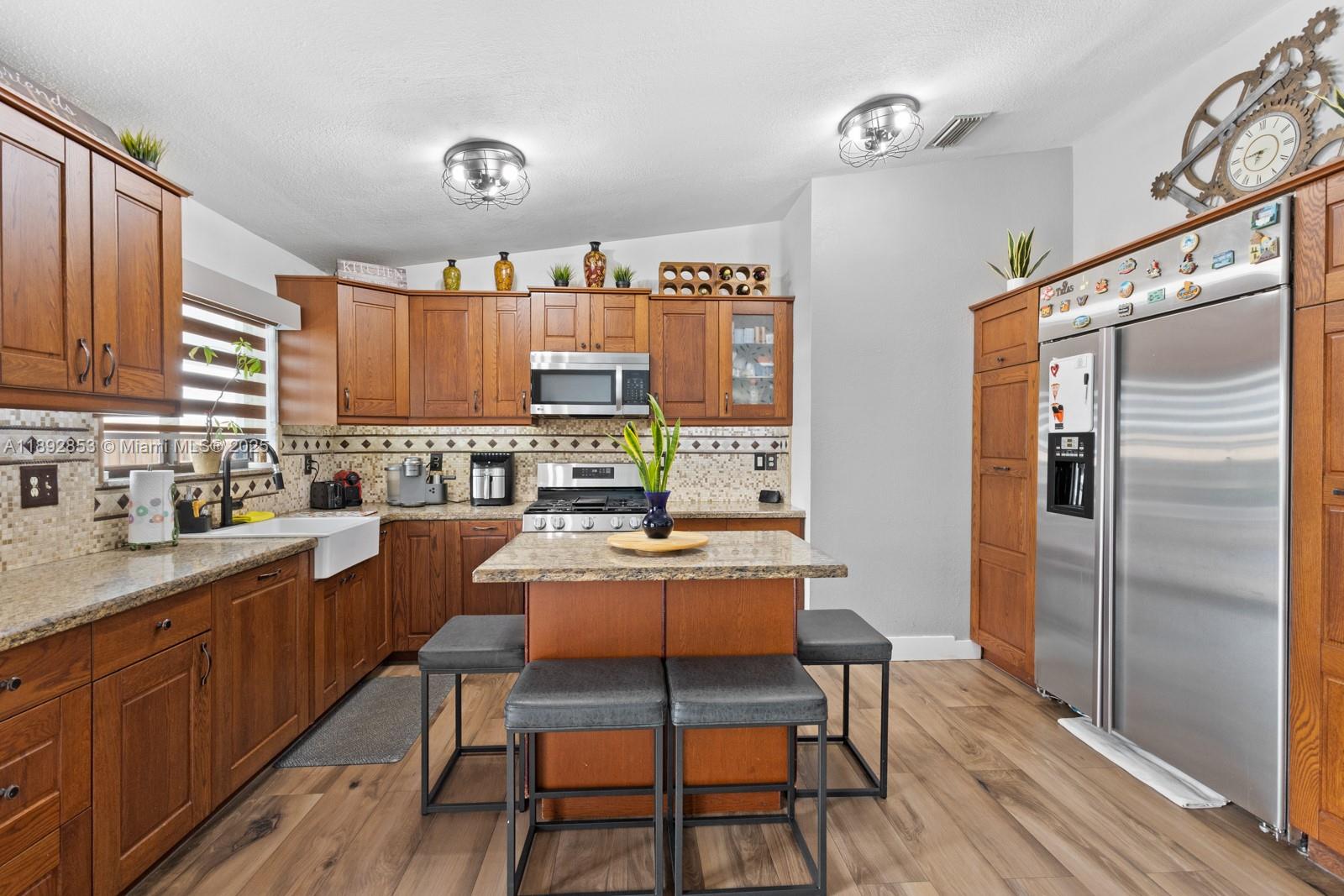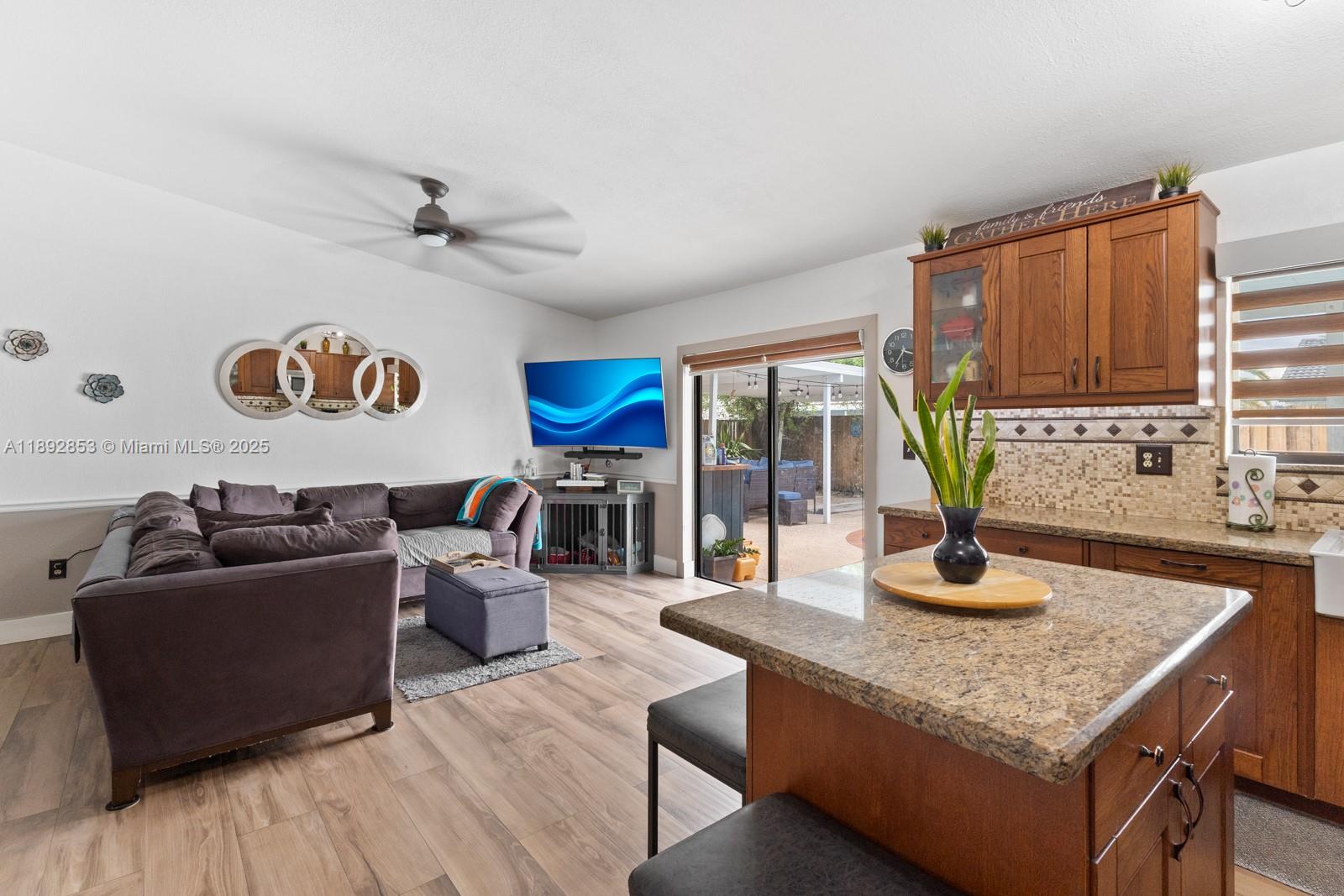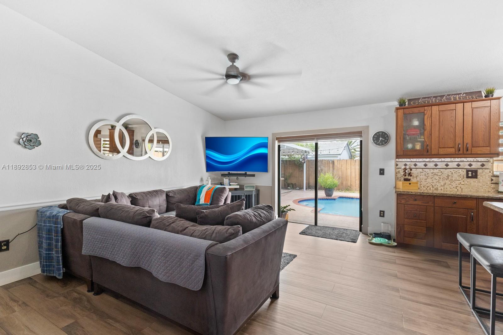 This is the one you were waiting for! A cozy 4/2 home within in the quiet Luz Estela neighborhood which is free of any HOA. The home has a 2-car garage, hurricane shutters, new roof. Inside, the layout is one that lends itself for entertaining. You will find updated laminate & tile floors throughout. All bedrooms are on the main level with the primary on one side of the home and the remaining 3 on the opposite side. Updated kitchen with plenty of cabinet space, with newer appliances for all your cooking needs. With small changes you can make this house your family's next home. Beyond the doors of the family room, you step out to a backyard laid out for outdoor fun. It is fully fenced to ensure privacy with a pool, jacuzzi & fruit trees, perfect for relaxing with family or hosting friends.