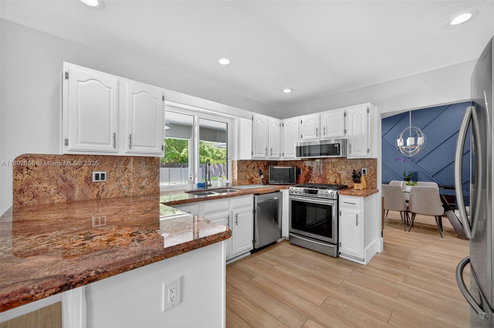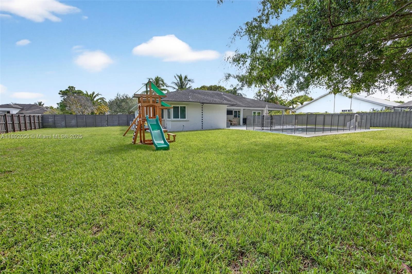 Discover the perfect blend of space and comfort in this beautiful home set on an oversized 17,040 sq. ft. lot. Designed for privacy, it features a hallway door separating all bedrooms from the main living spaces, plus a family room, dining area, and large open kitchen ideal for entertaining. Enjoy outdoor living with a spacious covered terrace, pool built in 2021 (salt water), full sprinkler system, and plenty of yard space. Upgrades include impact windows, updated electrical panel (2020), gas, tankless water heater, PVC piping, gas range & dryer, A/C (2020), and water heater (2021), Roof 2025! — schedule a showing today!