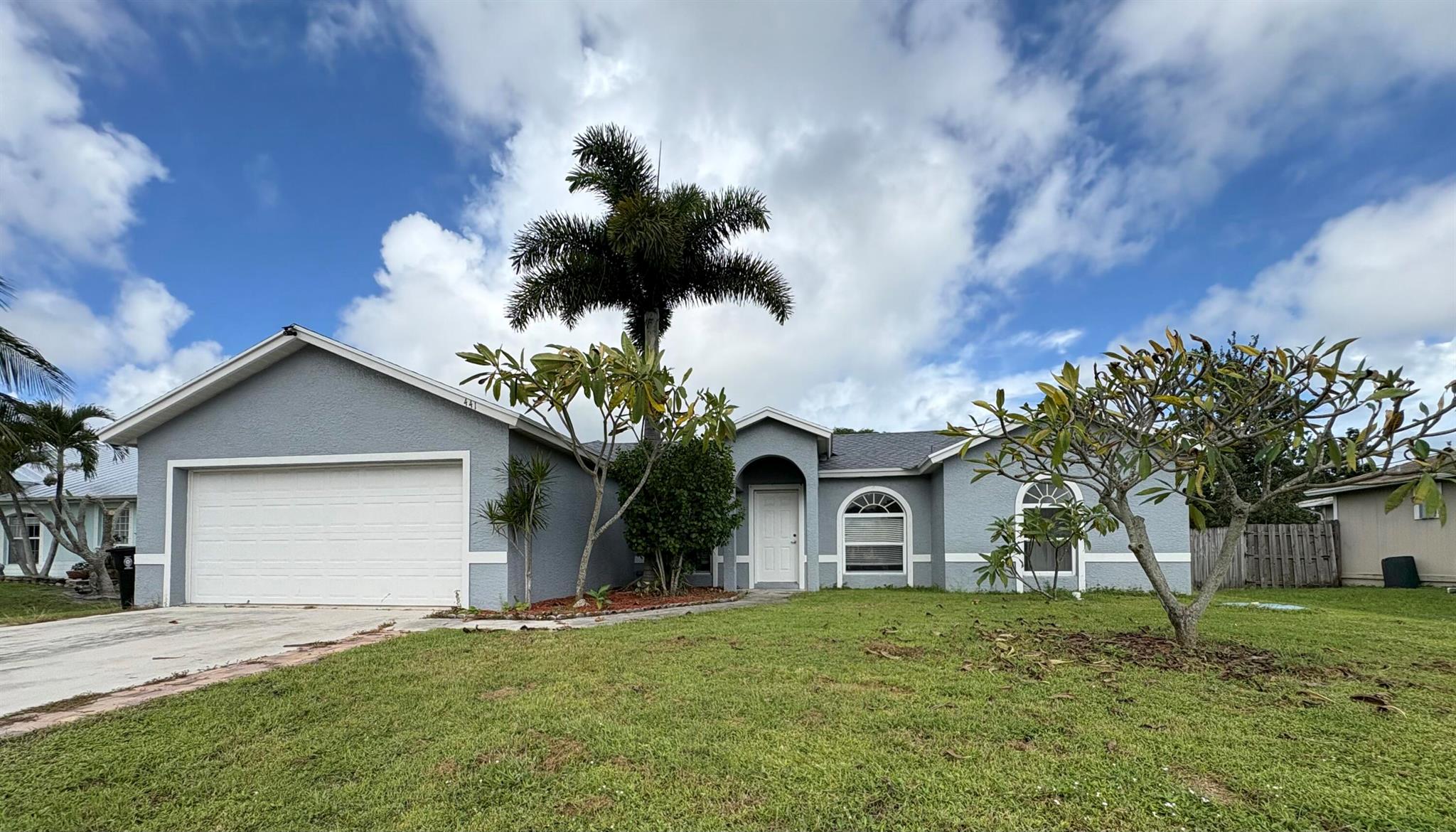Welcome to this beautifully designed three-bedroom, two-bathroom home with a two-car garage! Built with durable CBS construction, this home features a brand-new roof installed in August 2025. Located in the heart of Port St. Lucie, it offers spacious formal areas including a living room, dining room, and family room--all with tile flooring throughout.One of the standout features of this property is the versatile flex room, perfect for a private office, nursery, workout space, or anything your imagination inspires. Inside, you'll also find an indoor laundry area, a utility closet, and a spacious master bedroom with two closets--one of them a walk-in.With a lush backyard featuring several fruit trees and an open patio, ideal for relaxing or grilling with family. Schedule an Appt. today.