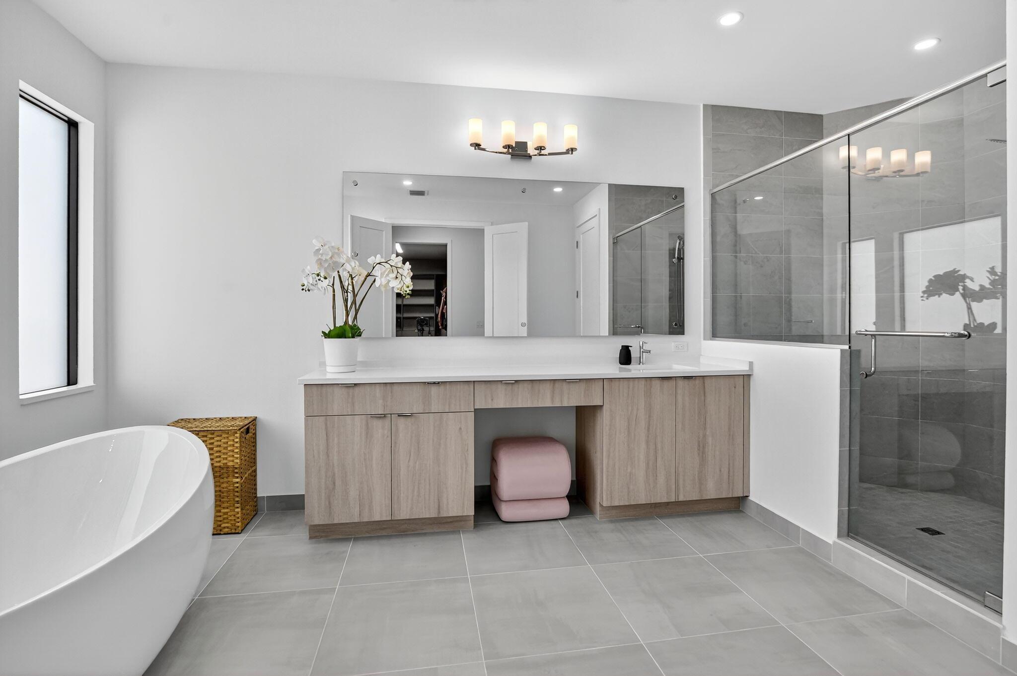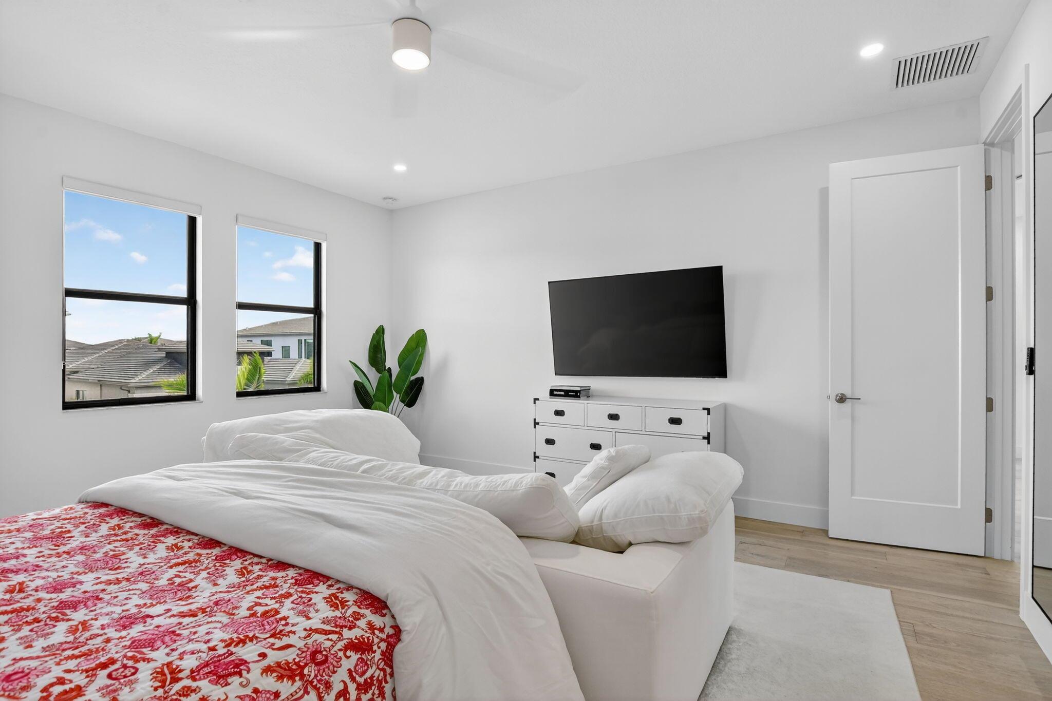 Step into tropical serenity the moment you walk through the door to your own private saltwater pool and your view is a secluded backyard surrounded by lush greenery. This Polynesian blends modern minimalism with calm, airy sophistication. Upstairs showcases upgraded engineered hardwood and sleek mini high-hat lighting. The primary suite features dual bathrooms and two closets, including an oversized walk-in worthy of a dream wardrobe. A stub-out awaits your future summer kitchen. Entertain downstairs and relax upstairs, this home defines balance. Lotus Palm offers resort-style living with pickleball, tennis, fitness center, restaurant, outdoor bar, splash zone, and year-round events. Living in Lotus Palm is like living in a resort year round, get ready to live the lifestyle.
