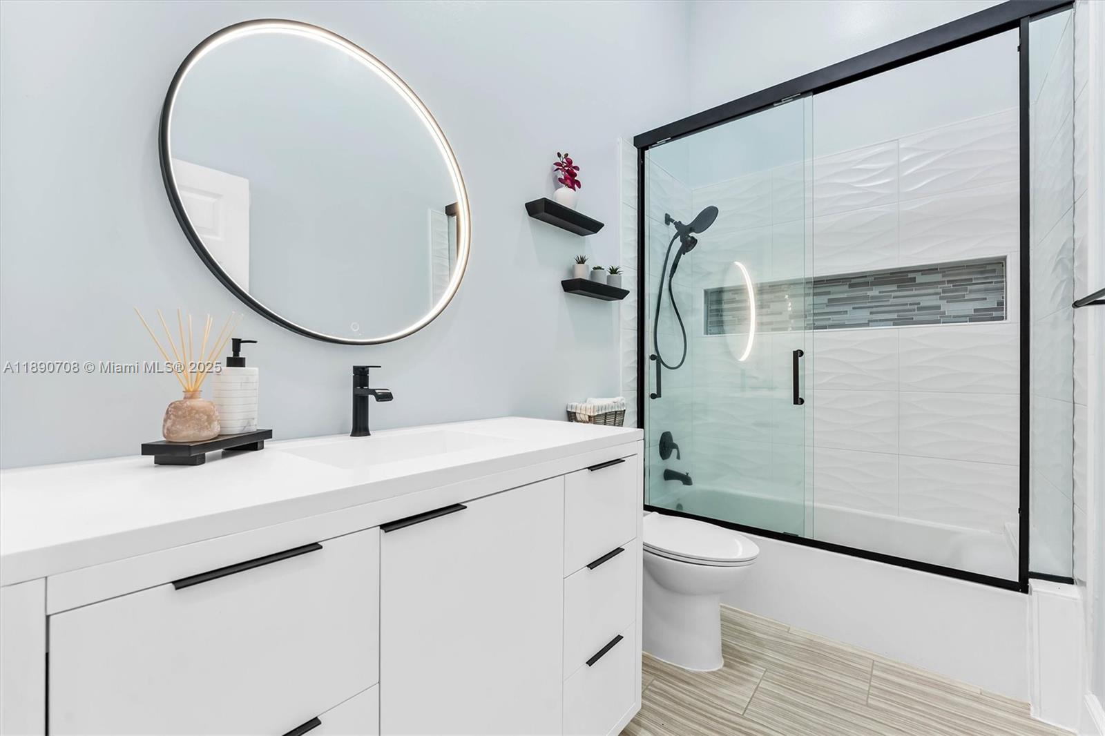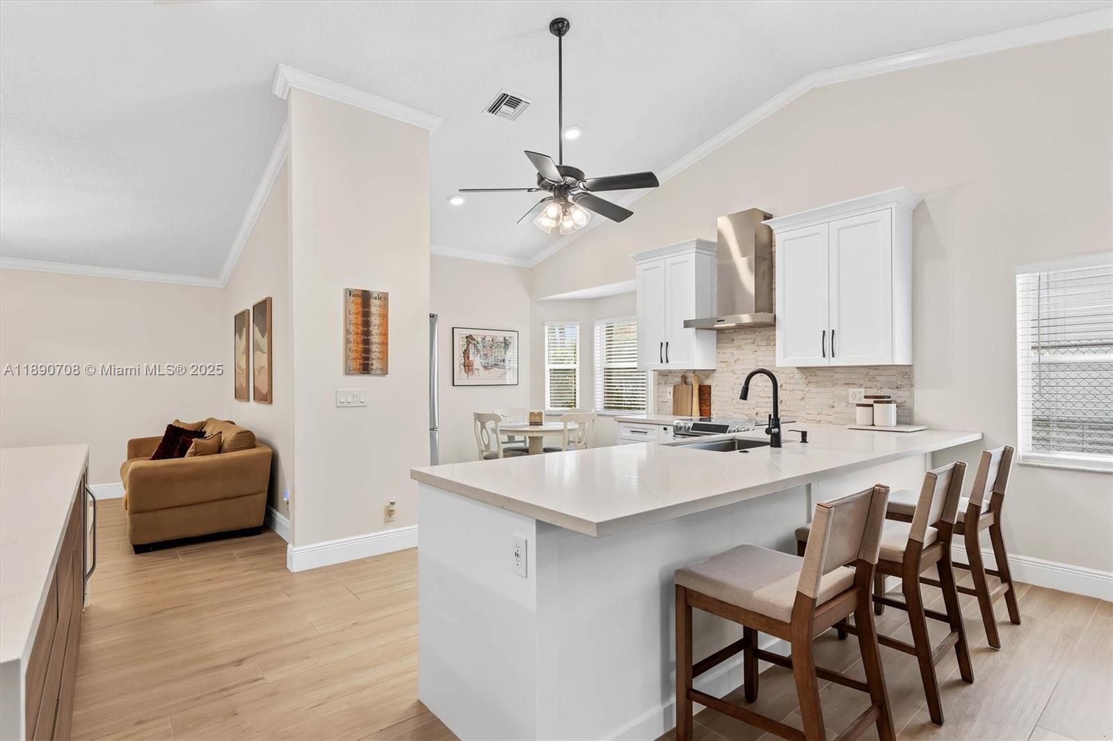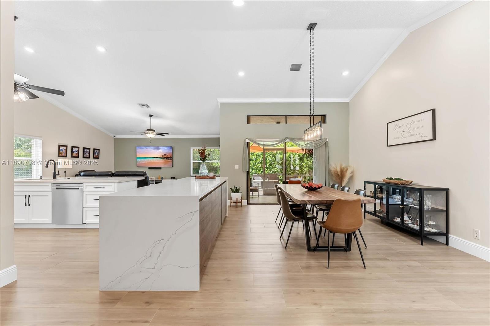 Step inside & be WOWED by this stunning chef’s kitchen—an entertainer’s paradise featuring a statement island w/ wine cooler, quartz countertops, stainless steel appliances, extractor hood, & a convenient butler pantry/laundry room. This 4-bedroom, 2-bath home boasts high vaulted ceilings, wood tile floors, warm modern finishes, & a beautifully remodeled guest bathroom. Enjoy peace of mind w/ a BRAND-NEW ROOF (2024) & A/C (2020). The primary suite offers an oversized walk-in closet plus a second closet. Outside, enjoy a cozy enclosed space & a separate outdoor patio—perfect for gatherings. Complete with a 2-car garage & large driveway on a spacious 10,021sqft corner lot. Ideally located near parks & The Walk with great shopping & dining options. Low monthly HOA!