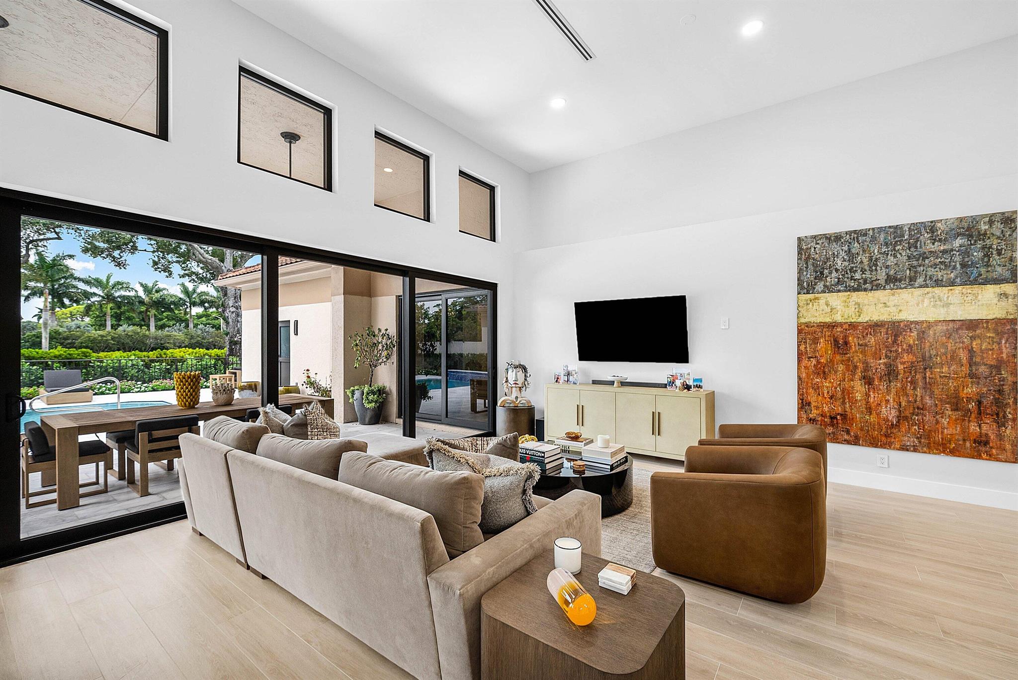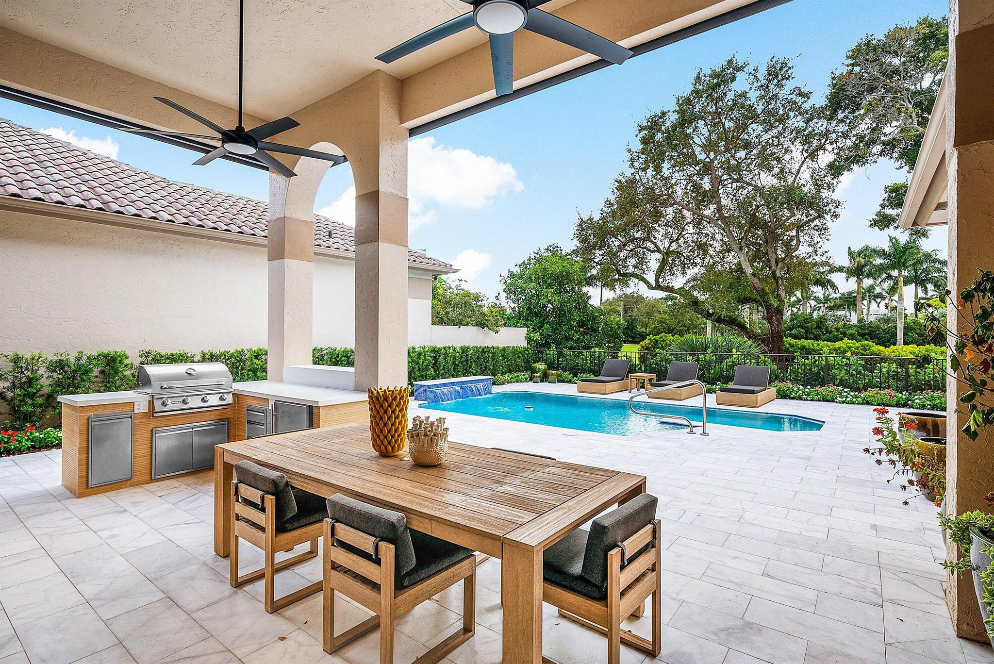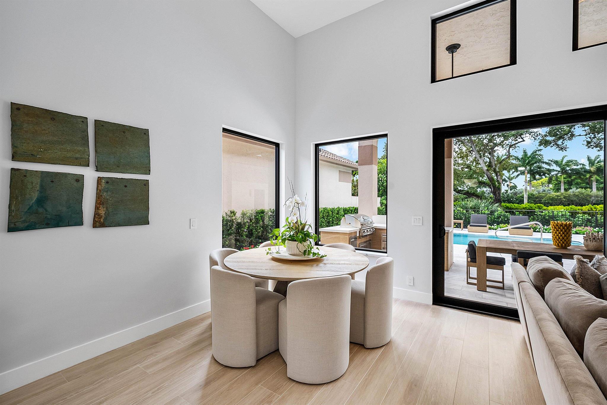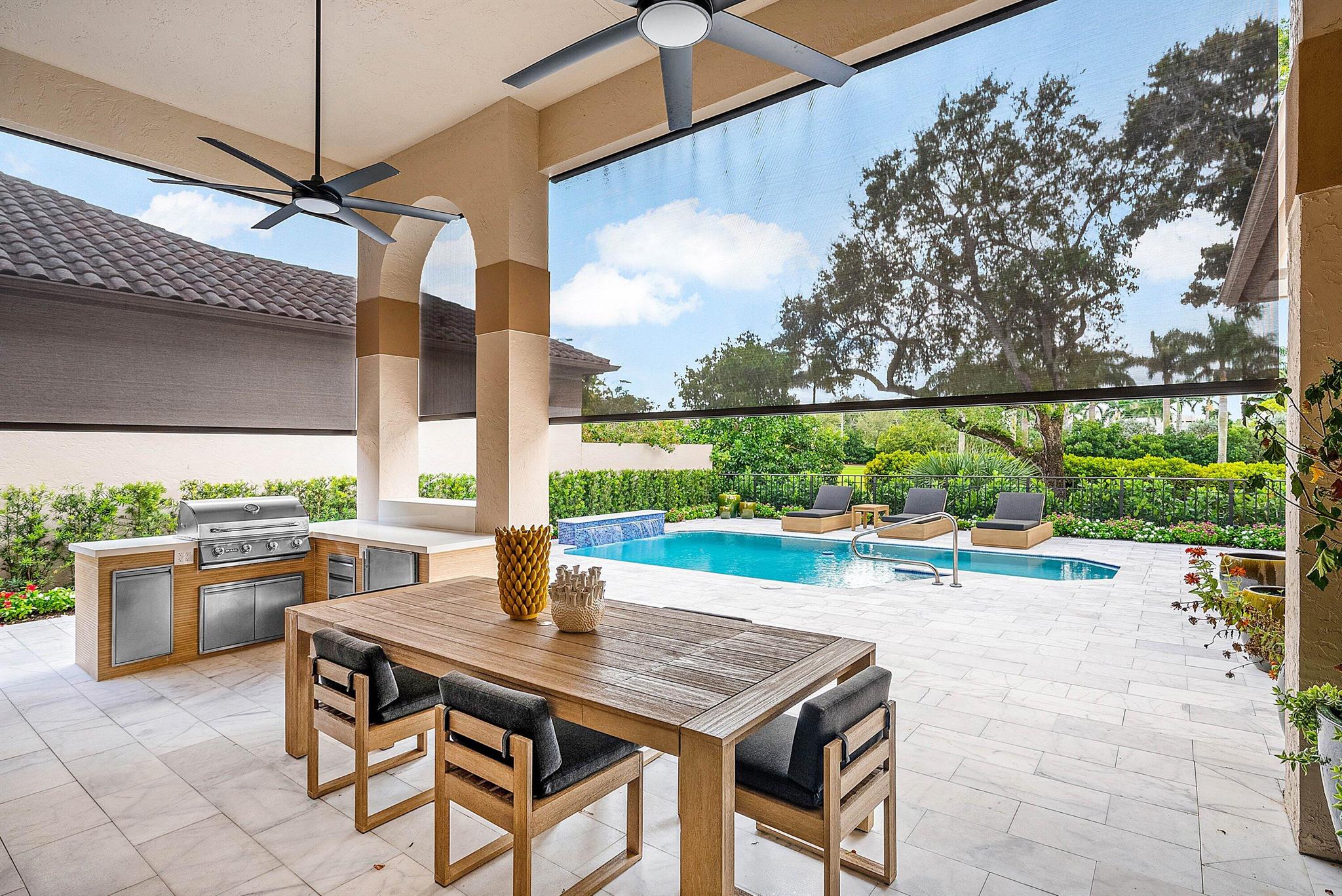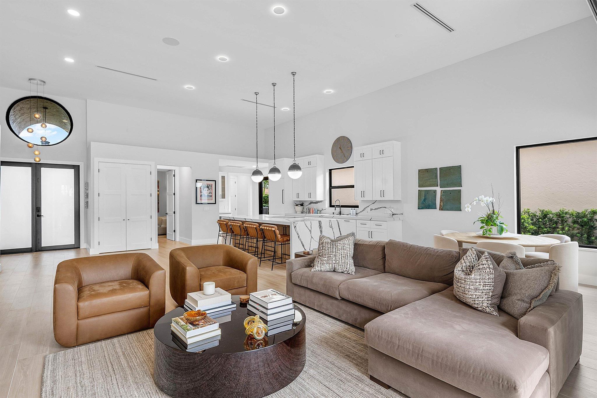 This stunning Restoration Hardware decorated home is located in the heart of Boca Raton, within the prestigious Broken Sound Country Club and near the city's top-rated schools. It's a remarkable renovation which features 3 bedrooms and 4 full bathrooms. No detail has been overlooked. It is bright and light filled. The open kitchen is perfect for entertaining; its oversized island topped with contemporary quartz tops in a waterfall effect, plenty of cabinets for storage, a large reach-in pantry and top of the line Thermador appliances. Complementing the kitchen is a seperate but full coffee and wine bar. The serene master suite retreat, overlooks the patio and pool, has a luxurious spa bathroom and three large closets.