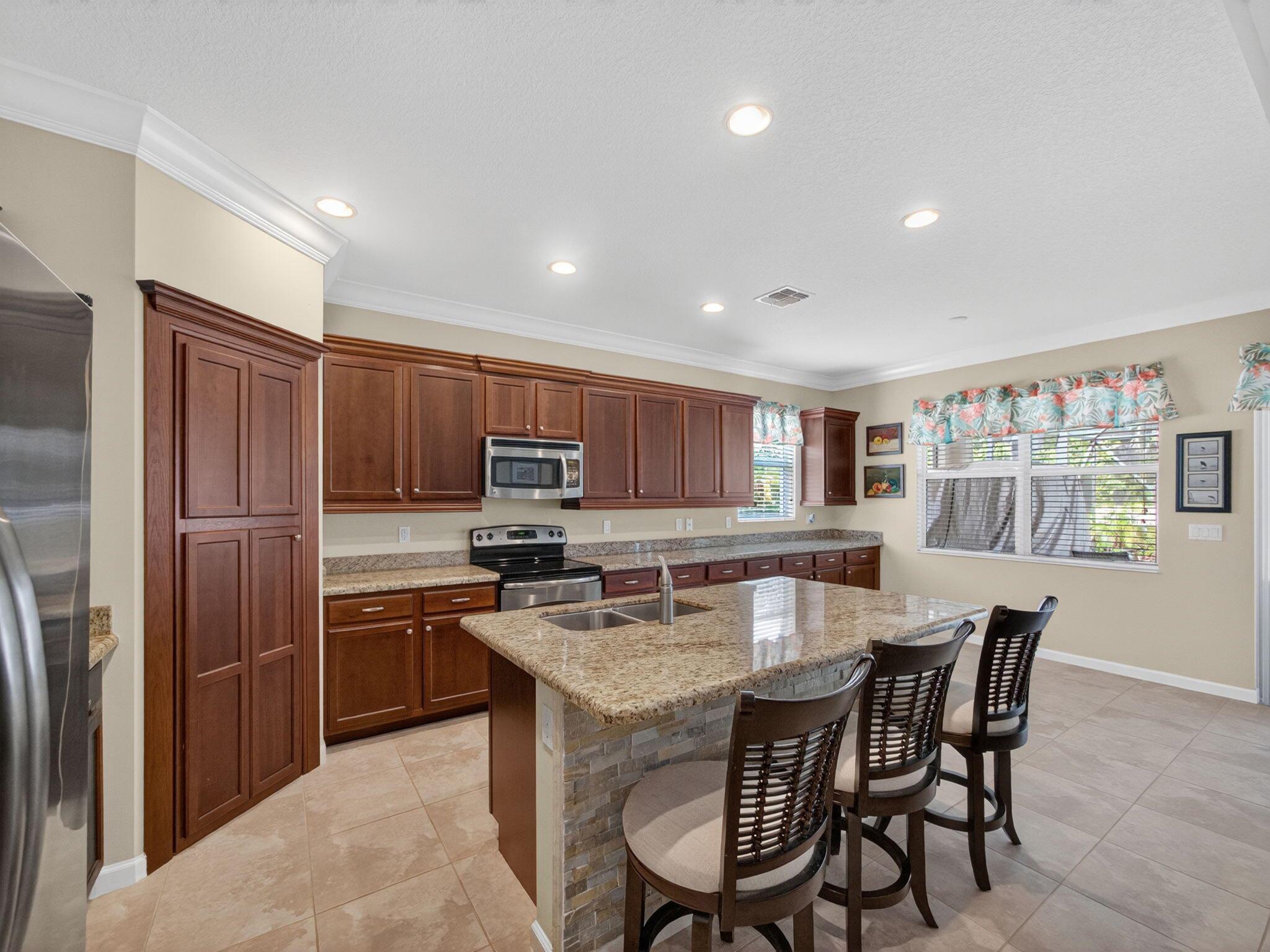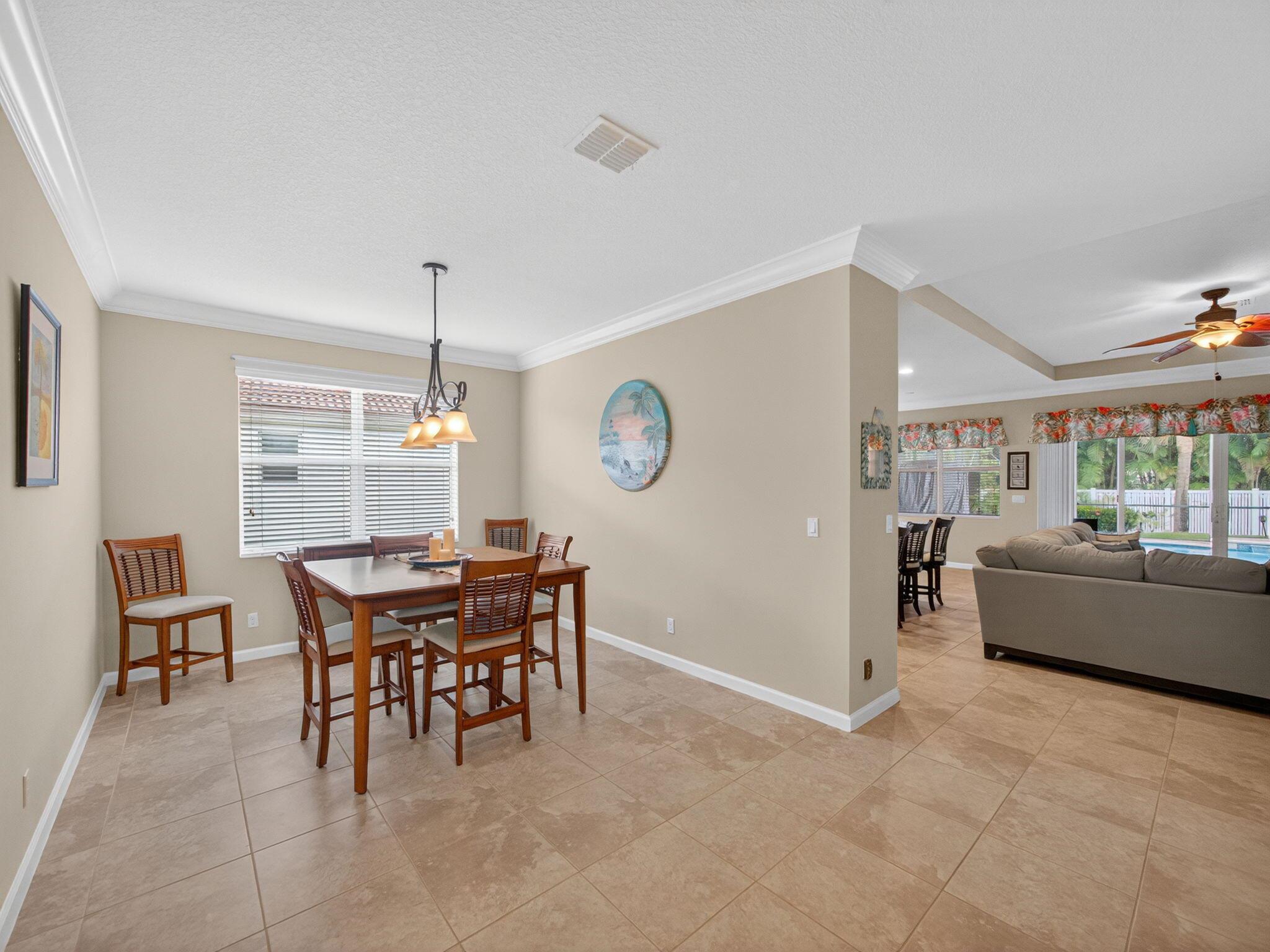 Discover the perfect blend of comfort and style in this CBS-built Coral Reef model, featuring 3 bedrooms plus a den and 2.5 bathrooms. This thoughtfully designed split floor plan offers both privacy and functionality, with the largest main bedroom suite available among first-story homes in the community. Step outside to your private backyard retreat, complete with a heated pool, screen enclosure, and lush privacy landscaping with fencing--ideal for relaxing or entertaining. The oversized covered patio provides ample space for outdoor dining and year-round enjoyment. Inside, the spacious kitchen impresses with abundant cabinetry, perfect for the home chef. Whether you're hosting friends or enjoying a quiet evening in your tranquil oasis, this home delivers exceptional comfort.