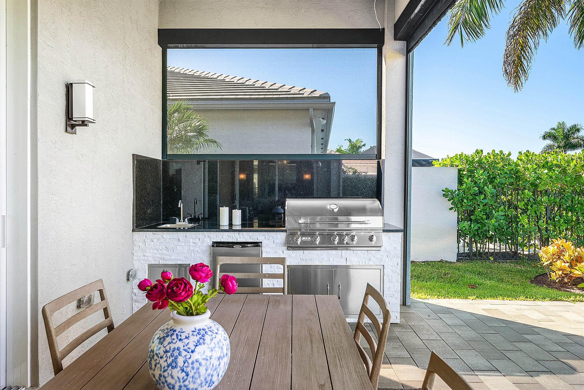 Situated in the distinguished 55+ gated community of Valencia Sound in Boynton Beach, this Aruba model comes with DESIGNER FURNITURE INCLUDED! (Serena and Lily, RH, Ballard Design, Arhaus, Frontgate) The home offers 2 bedrooms plus a den, 2 full baths, with professional designed upscale interior and exterior finishes. It includes a whole-house generator, designer Serene & Lily light fixtures, retractable blinds with Phantom screens, decorative accent woodwork walls, and a summer kitchen overlooking a long lake view. The home is also built with impact windows for added safety and durability.