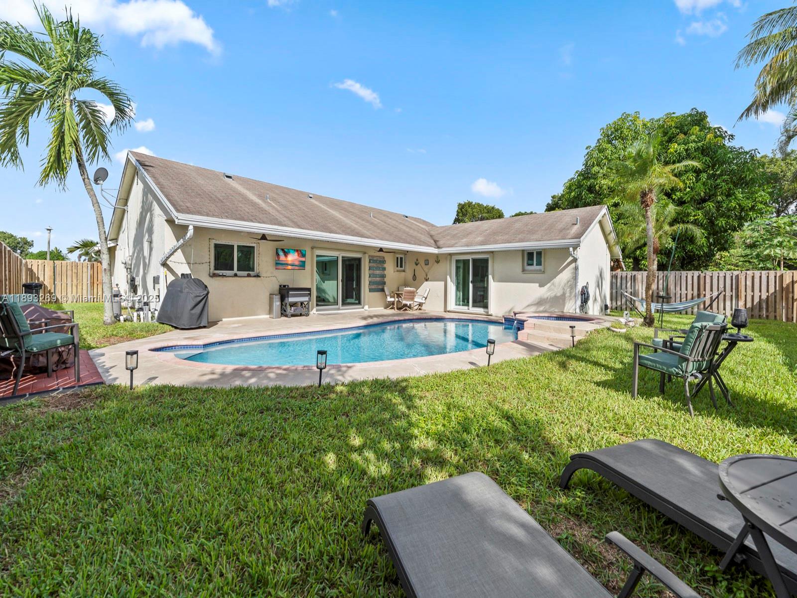 Stunning 4/2 single family pool home in Parkwood III. This home has been substantially updated with Impact Windows and Doors, tile floors throughout, laminate in 2 bedrooms, Granite Kitchen tops, Stainless Steel appliances with double oven, A/C installed in 2023,Pool resurfaced earlier this year, Roof was installed in 2018.We are looking for a new family to enjoy and maintain this SFR and be an great addition to the neighborhood !!!