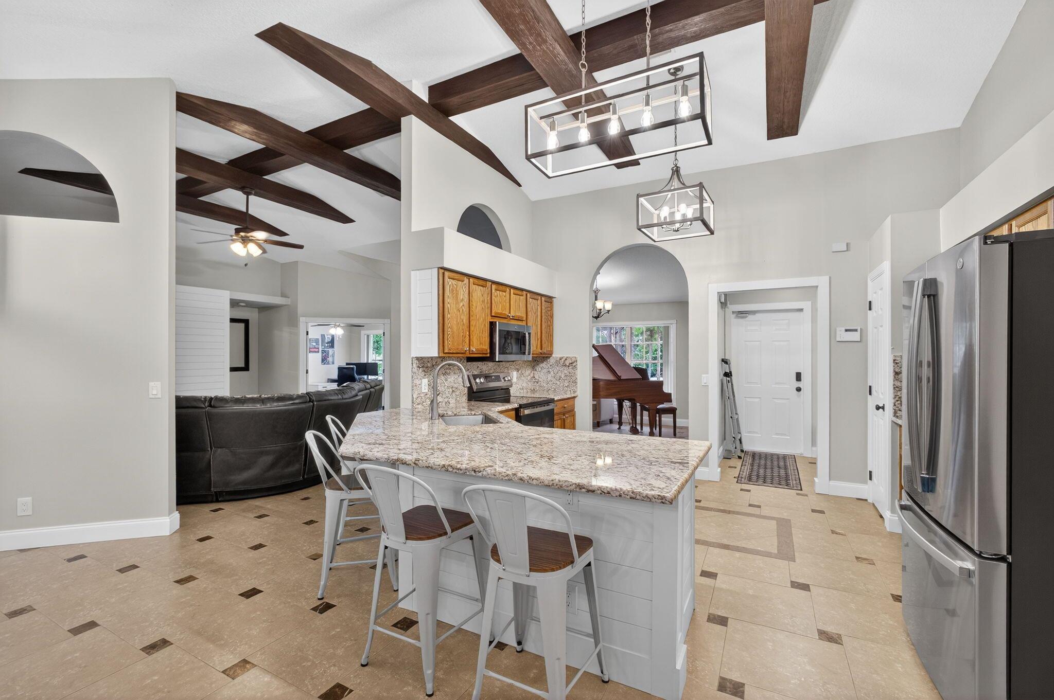 Welcome to your private paradise! This exquisite 4-bedroom, plus den/5th bedroom, single-family home boasts 2,718 sq. ft. of beautifully updated living space on a generous 1.25-acre lot with no HOA restrictions and PAVED road. Perfect for families and entertaining, this move-in-ready residence combines modern upgrades with resort-style outdoor living.Step inside to a bright, open-concept interior featuring a brand-new kitchen with sleek granite countertops and top-of-the-line brand new appliances. The home offers a spacious second master suite and a convenient new laundry room, enhancing functionality and comfort. Dual water heaters and an efficient HVAC system ensure year-round ease.