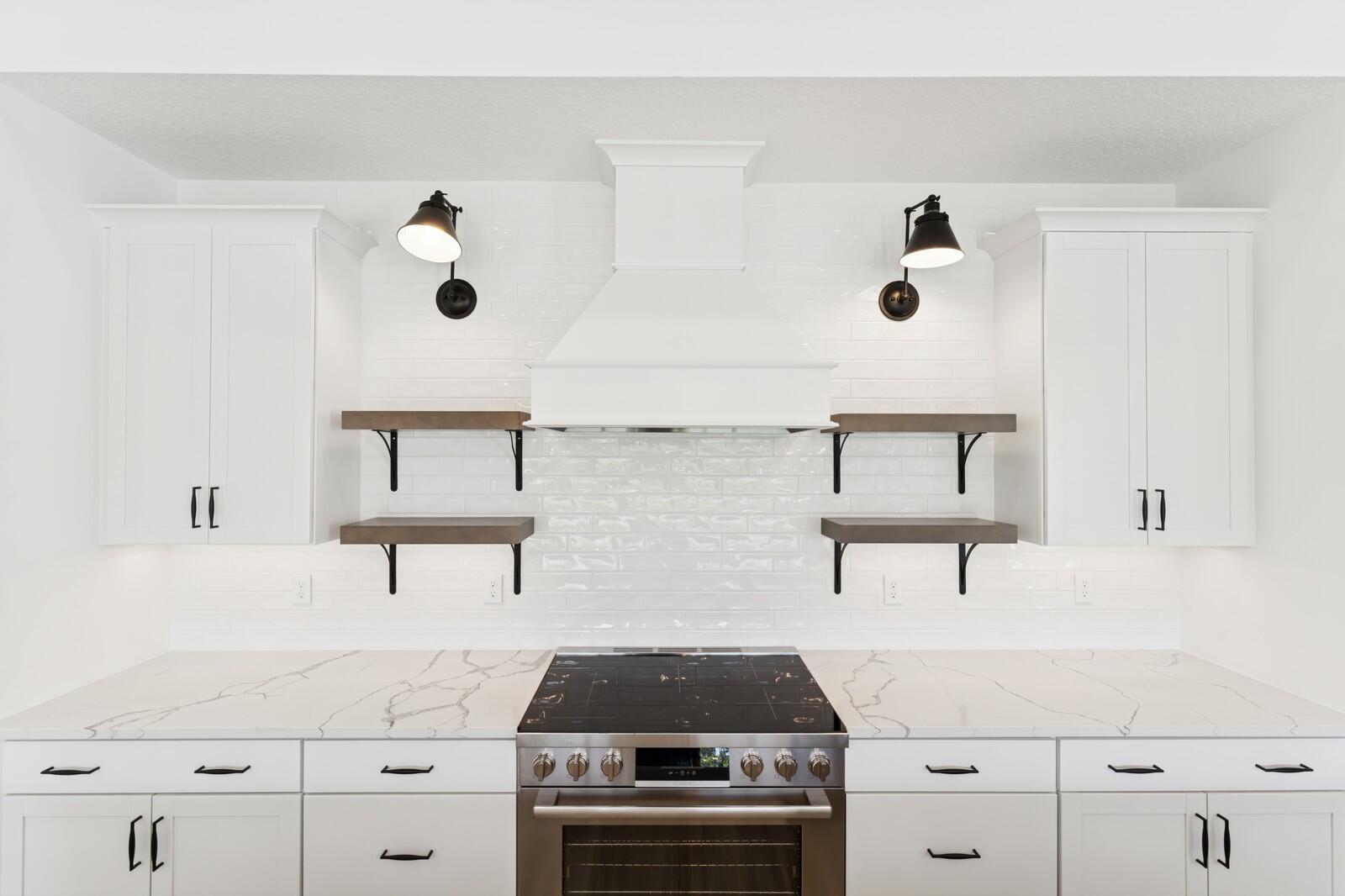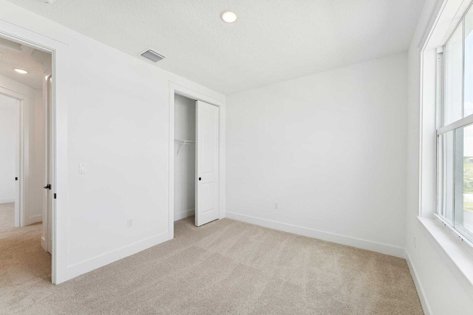 Enjoy picturesque lake views from this stunning farmhouse-style Santa Fe home, where comfort and character come together beautifully. The stunning kitchen showcases Brellin White cabinets and elegant Statuary Classique quartz countertops, opening to connected living spaces with a vaulted ceiling and stained ceiling beams for added warmth and charm. The peaceful primary suite offers the perfect retreat, complemented by a refreshing bath with a barn door and freestanding tub. A functional home office and formal dining room off the foyer add flexibility, while the inviting covered patio with a 16-foot multi-slide door creates seamless indoor-outdoor living. For added comfort and efficiency, the Home Technology Suite comes standard, delivering smart home features designed for today's
