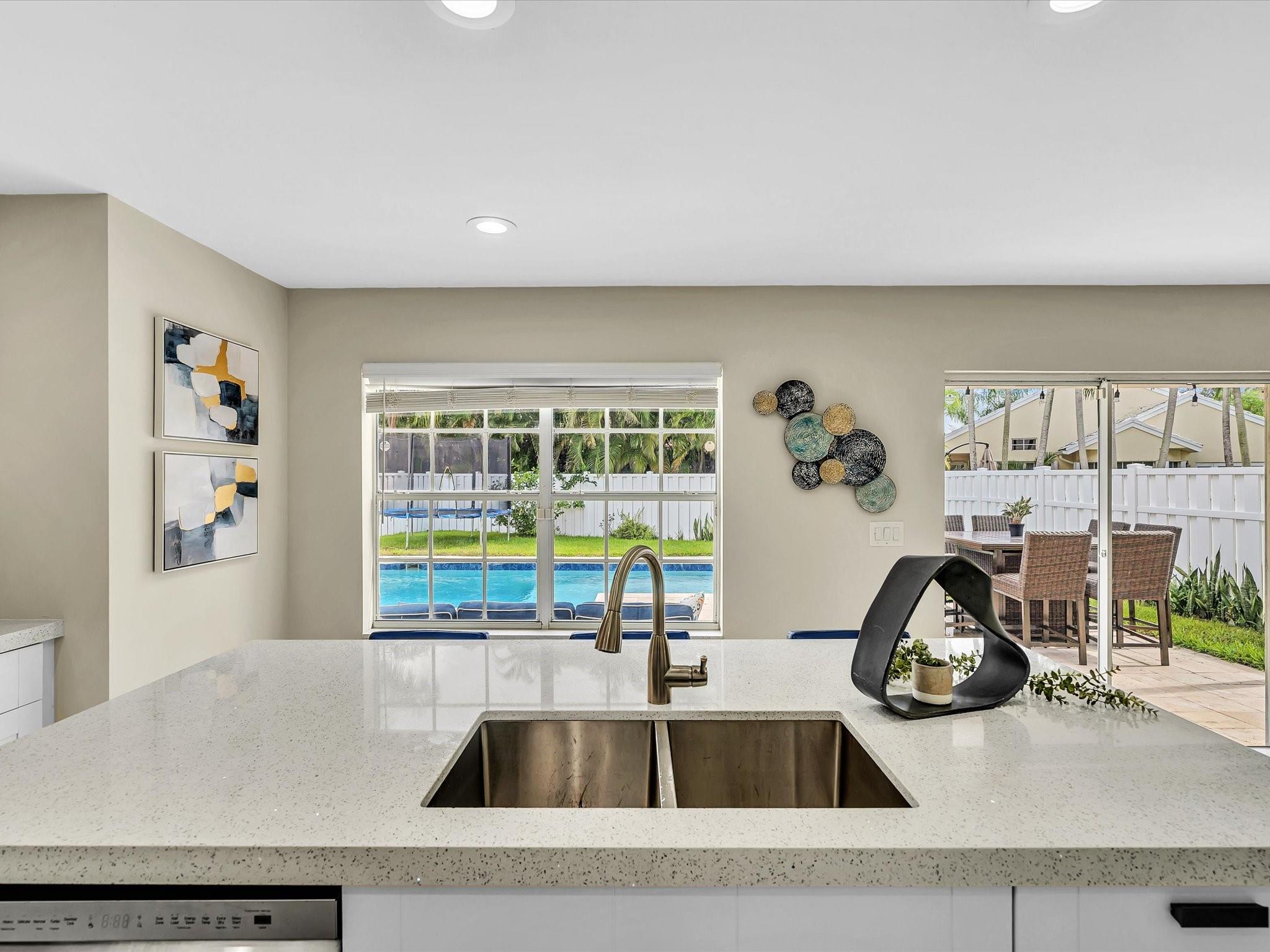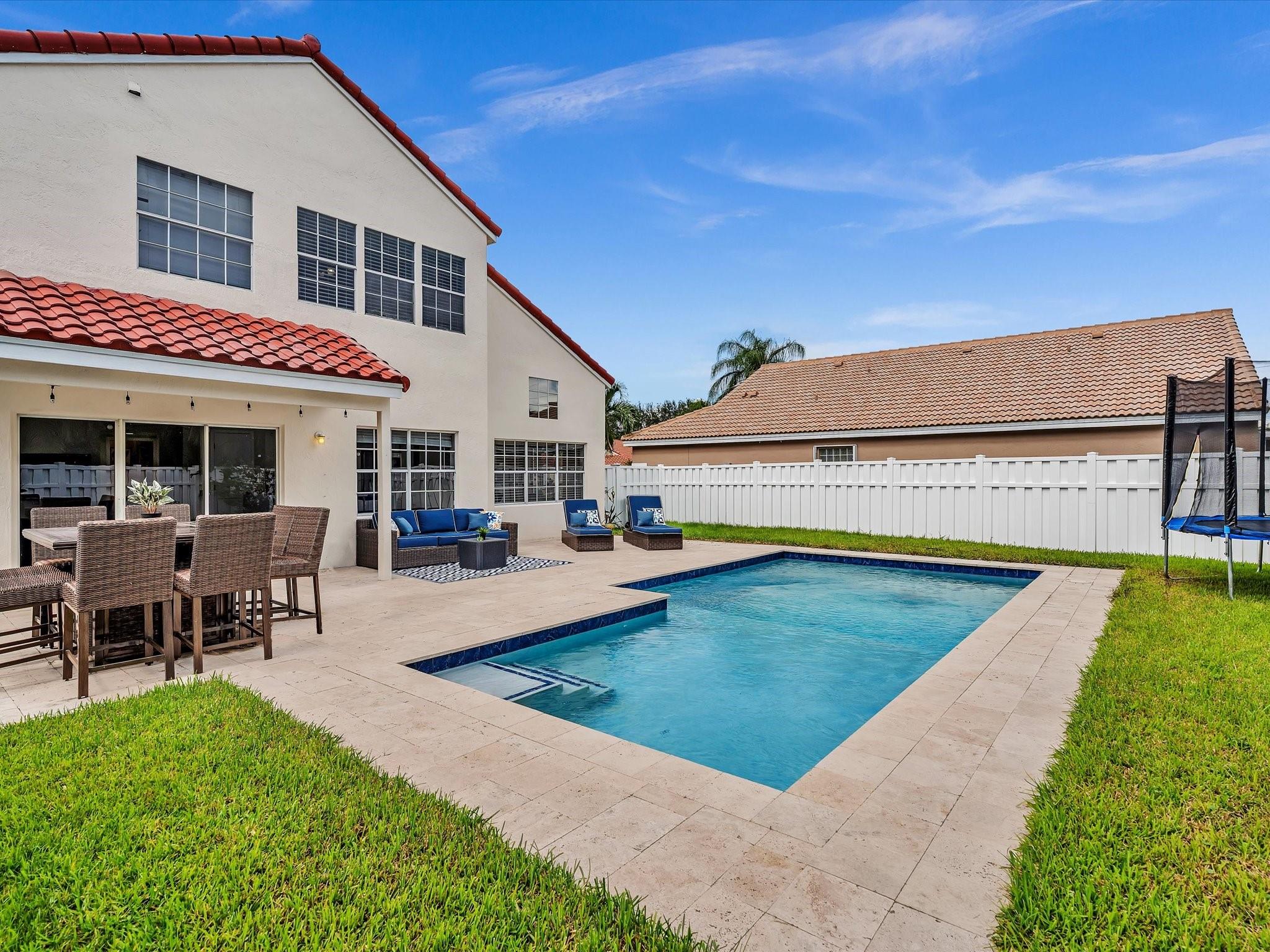 New 2025 roof! Nestled on a quiet cul-de-sac street this pool home offers one of Weston’s largest 3 bedroom floorplans w/ generous front & backyards - perfect for entertaining. Freshly painted interior/exterior, filled w/ natural light & a breathtaking two-story vaulted ceiling. Beautifully remodeled kitchen (2020) features wood cabinetry, large quartz island, ss appliances, and adjacent family room—ideal for gatherings. Enjoy ultimate privacy in the backyard oasis, complete w/ sleek modern pool (2020), PVC fencing, and ample space to relax or entertain. Additional upgrades include an 2019 A/C unit and a 2025 water heater. Laundry room converted to an office. Located minutes from parks, shopping, top-rated schools, pickleball and I-75, this home blends comfort, style, & location all in one