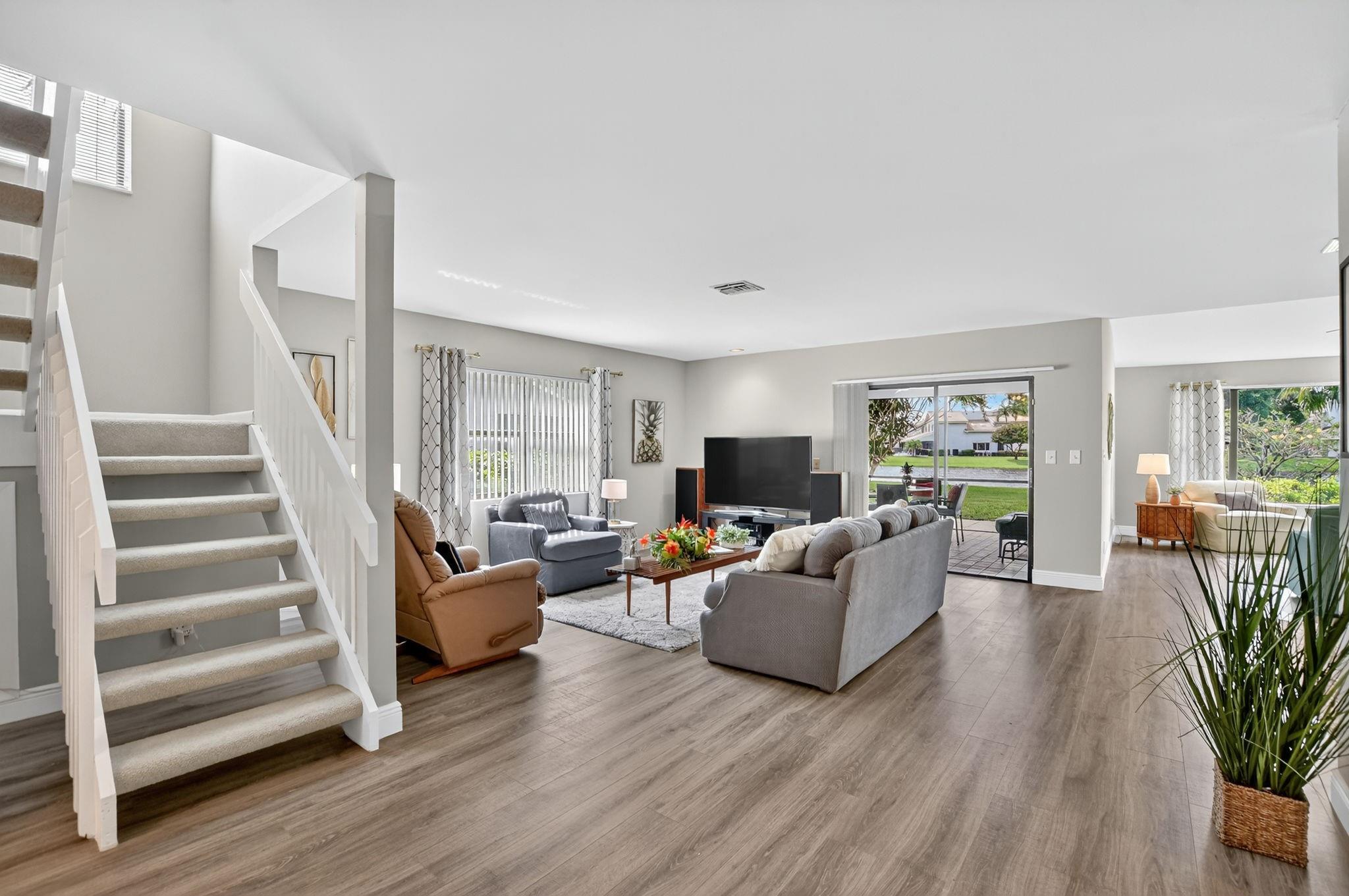 Sensational, CORNER TH featuring 3/2.5 w/ 2,300SF in Deer Creek. WIDE Lakefront location. Gorgeous, NEW luxury vinyl plank flooring + wide-open LA boasting a large FR w/ 9’ smooth finished ceilings - perfect for gatherings. BIG DR-convenient for parties. Entertaining is a breeze - BIG CHEF'S kitchen w/ tons of cabinets, granite counters & GE appliances. Savor morning coffee at the corner breakfast nook. Screened patio w/ wide lake views. Fall in love in HUGE primary BR w/ large walk-in closet - perfect for fashion fans. NEWER primary bath has split vanities + newer stall shower w/ pretty inlays. Guest BR has a long wall closet. Guest bath has a tub to soak away stress. Enjoy sunsets on the screened patio capturing the breezes. Full capacity LG W/D. NEW Rheem A/C system. HWH -2019.