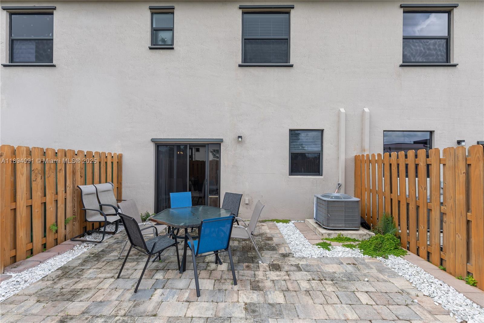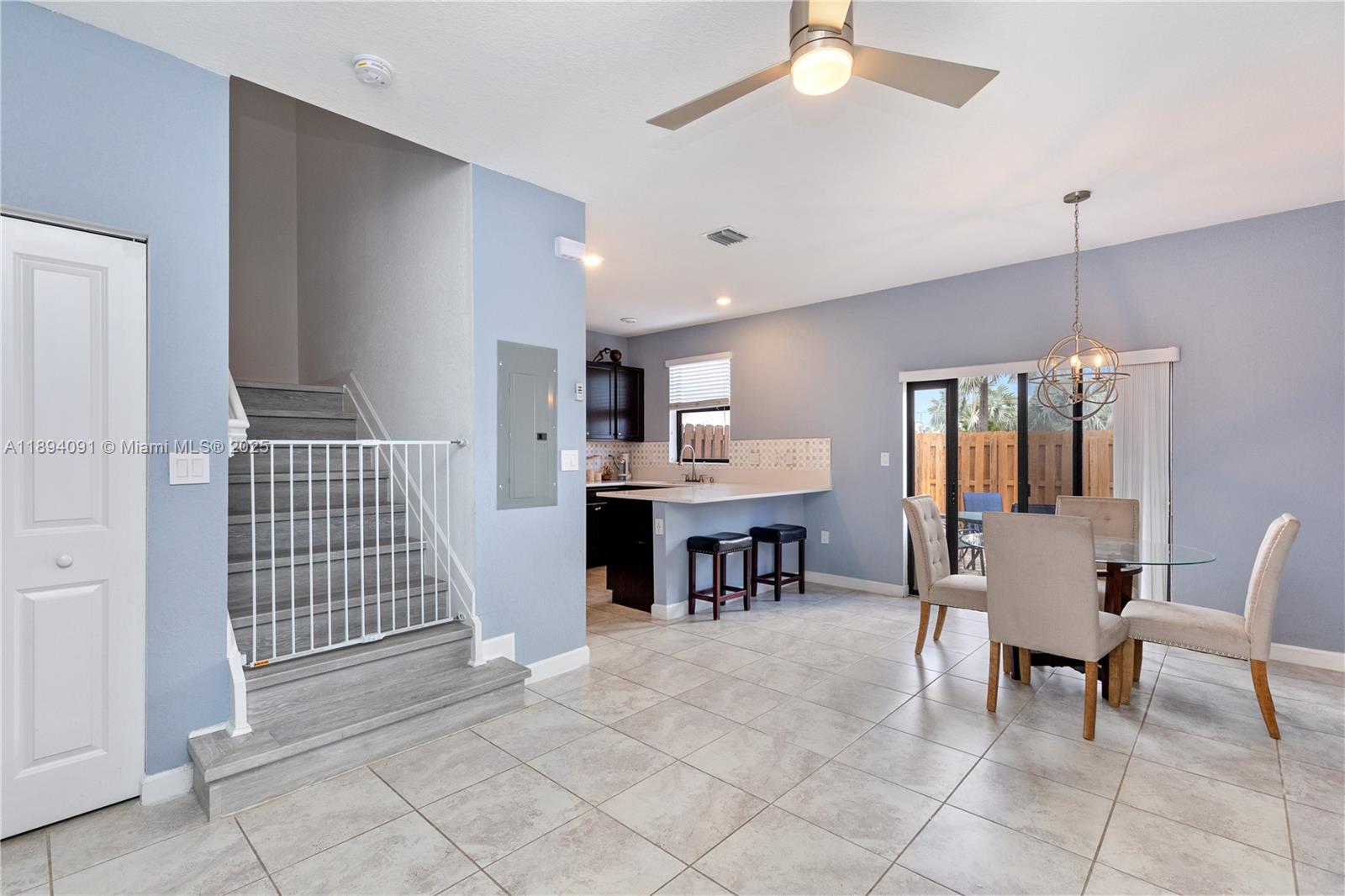 Gorgeous 3-bedroom, 2.5-bath townhouse built in 2019, located in the highly desirable gated community of Coco Palm Villas. This home offers beautiful curb appeal with two assigned parking spaces plus guest parking, tile flooring on the first floor and luxury vinyl plank upstairs, freshly painted interior, tall baseboards, and modern light fixtures and ceiling fans. The kitchen features quartz countertops, stainless steel appliances, a modern backsplash, window over the sink overlooking the fenced patio. Laundry room with Washer and dryer included. Enjoy resort-style amenities: fitness center, hot spa, dog park, playground, and 24-hour gated security. HOA includes lawn and common area maintenance.