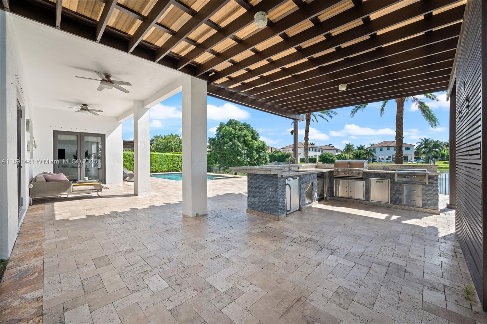 Experience luxury living in this gorgeous lakefront residence located in the prestigious gated community of Monterra. This elegant home features 5 bedrooms, 5.5 baths, and a versatile additional room in the converted garage, ideal for a gym or studio.The outdoor area offers the ultimate private resort, with a pergola, summer kitchen, contemporary saltwater pool, spa, and breathtaking lake views. The gourmet kitchen includes a center island and double ovens. The expansive primary suite showcases an extra-large custom walk-in closet and a spa-inspired bathroom. All bedrooms feature custom-designed walk-in closets. Impact glass on second-floor windows.Freshly painted interior.Resort-style amenities: clubhouse, pool, fitness center, basketball, tennis, dog park. A+rated schools. Move-in ready!