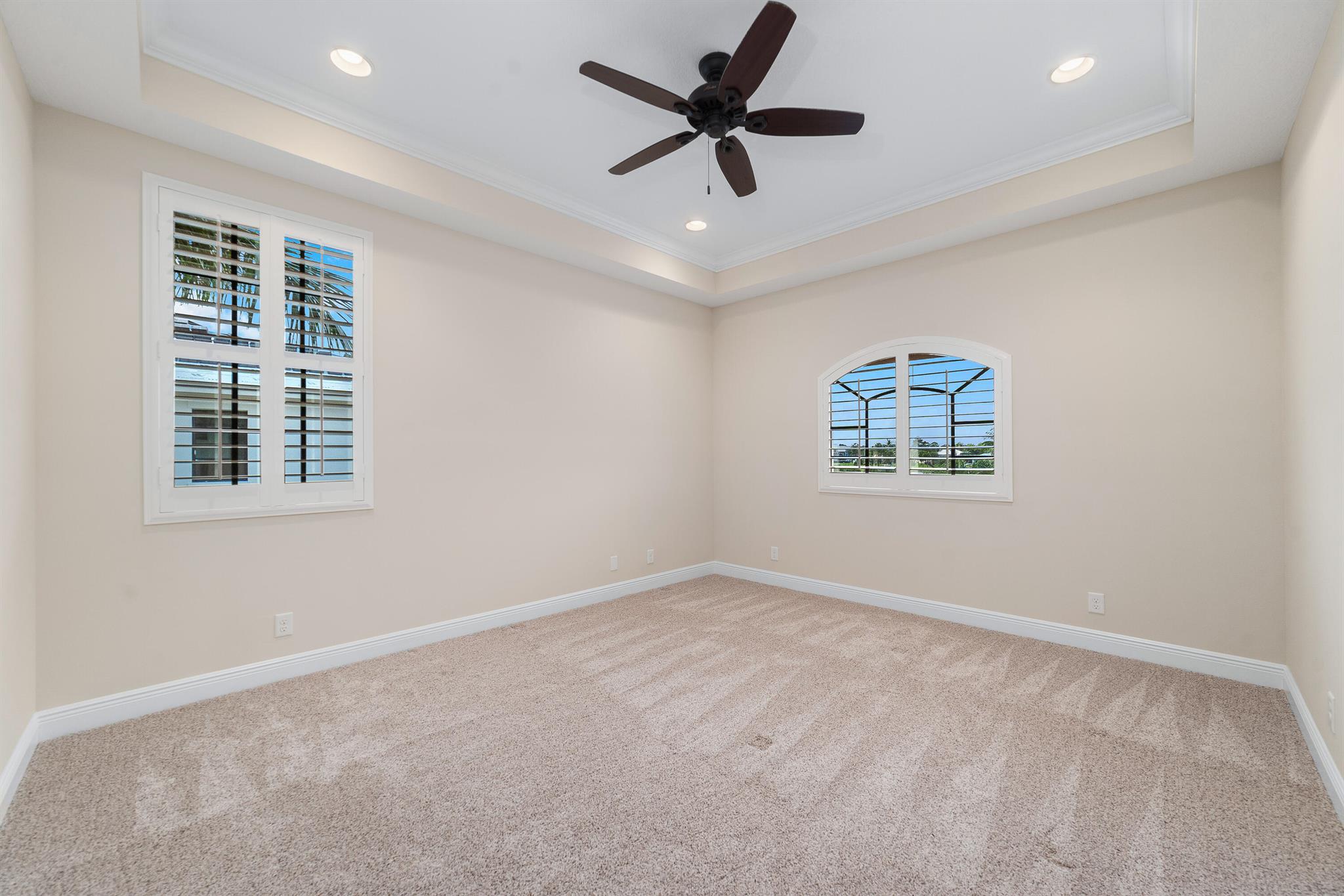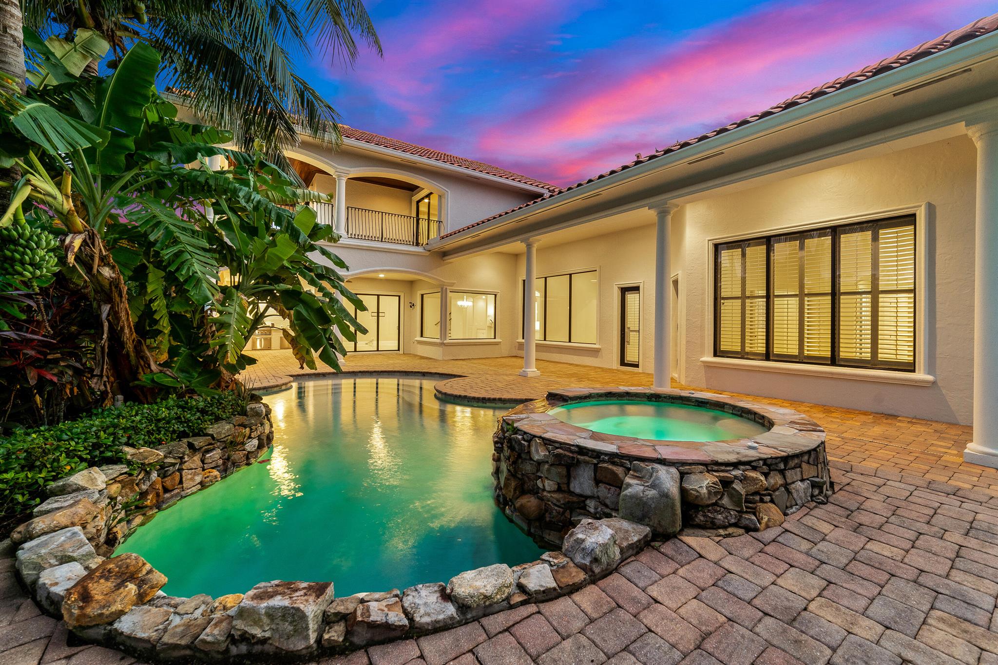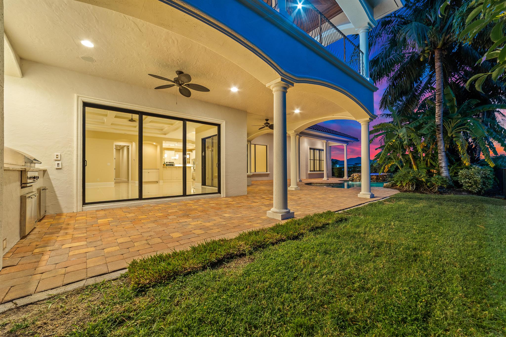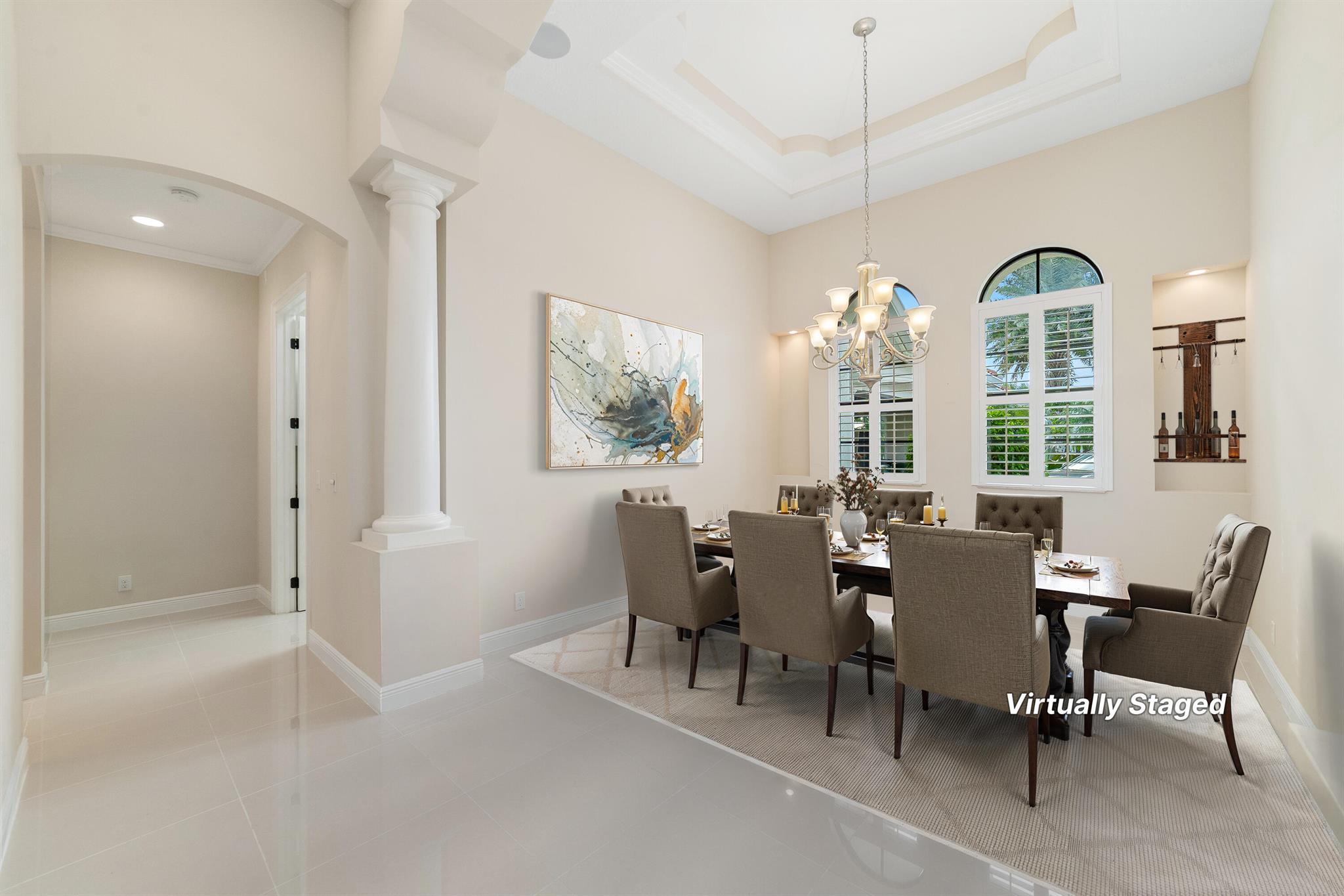 Welcome home to this exquisite 5-bedroom, 5-bath luxury estate located in the prestigious gated waterfront community of Ravello. Designed with timeless elegance and exceptional craftsmanship, this home offers both grandeur and comfort across every detail. From the large 24'' x 24'' porcelain tile throughout the main living areas, to the vaulted tray and coffered ceilings - every detail of this home is built to impress. The expansive main-level owner's suite provides an oversized private bath with dual spacious California custom walk-in closets. All four of the additional bedrooms feature private access to an en-suite bath for ultimate convenience.
