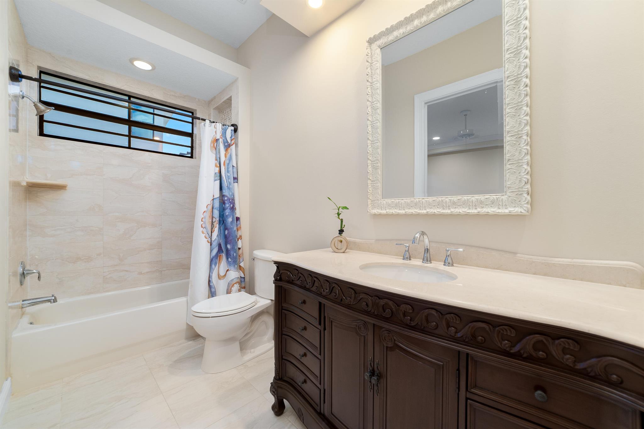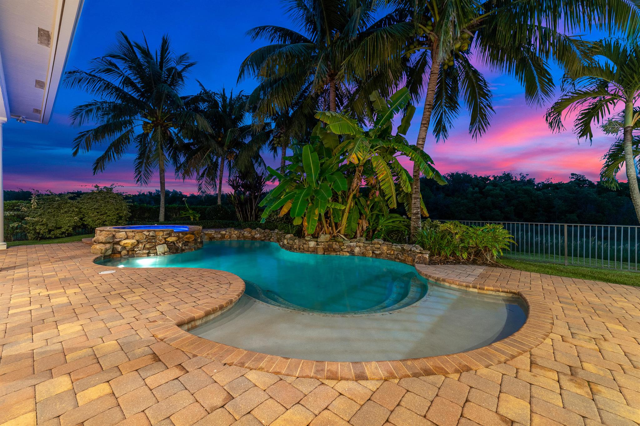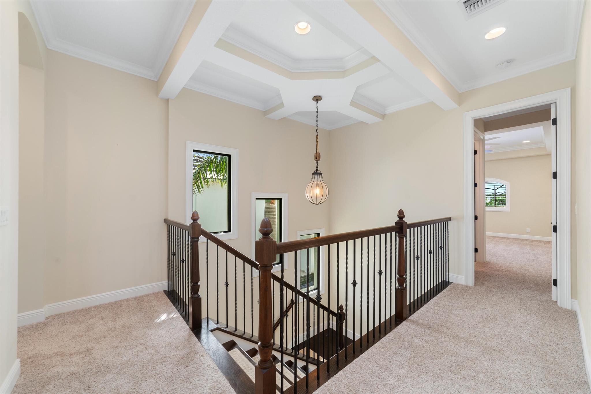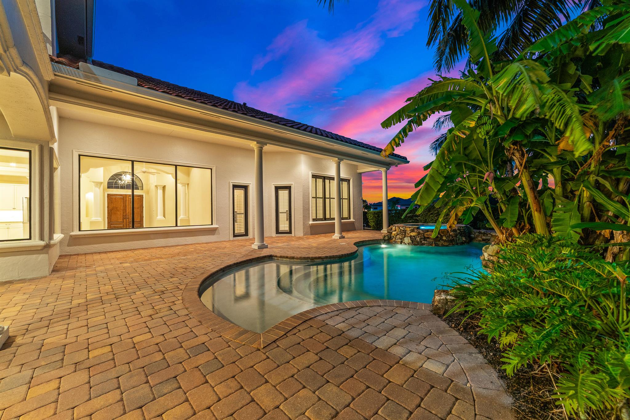 Welcome home to this exquisite 5-bedroom, 5-bath luxury estate located in the prestigious gated waterfront community of Ravello. Designed with timeless elegance and exceptional craftsmanship, this home offers both grandeur and comfort across every detail. From the large 24'' x 24'' porcelain tile throughout the main living areas, to the vaulted tray and coffered ceilings - every detail of this home is built to impress. The expansive main-level owner's suite provides an oversized private bath with dual spacious California custom walk-in closets. All four of the additional bedrooms feature private access to an en-suite bath for ultimate convenience.
