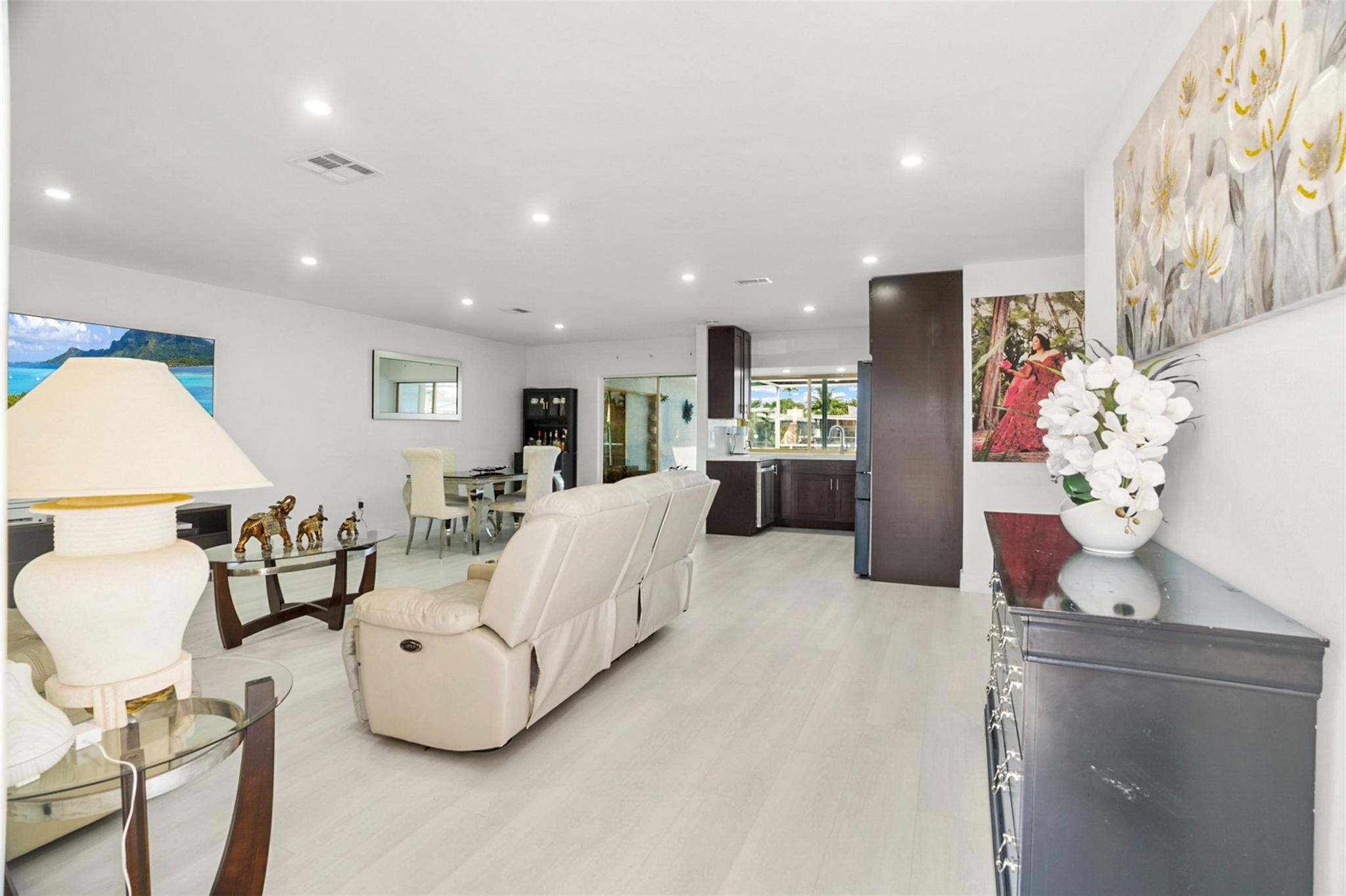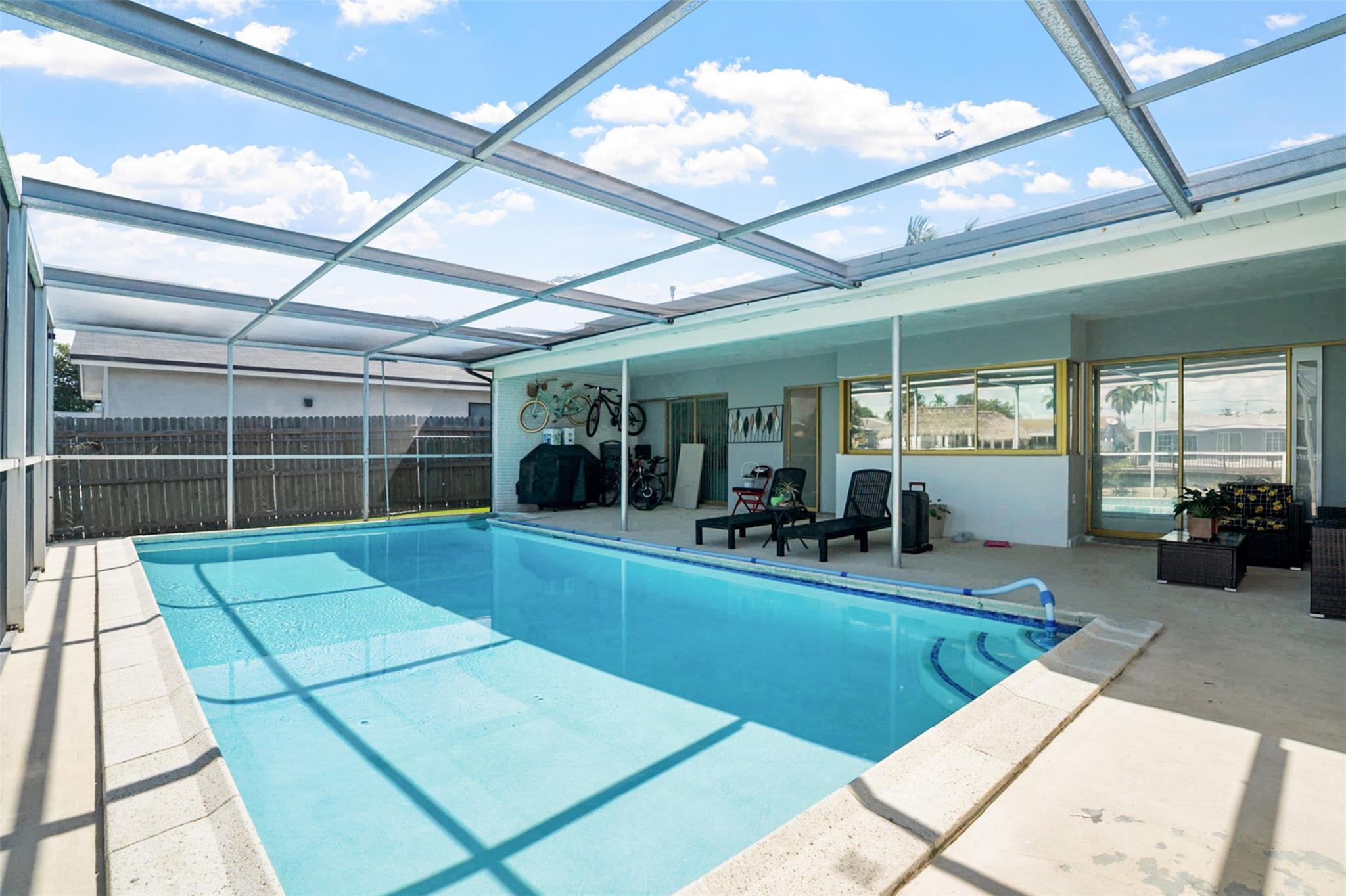 Fully remodeled pool home with water view. No expense has been spared. Roof is 5 years old, tankless water heater,new washer/dryer. New driveway and artificial turf throughout exterior. New pool pump and new windows. New kitchen and bathrooms. New electrical panel with breakers. Home can be used as a 4 bedroom or you can rent out the opposite side of the home as a 1 or 2 bedroom apartment. Seller offering up to $2000 credit toward buyer closing costs if buyer uses sellers preferred lender. Buyer is not required to use the preferred lender to purchase the property.