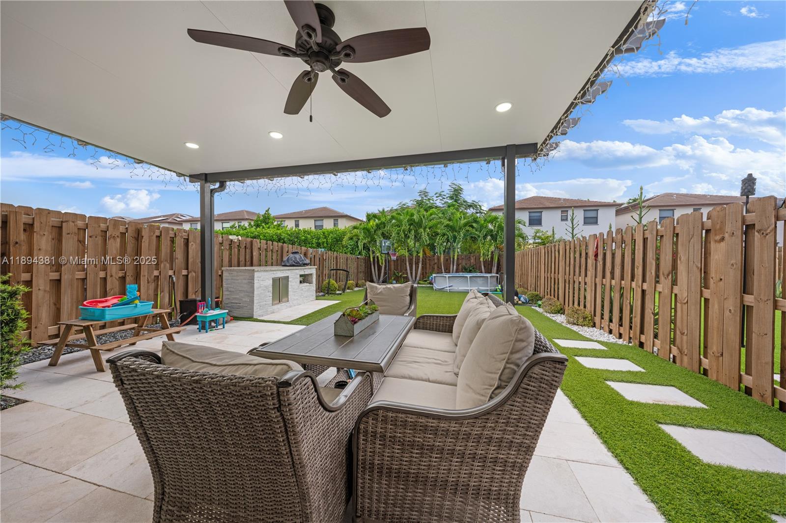 Welcome to this beautiful & well-maintained 3-bedroom, 3-bathroom home that truly has it all! From the moment you arrive, you’ll notice the care and upgrades throughout. The home features accordion shutters for peace of mind, gutters & custom closets in every bedroom. Enjoy clean, refreshing water with the alkaline water filtration system that services the entire house. Both floors have stylish laminate flooring that gives the home a warm and modern feel. The spacious master bathroom has been fully remodeled. Step outside to a stunning backyard that’s perfect for relaxing or entertaining-featuring a beautiful pergola, artificial grass for easy maintenance, & a custom-built grill area ready for weekend barbecues. The private garage also includes a built-in closet for extra storage space.