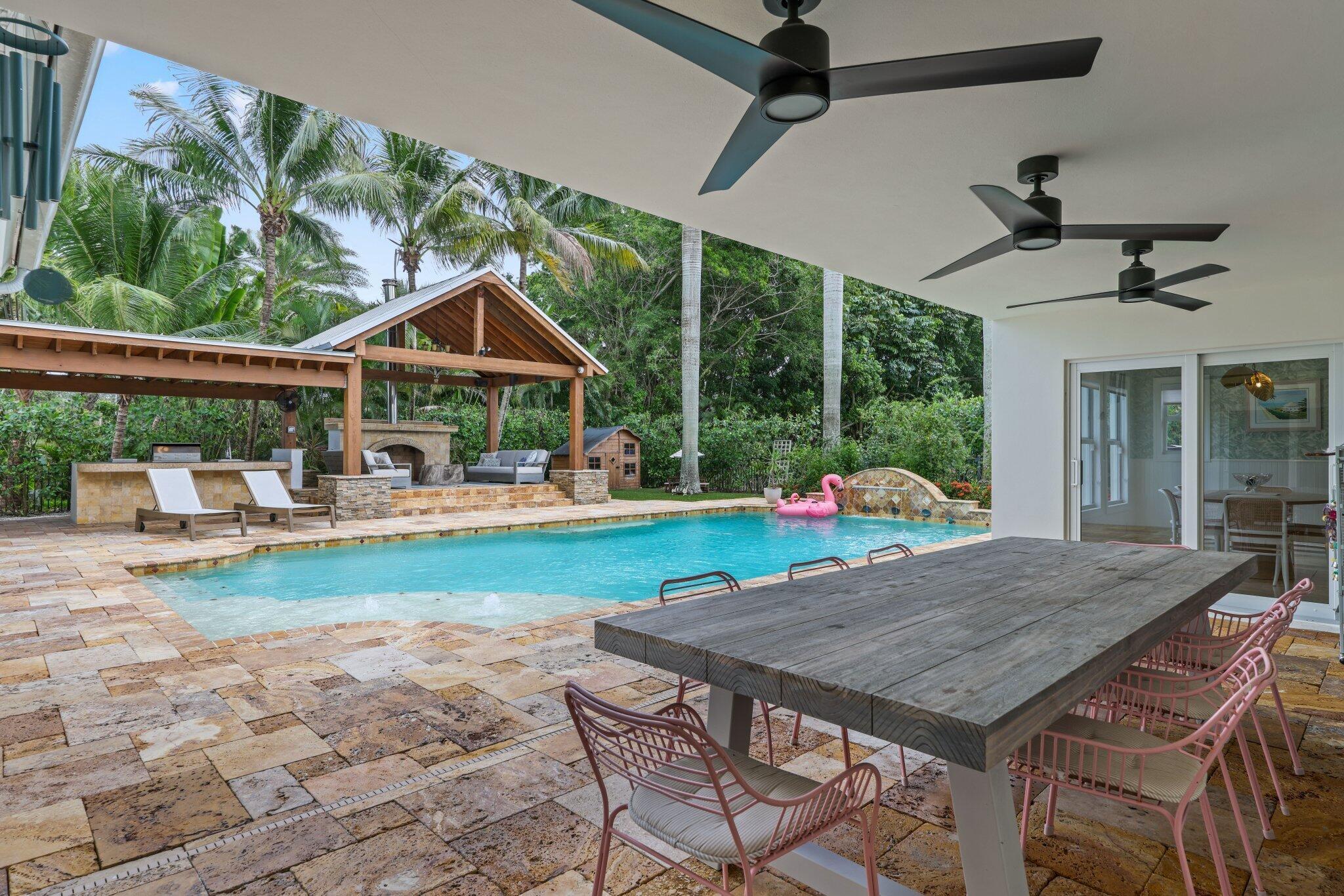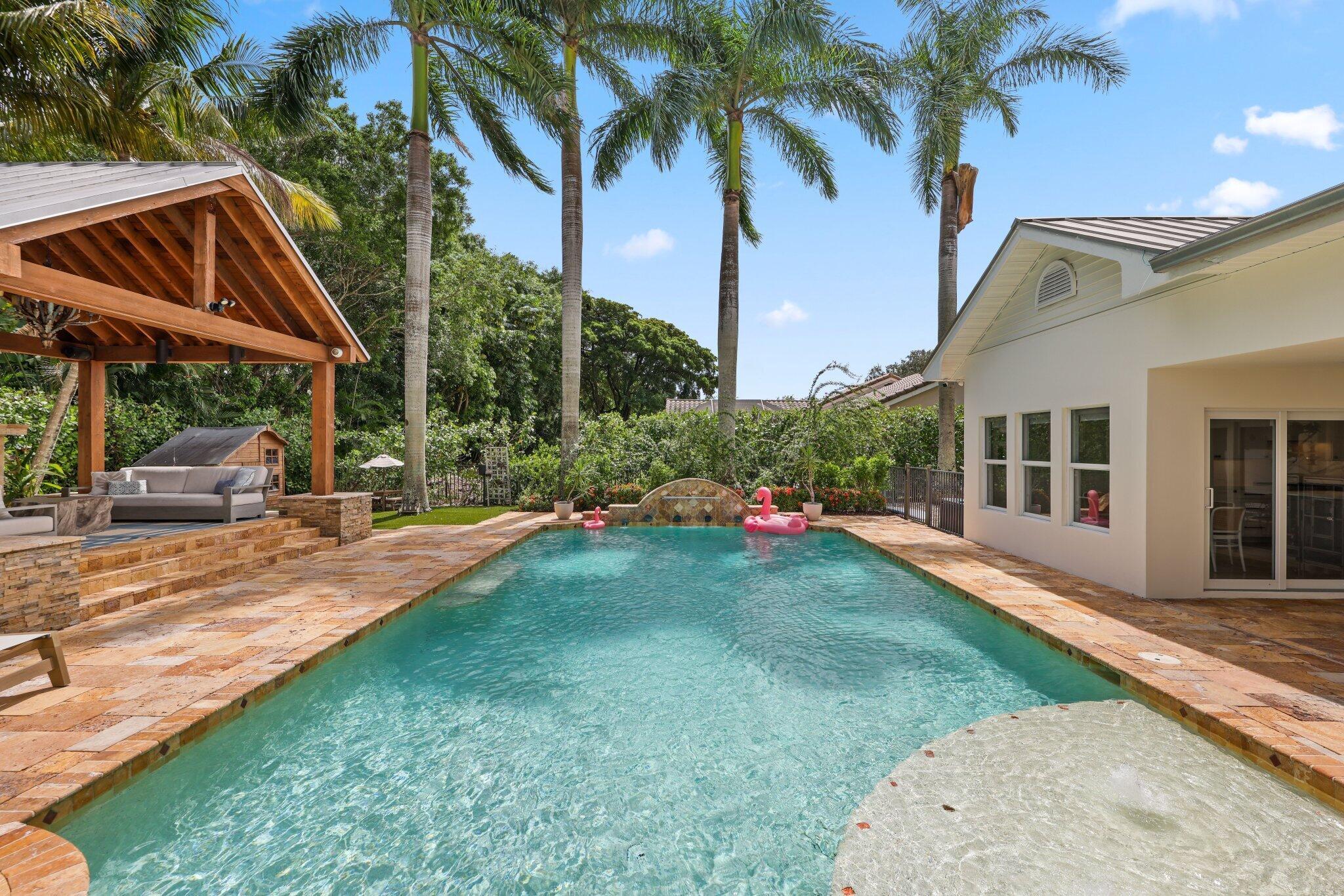 Discover this beautifully renovated and spacious two-story pool home, complete with a separate Casita (mother-in-law suite), nestled in the fantastic gated community of Boca Bath & Tennis Club. This exceptional home is located in a prime central area of Boca Raton and boasts abundant green space. It features 6 bedrooms, 4.1 bathrooms (including the Casita), and offers 4,348 square feet of living space on a generous 0.46-acre lot.On the first floor, you'll find a separate family and living room featuring a custom built bar, a gourmet kitchen with a large breakfast nook, a dining area, a bonus room currently set up as a playroom, a half bathroom, a large cabana bathroom, and a spacious laundry room. The primary bedroom suite and an additional bedroom are also located on this floor.