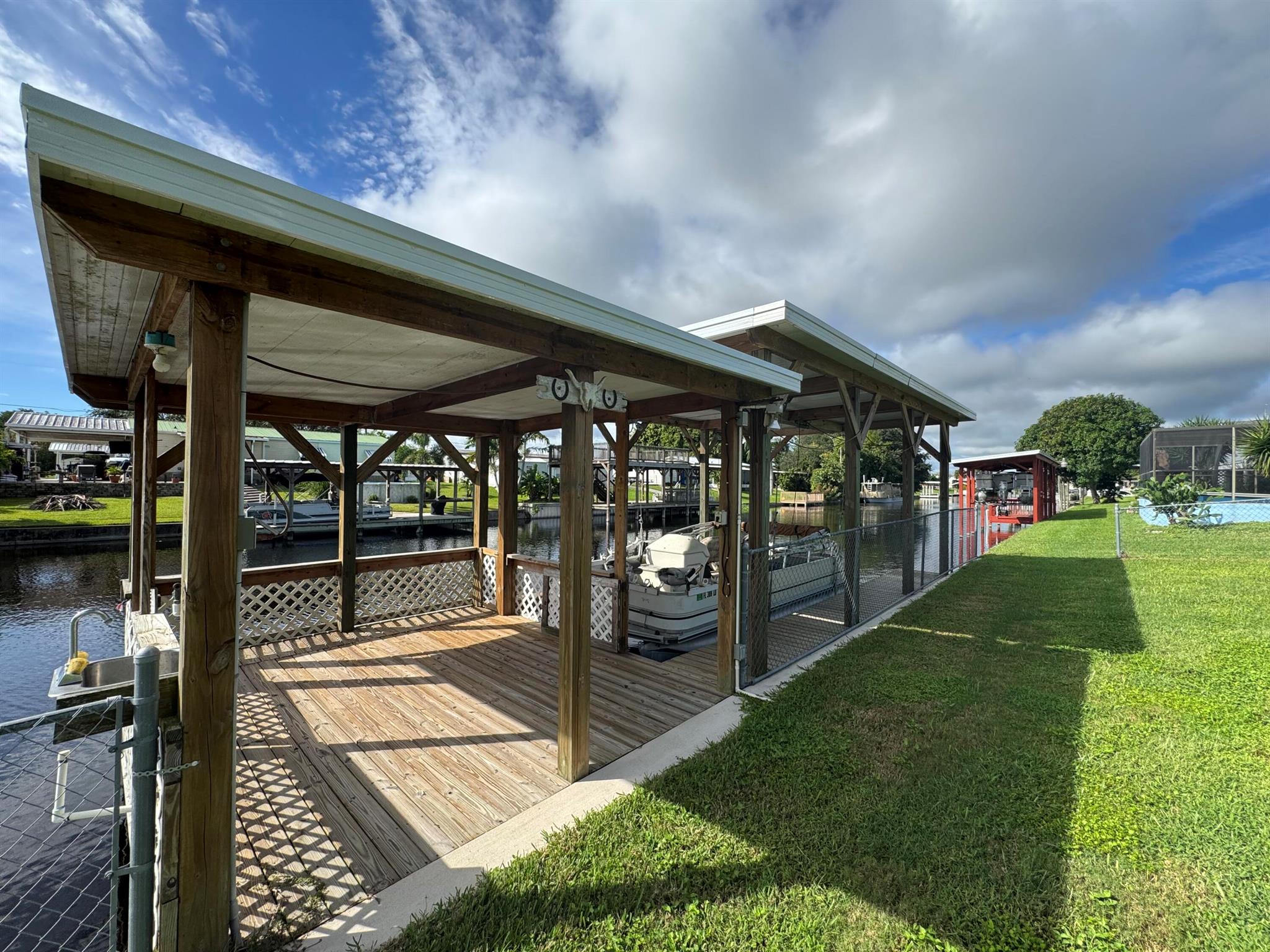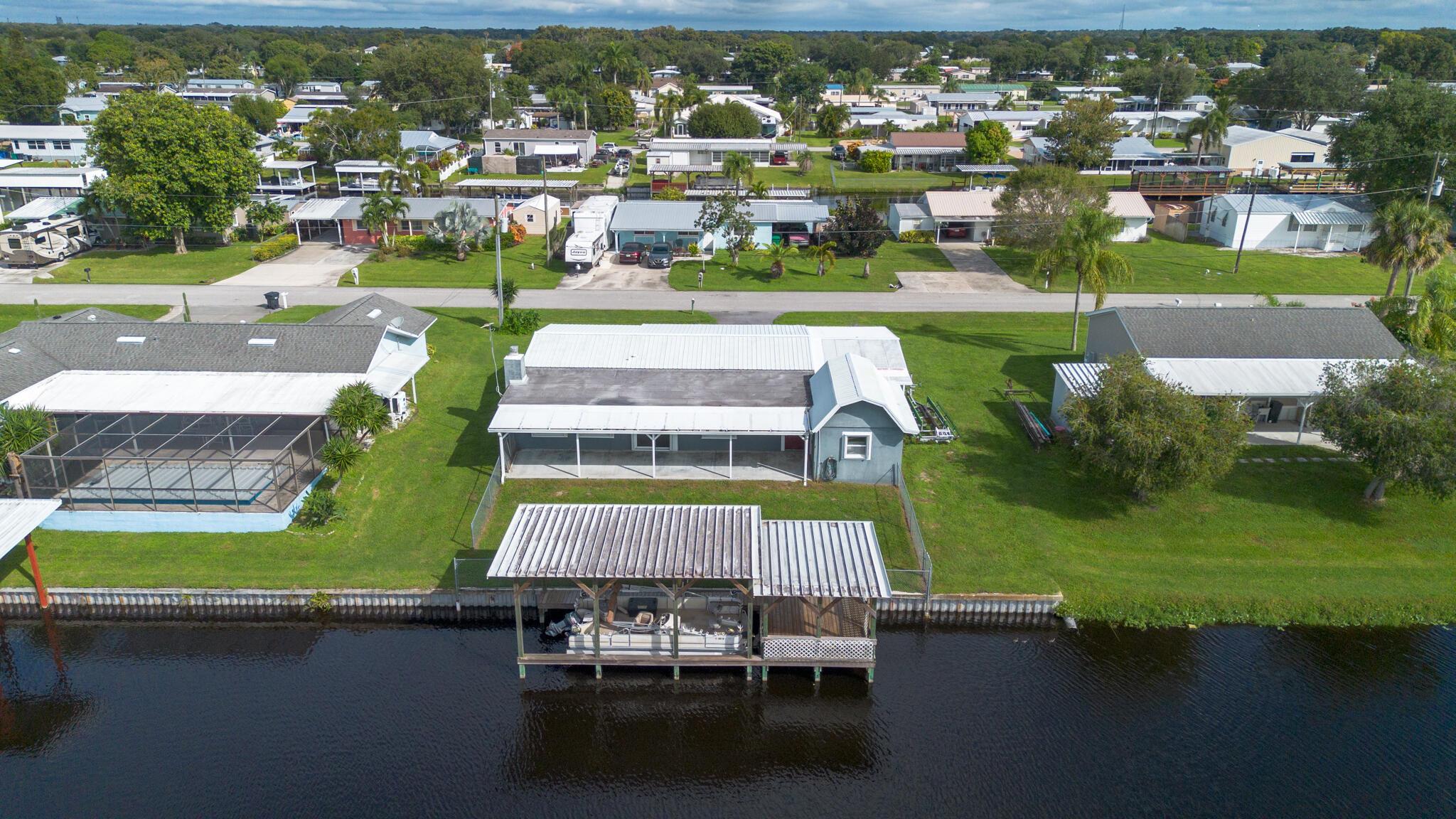 Taylor Creek Isles -Lake Access Well maintained 3-bedroom, 2-bath CBS home offering 1,672 sq. ft. of living area and a total of 2,882 sq. ft. under roof. This spacious home features a 34x12 family room overlooking the water, perfect for entertaining or relaxing with a view. Enjoy cozy evenings by the fireplace and the convenience of direct lake access from your own private dock with lift and pontoon boat included. Plenty of room for all your toys with covered parking for your boat, carport, and a concrete block shed/workshop. Located in one of Okeechobee's most desirable waterfront communities with quick access to Lake Okeechobee. CBS construction, metal roof, accordion hurricane shutters and a well-maintained interior and exterior make this home truly move-in ready.