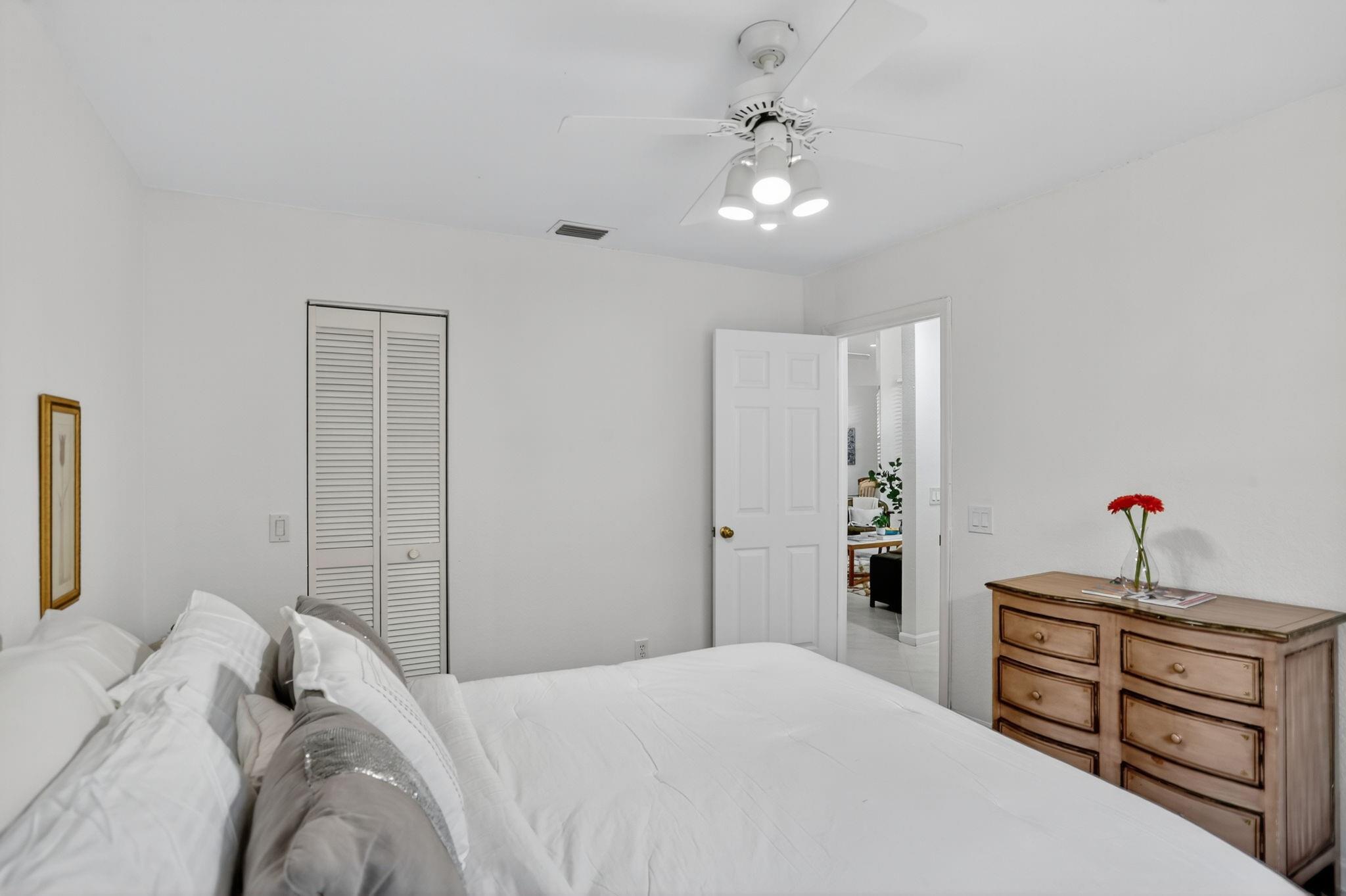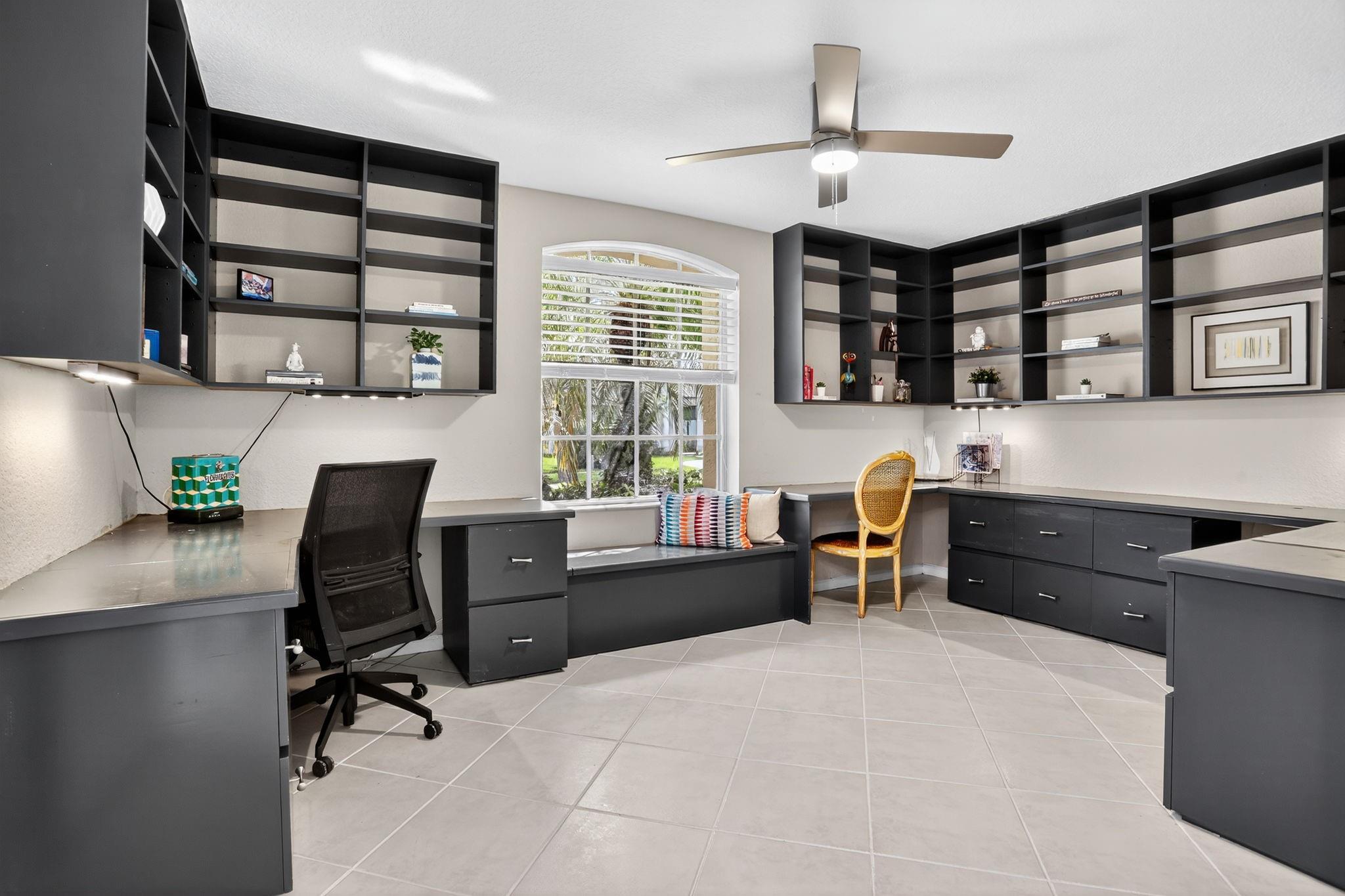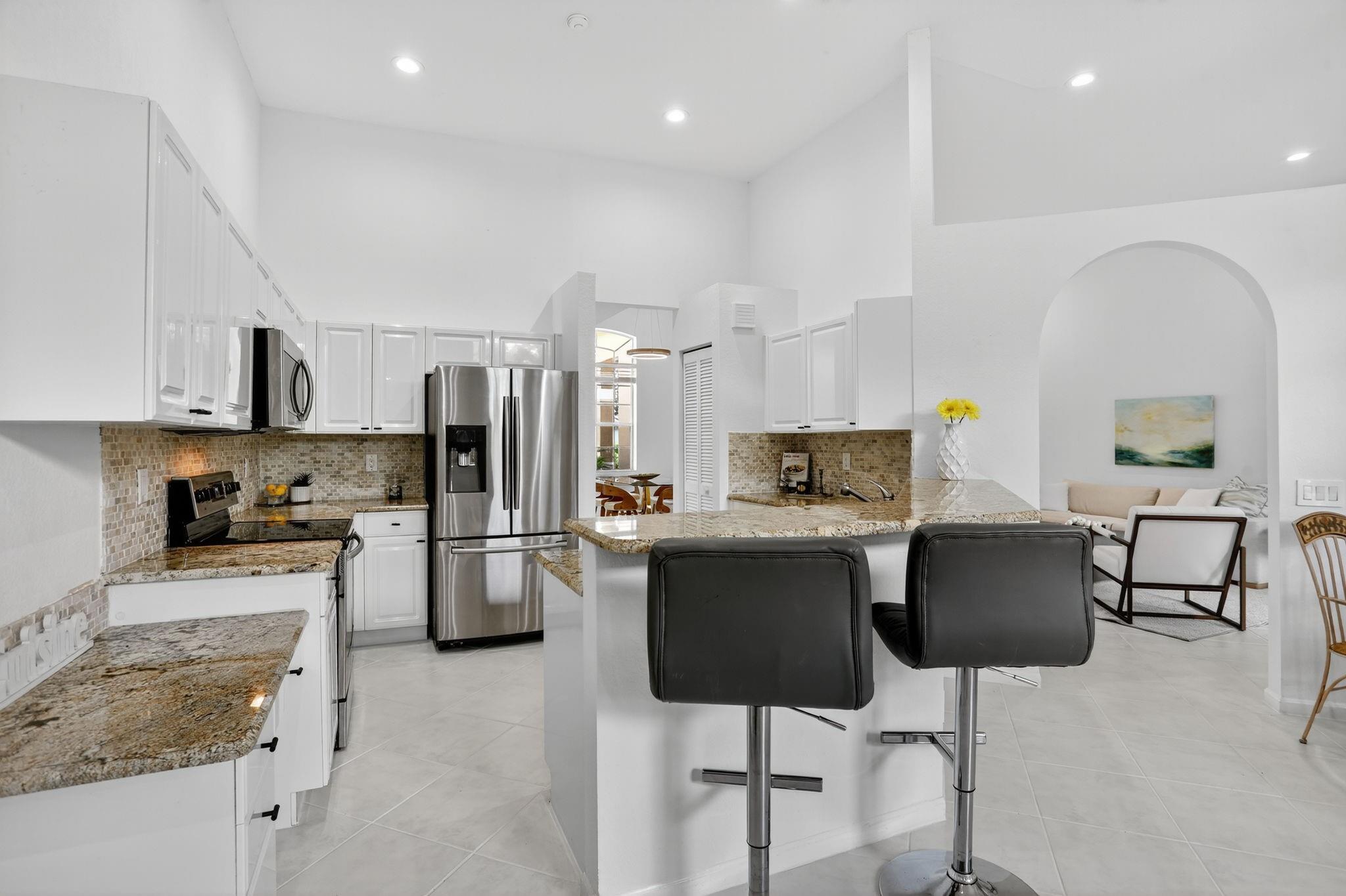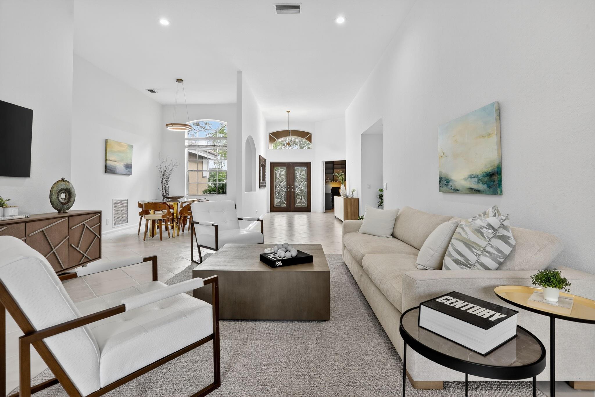 WOW! Lowest price 5BD home in Weston Hills! Shows like a model! Light, bright & airy, beautiful single-story, almost 3000sf/ac, situated on a picturesque tree-lined street. French doors with impact glass open to a crisp, freshly painted interior bathed in warm natural light, with high ceilings, brand-new LED lights & new modern chandeliers (Oct 2025). The expansive 3-split floor plan features a primary suite w/generous sitting room, great as exercise area. The large den with custom built-ins is perfect as home office. White/granite kitchen w/stainless appliances, stone backsplash, new modern hardware. Tile in all liv areas, newer luxury vinyl in bedrooms. Generous covered patio & charming private garden provides a peaceful backyard oasis. Around the corner from the comm park & golf course.