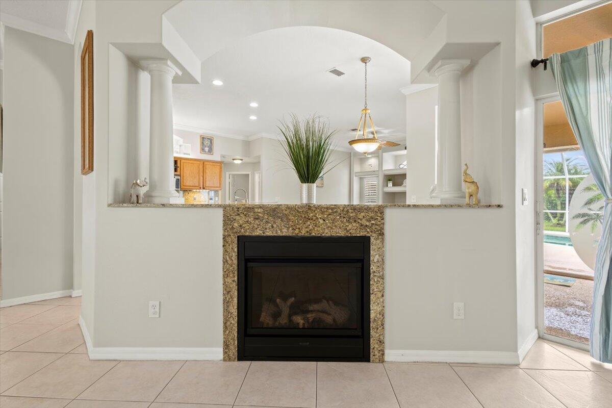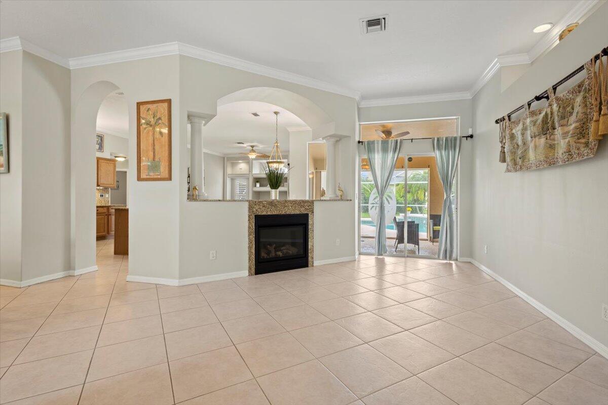 Welcome home to your private Florida retreat--where poolside living and spa-like relaxation come standard. This beautifully upgraded home features a sparkling saltwater heated pool and jacuzzi, creating the perfect setting for unwinding, entertaining, or enjoying sunny days year-round. Recent improvements include a brand-new 2025 roof, fresh exterior paint, accordion hurricane shutters, and a whole-house water filtration system for added comfort and peace of mind.Inside, elegant touches like plantation shutters, crown molding, and a cozy fireplace set a warm, inviting tone. The spacious floor plan offers a formal dining room, separate living and family rooms, and a chef-inspired kitchen with gas stove, double wall oven, and breakfast nook--ideal for everyday living or hosting guests.