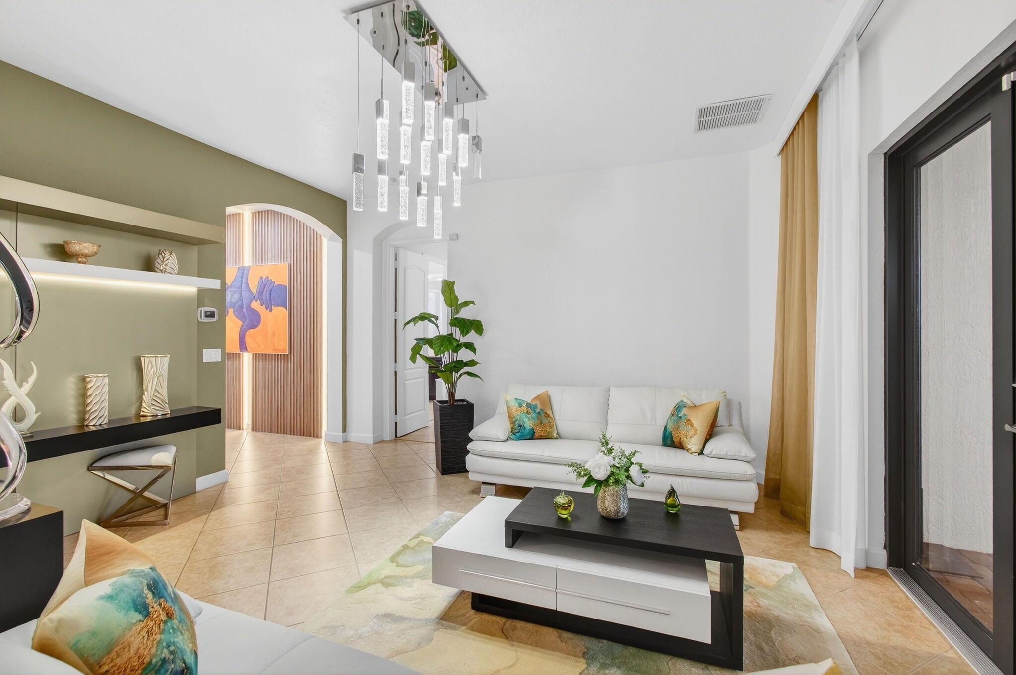 Located in the beautiful Casa Bella community in the city of Delray Beach, 8137 Ferentino Pass invites residents with its impeccable charm and state-of-the-art amenities. Reflective of the vast Florida skies, the elegant exterior is neatly complemented by a generous, large patio, screened and covered for optimal privacy and enjoyment. This outdoor area offers extensive space, perfect for those considering the installation of a pool for endless fun under the sun.The home delivers a significant advantage with a large, two-car garage, providing ample space for vehicle accommodation or additional storage should need arise. As you step inside, the richness of the architectural details can immediately be noticed.
