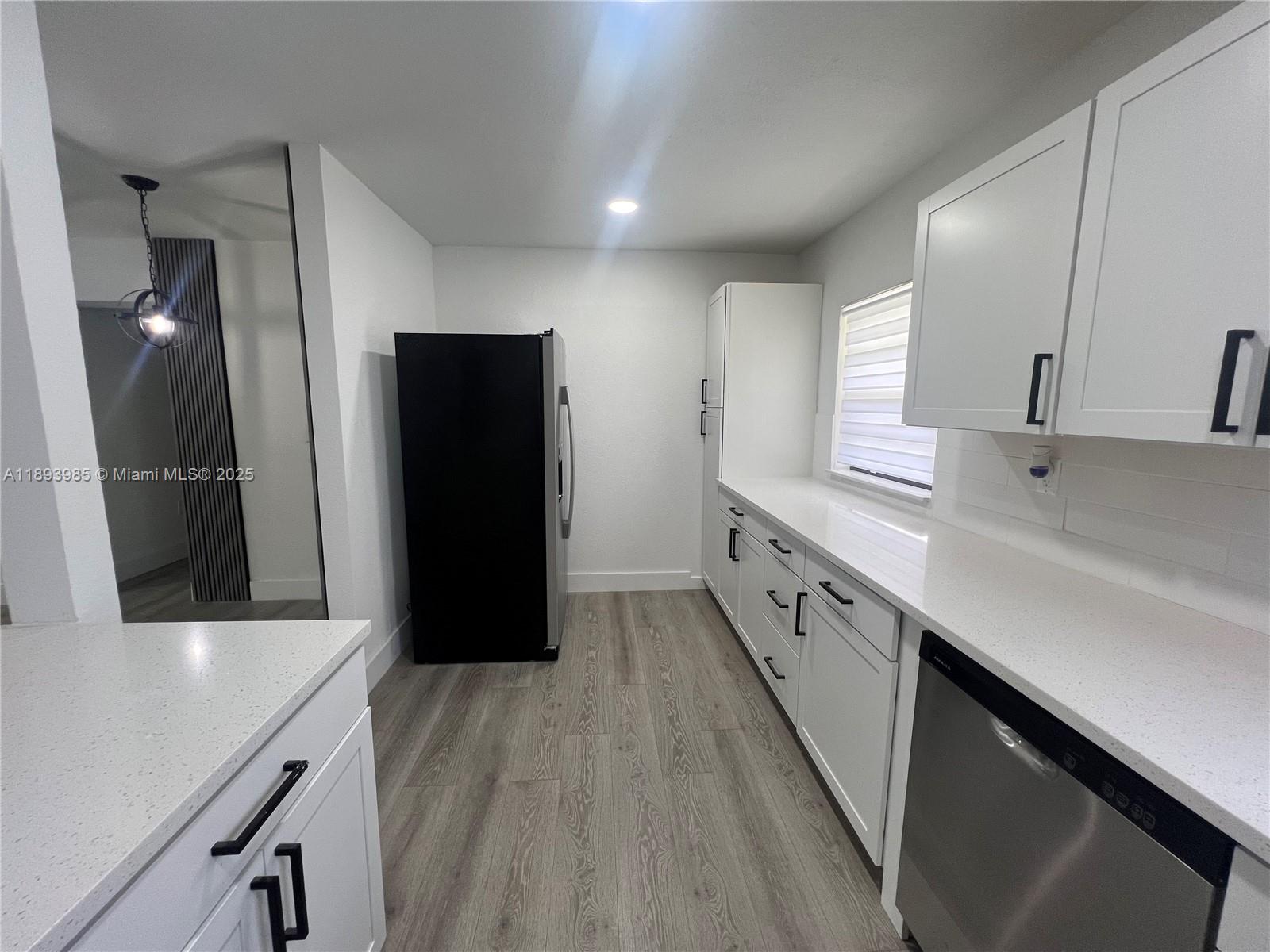 Prime Miami Gardens location with a brand-new roof! This single-family home features a stylish designer kitchen and bathrooms, offering 4 bedrooms and 2 bathrooms, with potential for rental income or an in-law suite. It boasts a spacious living area on a 7,875-square-foot lot, with tile and laminate flooring throughout, roomy interiors, walk-in closets, a large family room, and a carport. The freshly painted interior adds a modern touch, while complete accordion shutters provide security and storm protection. With a generous laundry room and a fenced yard, this property is move-in ready!