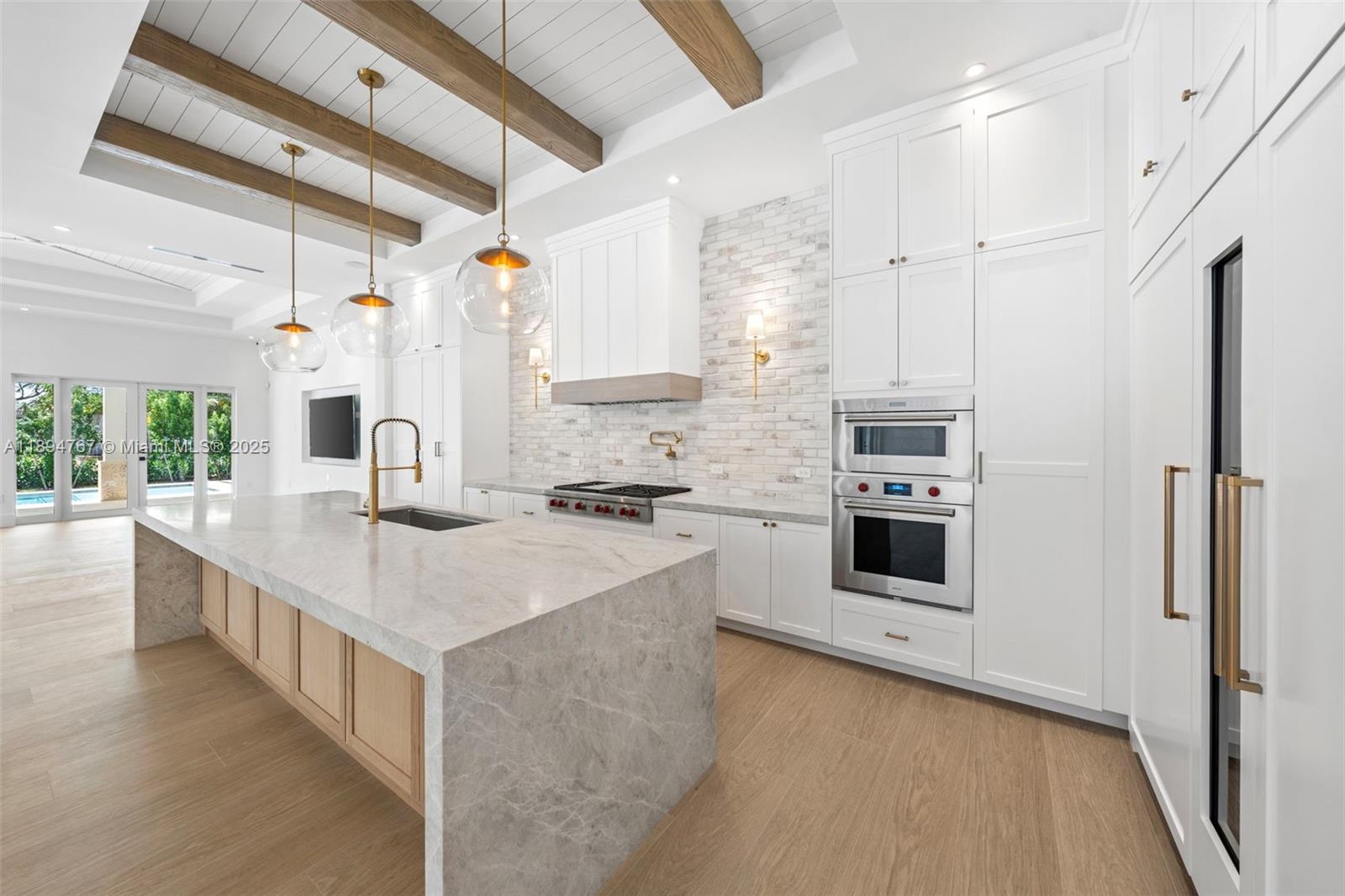 Pinecrest Showpiece! 2025 Custom Home, 1 acre, Heated Pool, 61 ft x 17 ft spa, sun deck in pool, Kohler Generator 38KW powers whole house, 8 Bedrooms 9 bathrooms - Primary bed/bath w/sitting area, huge shower and soaking tub, outside Covered Chef kitchen with granite tops, built in gas barbecue, Gorgeous White Kitchen - Quartzite Taj Mahal countertop, Sub zero Freezer/refrig/wine column, Professional Wolfe Gas Range 48inch, Wood cabinets, 1000 gallon underground LP Tank, 3 Tankless Hot water heaters, AC - 4 Rheem High efficiency units, Lutron Lighting, study/office, spacious bedrooms, staff bedroom, plus separate guest house with kitchen, wash/dry, bathroom, exterior pool cabana, bath, and shower, Living Room 18 ft ceilings, All rooms min 11 ft, Entry Gate, Cameras, Sprinkler system