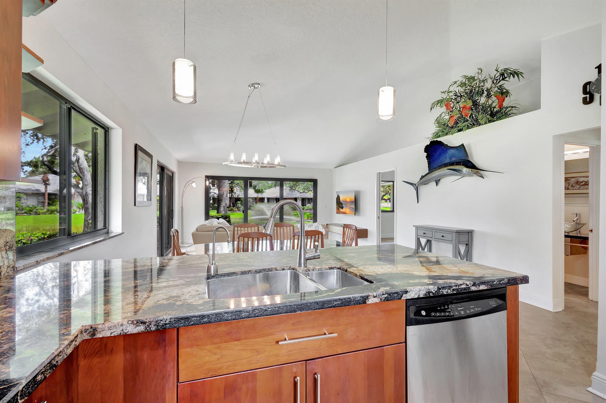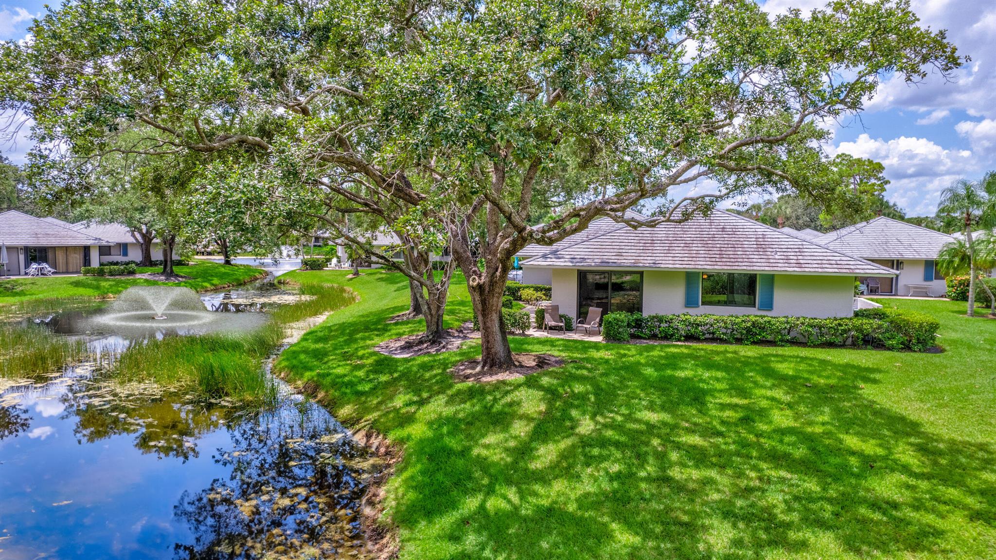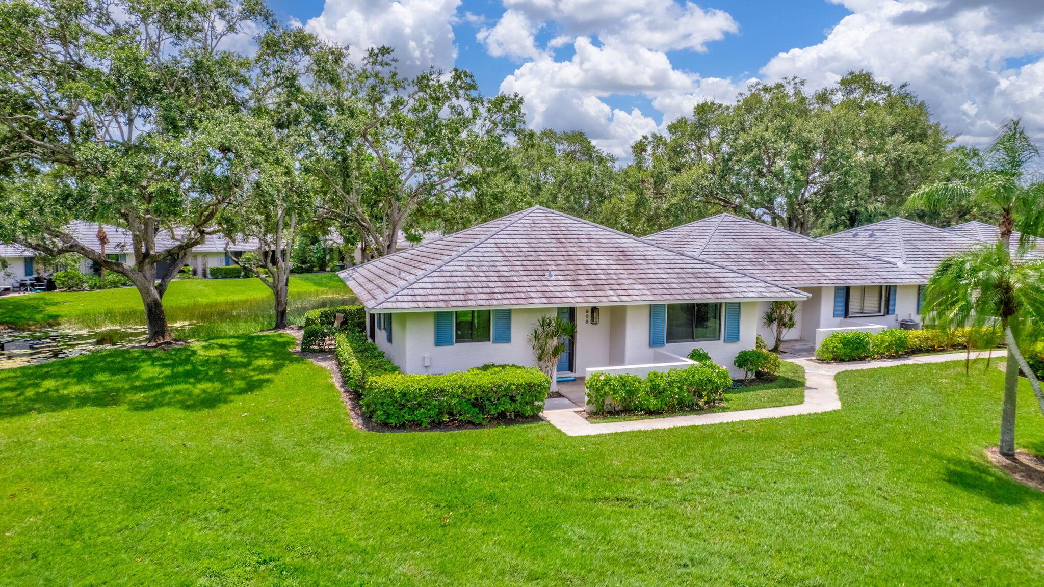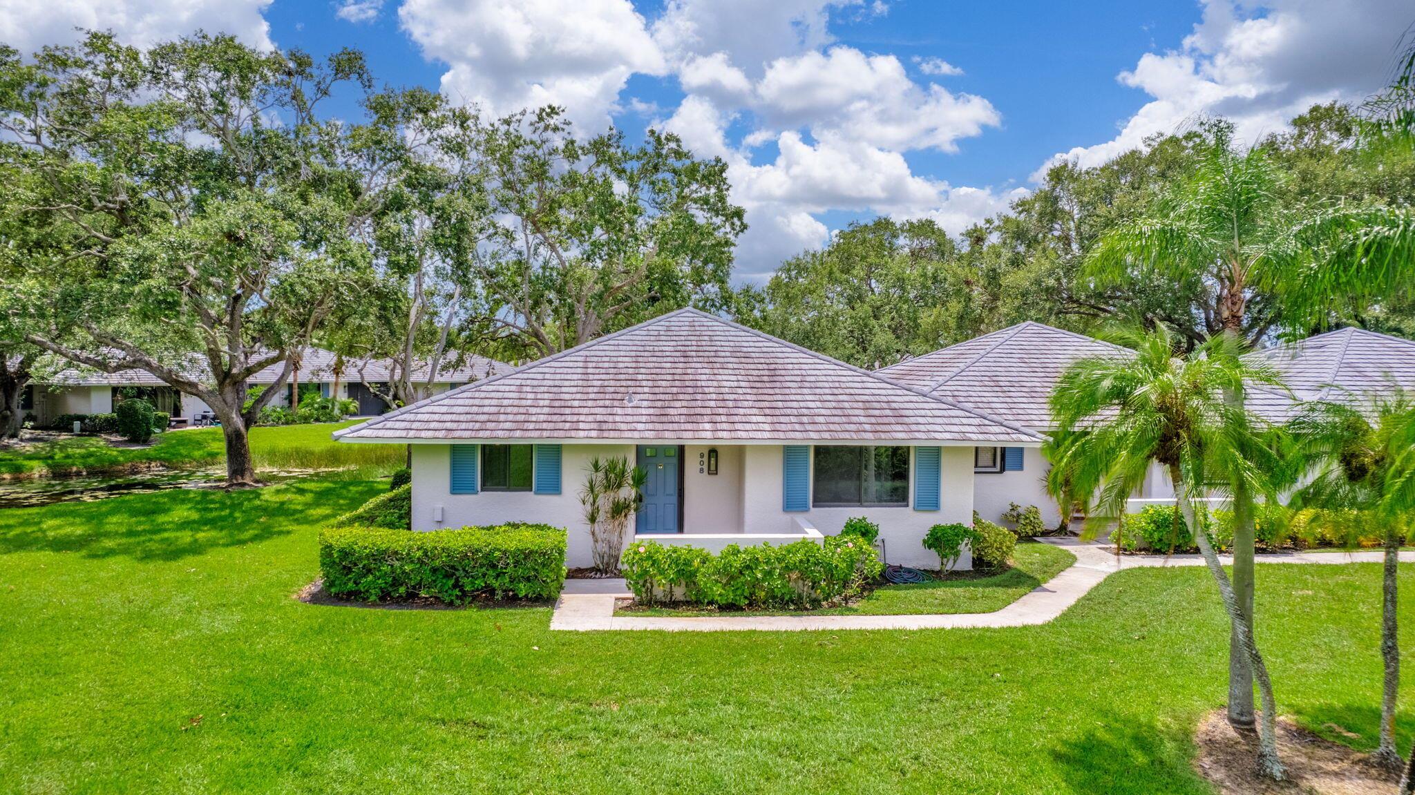 Well, here it is the one you've been waiting for. Rare opportunity to purchase 1 of 12 units out of 220 in Club Cottages, with the additional upgraded builders corner sliding door, offering panoramic views of the water and wrap around patio!! These end units seldom come on the market. Original owner. This unit has been recently updated featuring, new metal roof 2022, new impact glass sliders and windows 2023. New A/C 6/24, new hardwood floors 7/24. Gourmet chef's kitchen, outstanding granite countertops with book matched granite backsplash. Updated bathrooms with frameless glass doors. Fresh paint throughout. 908 is a corner unit with unobstructed garden and water views. Very private bright and open floor plan. Bring your buyers as they are going to love it.