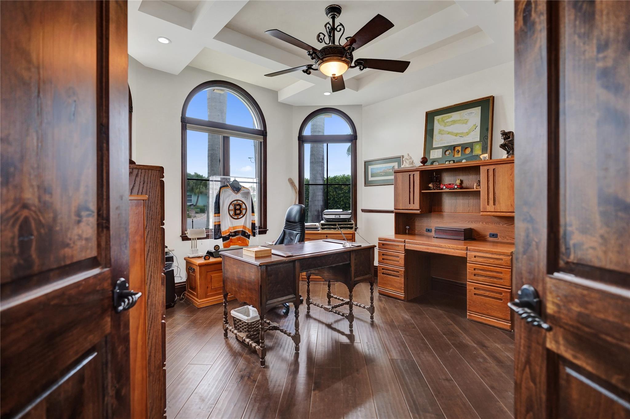 This elegantly finished 6-bedroom, 6.5 bath home features marble floors, vaulted ceilings, beautiful dark wood trim and solid doors, grand staircase, carved limestone fireplace, and more. This home checks all the boxes with full house generator, two brand new ACs, 95' concrete dock with 27,000 lb. boat lift, east exposure on the pool, patio and back yard, and is located at the end of a cul-de-sac street with no traffic. Luxurious master suite has beautiful views with a balcony that overlooks intersecting canals, his and her baths, steam shower, and very large closets with custom cabinetry. Expansive back yard which features new putting green, patio with retractably screens and hurricane screen as well as astroturf for low maintenance and more time enjoying the Florida Sunshine.