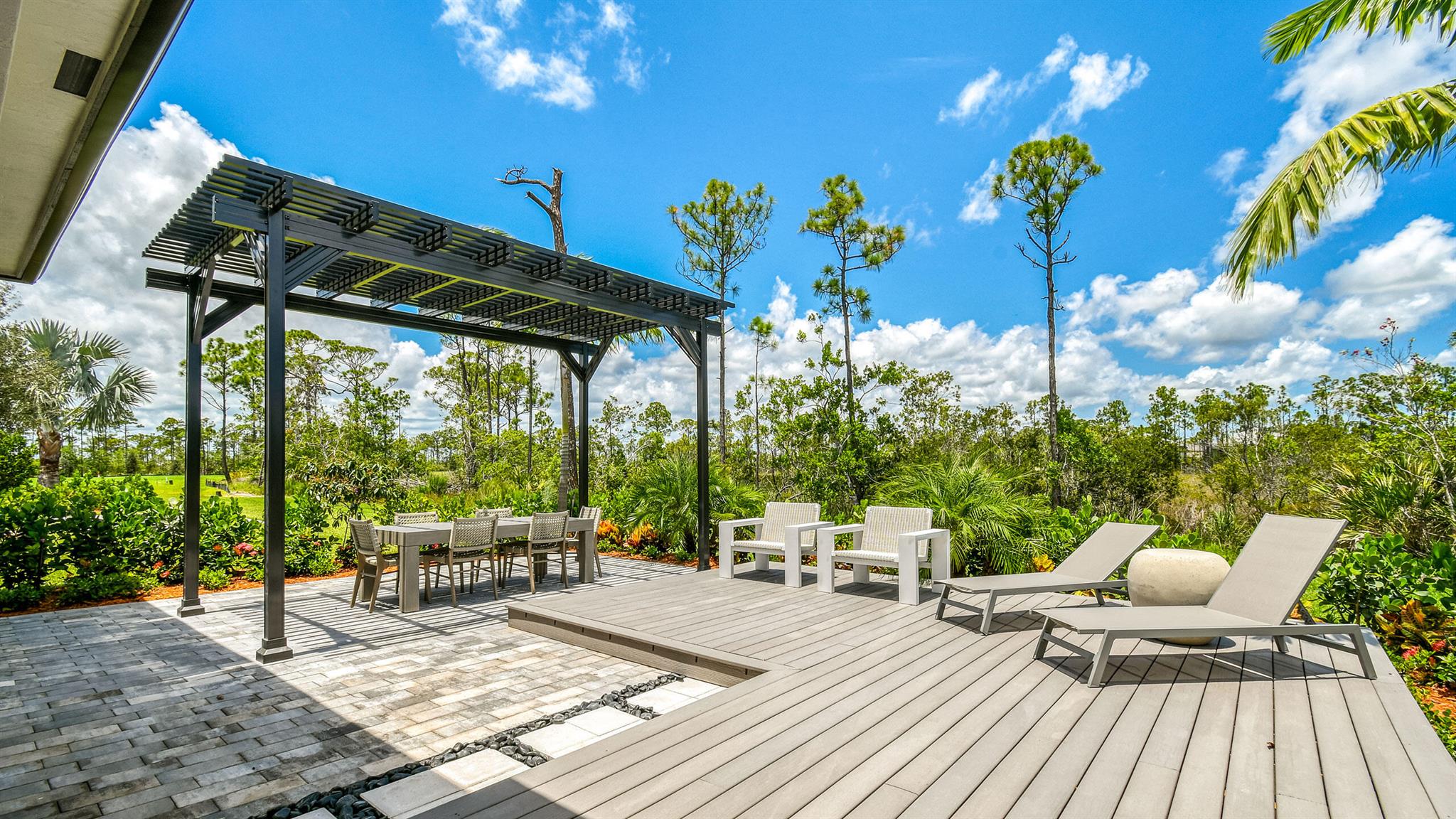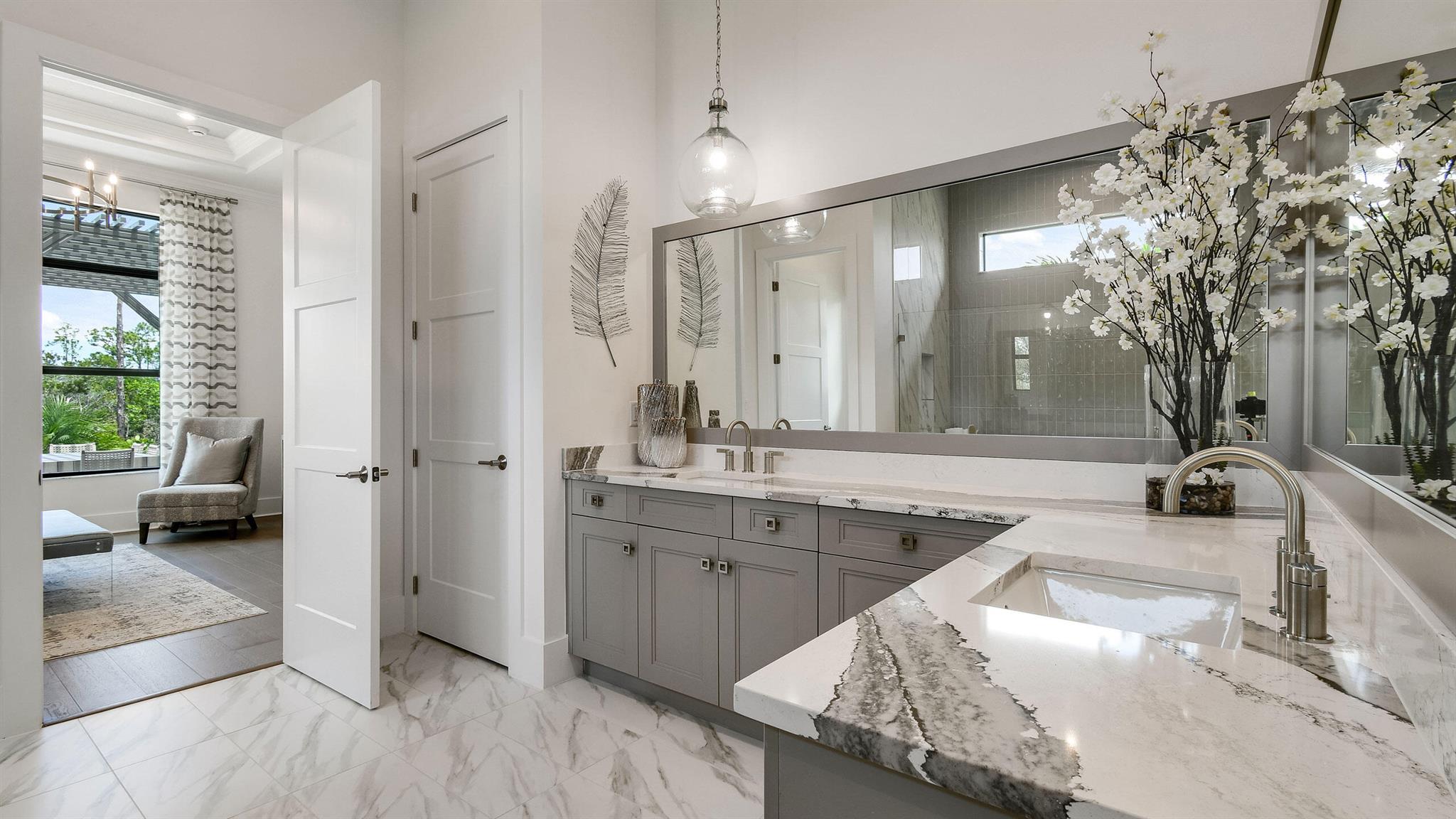 **NEW CONSTRUCTION** Model Photos Used for reference. The Riley Floorplan at Mosaic is located on an oversized, west facing, preserve-view homesite, 3 bedroom, 3.5 bathrooms, and spacious flex room large enough to fit a full sized pool table or home office. The Riley layout offers separate dining and living areas with an open flow, perfect for everyday living and entertaining. The kitchen includes white cabinets, GE Profile appliances, with wall oven and microwave combo, and a large island with quartz countertops that overlooks the main living area. Wood-look tile extends throughout the home for a clean modern finish. Expansive 10' corner sliders pocket fully into the wall, opening to the covered lanai that is pre plumbed for an easy outdoor kitchen.