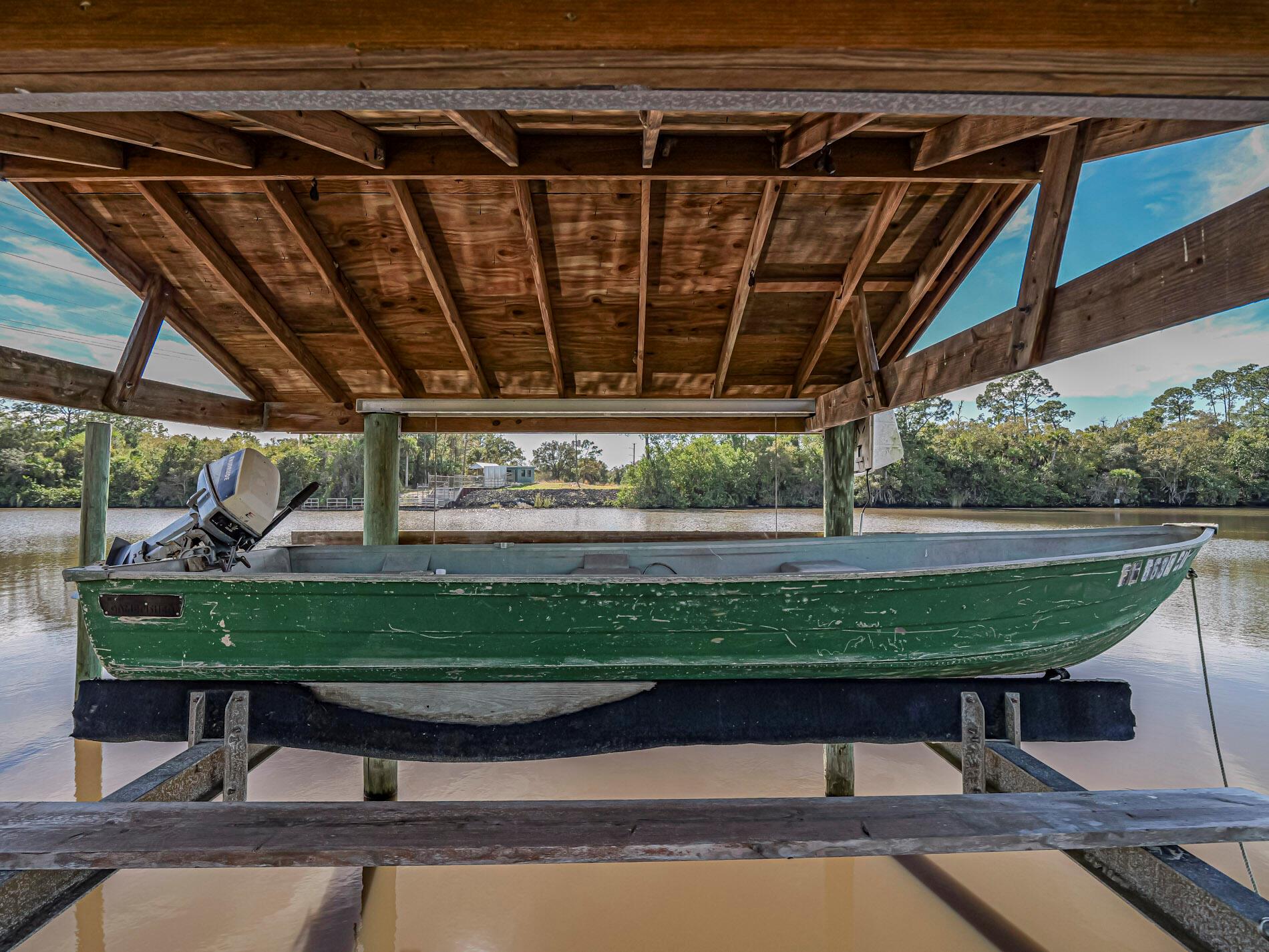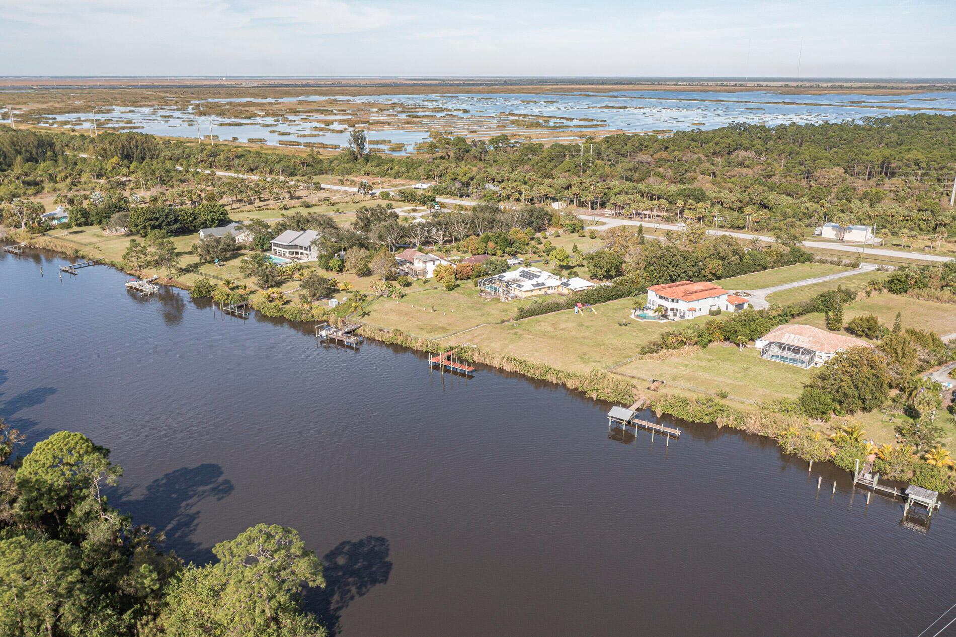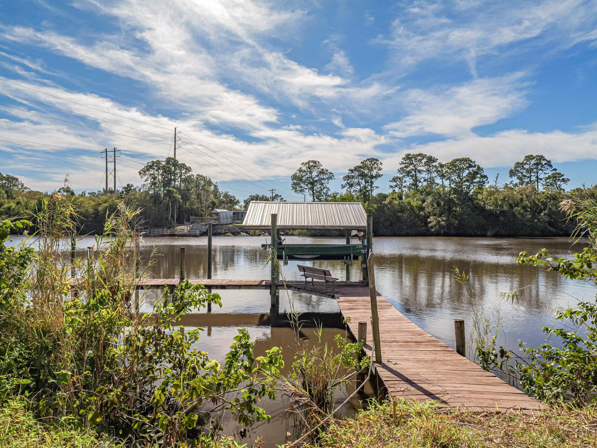 BACK ON MARKET WITH BRAND NEW ROOF!! What a fantastic opportunity to own almost 2.5 acres of WATERFRONT property! This 3BR/2BA CBS home sits right on the deep waters with access to the Atlantic, Gulf and Okeechobee waterways! Features a private dock with a lift and a view that goes on forever!! Watch the boats go by from your screened lanai (new screens just installed) and recently updated pool. The home features tastefully updated bathrooms, a split bedroom plan, tile floors throughout and new water filtration system. The light and bright white kitchen boasts granite countertops, stainless appliances, gas range, wine fridge & a view of the river from your kitchen island! 1/2 acre of property across the road is perfect for a car enthusiast or to house your toys/RV etc. NO HOA