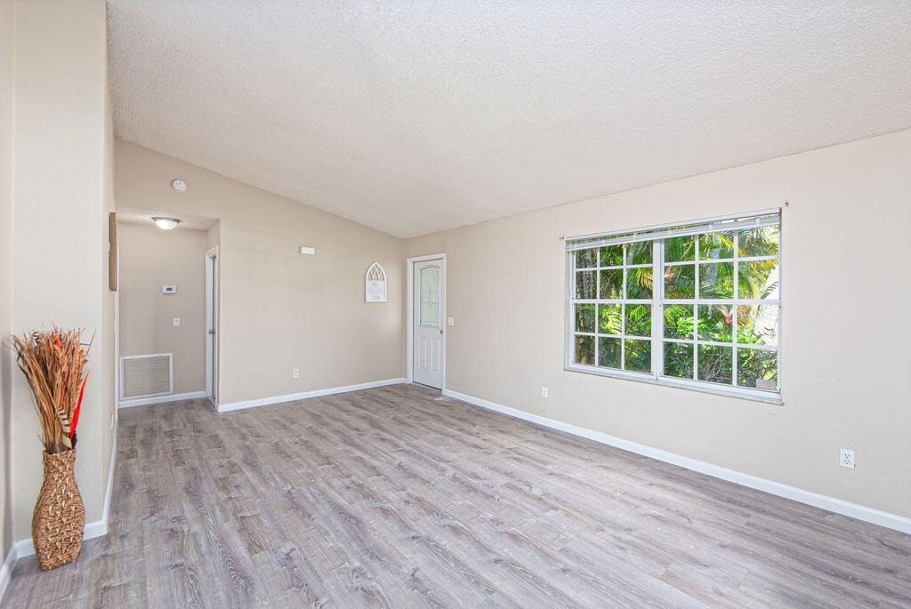 This 3 Bedroom, 2 Bath home in the heart of Port St Lucie is on an Oversized Corner Lot (.33 Acres). The home has a Split Floor Plan, with New Laminate Flooring Throughout. There are updated Vanities in both bathrooms, and all freshly painted inside. Close to shopping, schools, parks, and more. A/C is 2017-(coils replaced in 2024), Roof is 2018.
