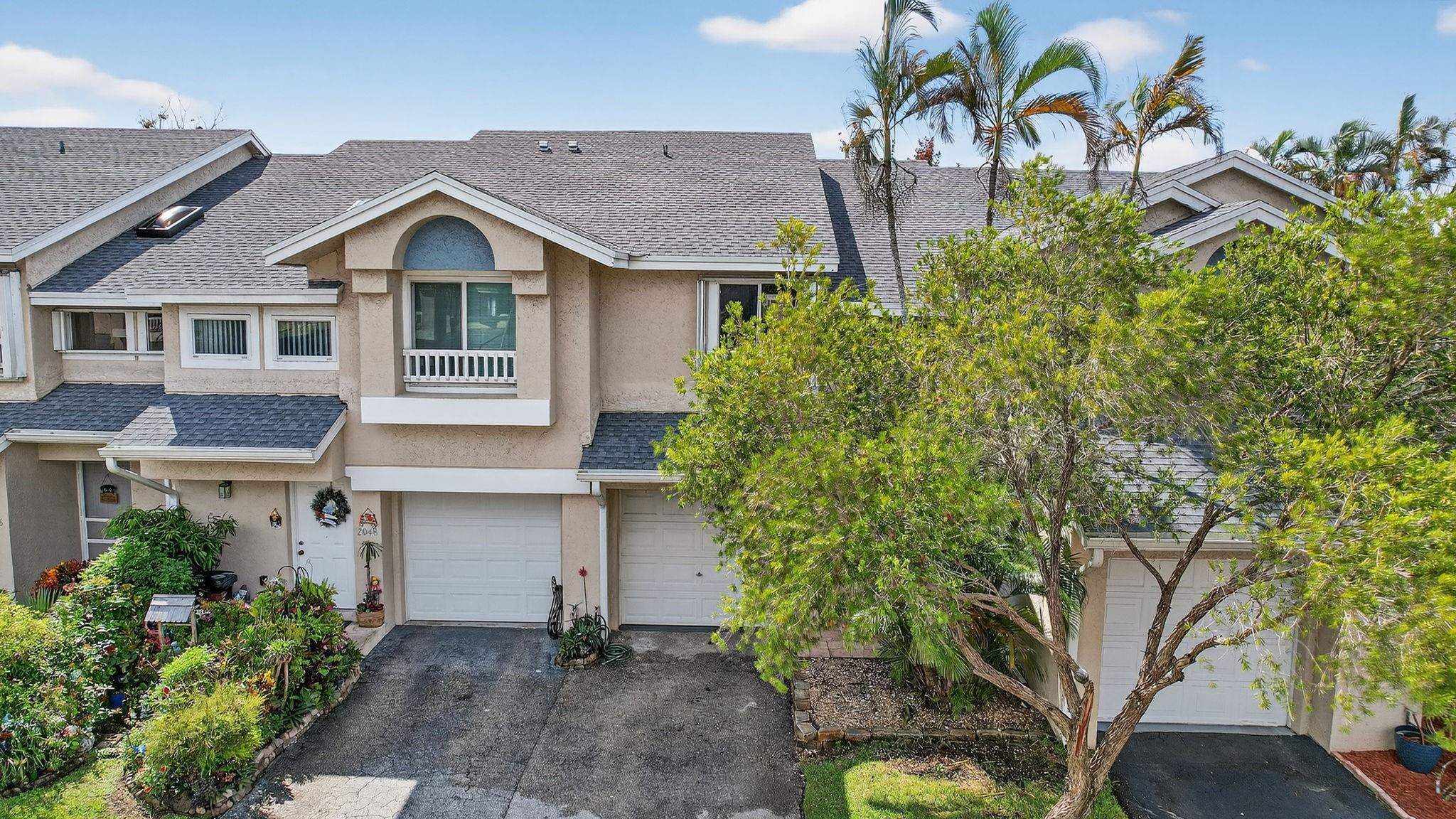 OPPORTUNITY KNOCKS as the neighboring property just closed for 399,000!!! PRICE REDUCED 20k! This 2/2.5 townhouse has tile floors and wood on the stairs, with NO CARPET! It’s got wood cabinets and Corian counters in the kitchen. The large primary suite has double door entry with soaring ceilings, large walk in closet and laundry conveniently upstairs near bedrooms. The guest bedroom has an en-suite bathroom. This property overlooks the lake from the screen porch and has accordion shutters for your peace of mind. New A/C and Water Heater 2021. New roof in 2023. New dishwasher, microwave, oven, and freshly painted. Located in GATED Discovery Pointe with amenities including pool, hot tub, gym, indoor racquetball, and tennis! ONLY 5 MILES to the BEACH and close to shopping, and restaurants.