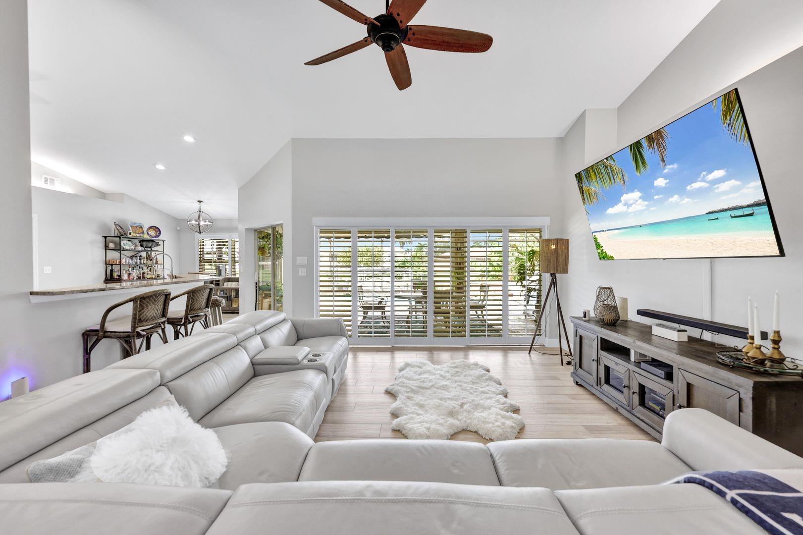 WESTERN EXPOSURE GULF-ACCESS POOL HOME w/DOCK & LIFT! Enjoy tropical landscaping, lava rock accents, and a screened double French-door entry. Inside, vaulted ceilings and open living spaces flow to a granite kitchen with tile backsplash, farmhouse sink, KitchenAid appliances, pantry, and breakfast nook overlooking the water. The owner’s suite has sliders to the lanai and a spa bath with dual sinks, vanity, walk-in shower, and tub. Features include tile floors (2021), new roof (2022), new screens, newer A/C & water heater, UV system, fenced yard, and dog run. The electric-heated saltwater pool, waterfall, and dock with lift complete your private paradise—just 35 minutes to open water!