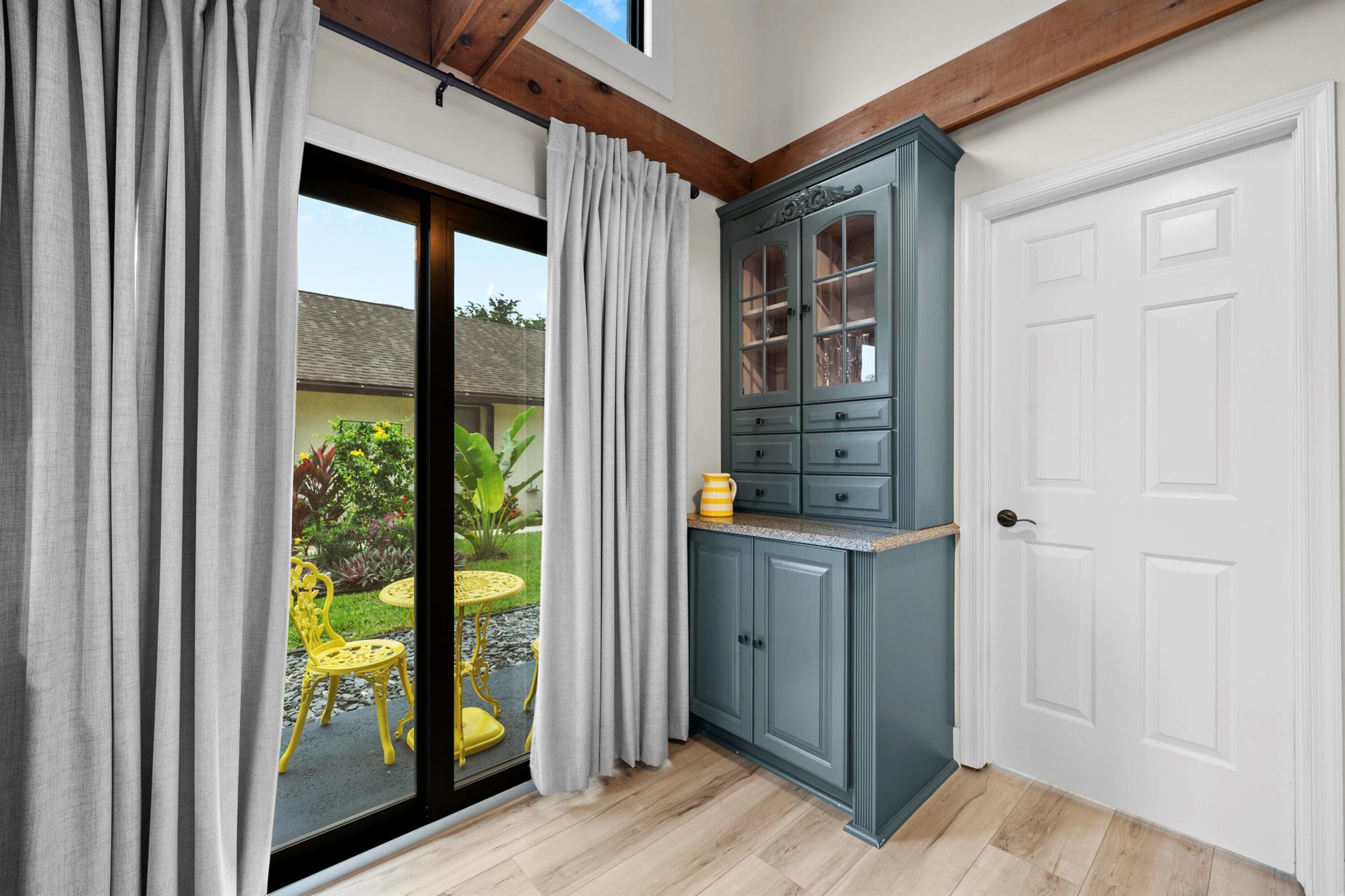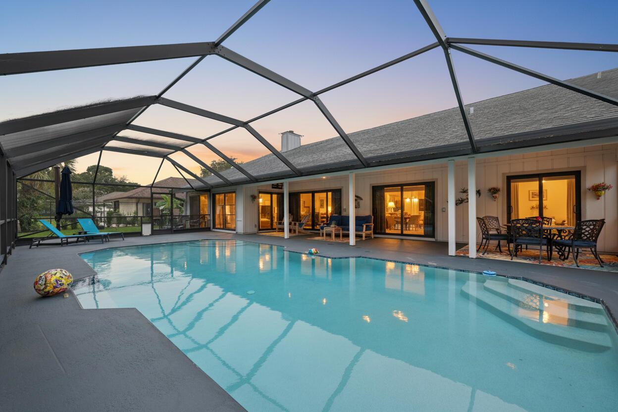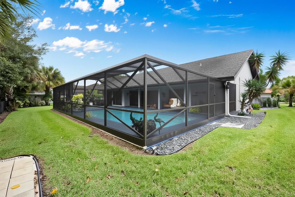 Step into a one-of-a-kind California contemporary masterpiece tucked away in the coveted Gardens Glen community of Palm Beach Gardens. This striking home blends timeless 1980s character with fresh, modern upgrades. Vaulted wood ceilings, dramatic exposed beams & walls of sliding glass that flood the space w/ light & open seamlessly to a private screened pool & covered porch. No rear neighbors, no HOA! Enjoy peace of mind with impact glass throughout, refreshed siding, new interior & exterior paint, 2 brand new A/C units, tankless water heater, new kitchen appliances, new washer/dryer, new pool equipment & attic insulation. Termite bond in place. The oversized garage features epoxy flooring & fresh paint perfect for storage, hobbies, or a sleek home gym.