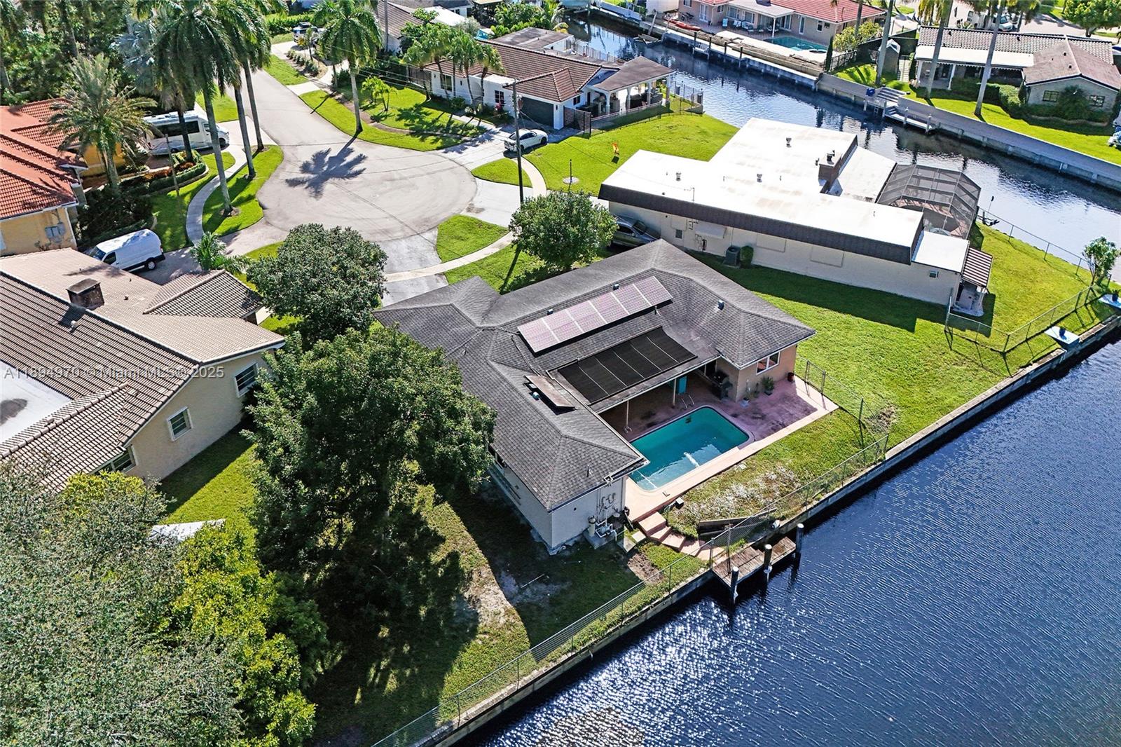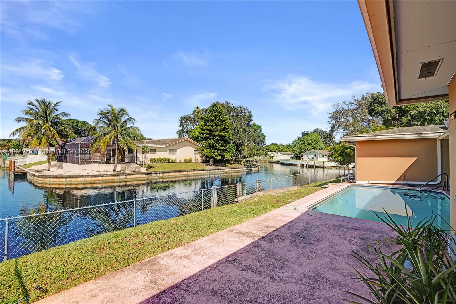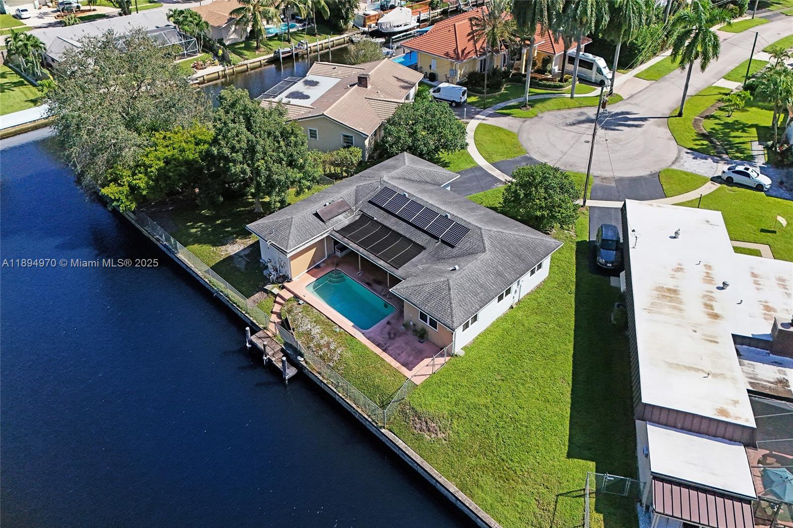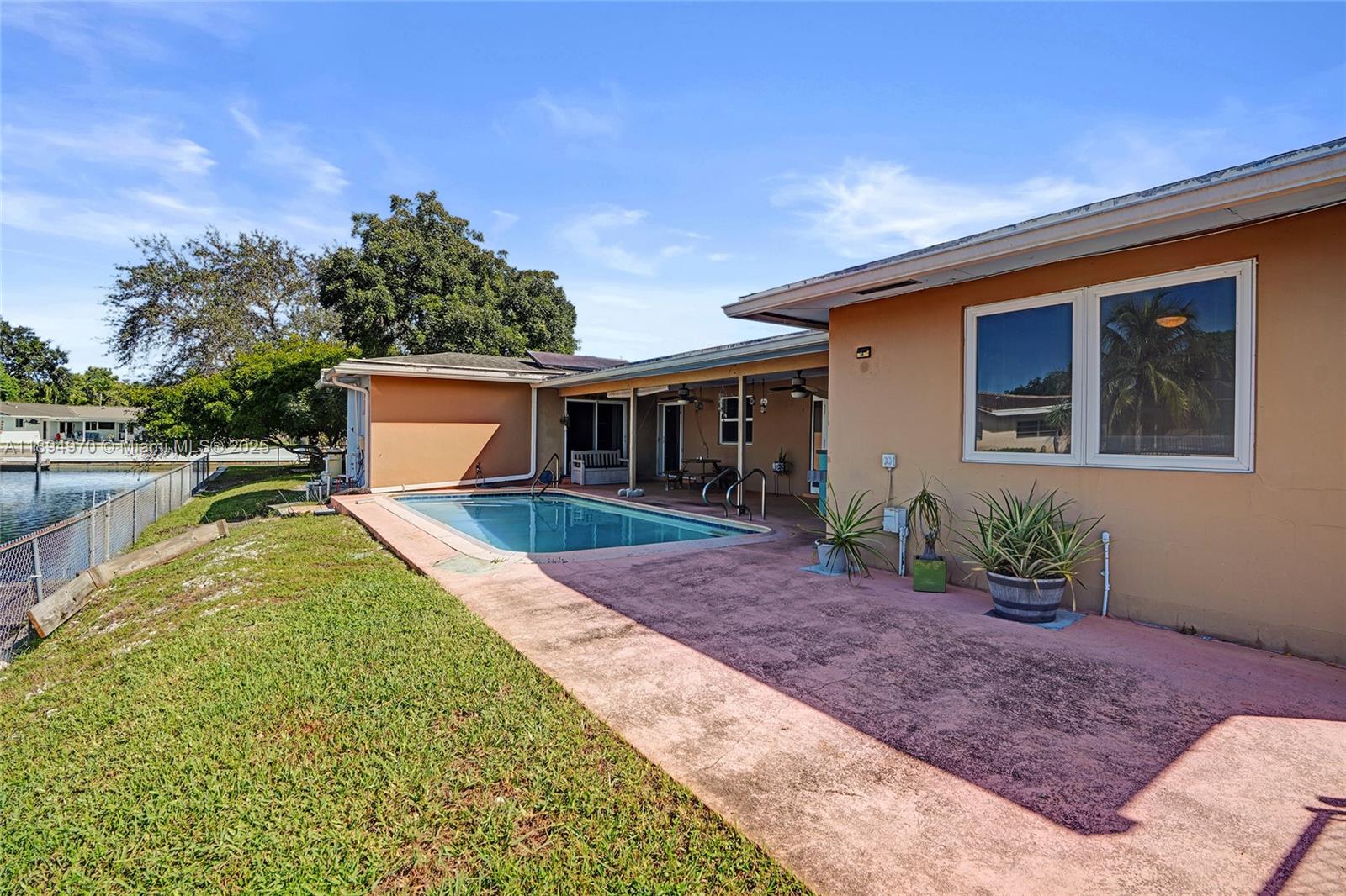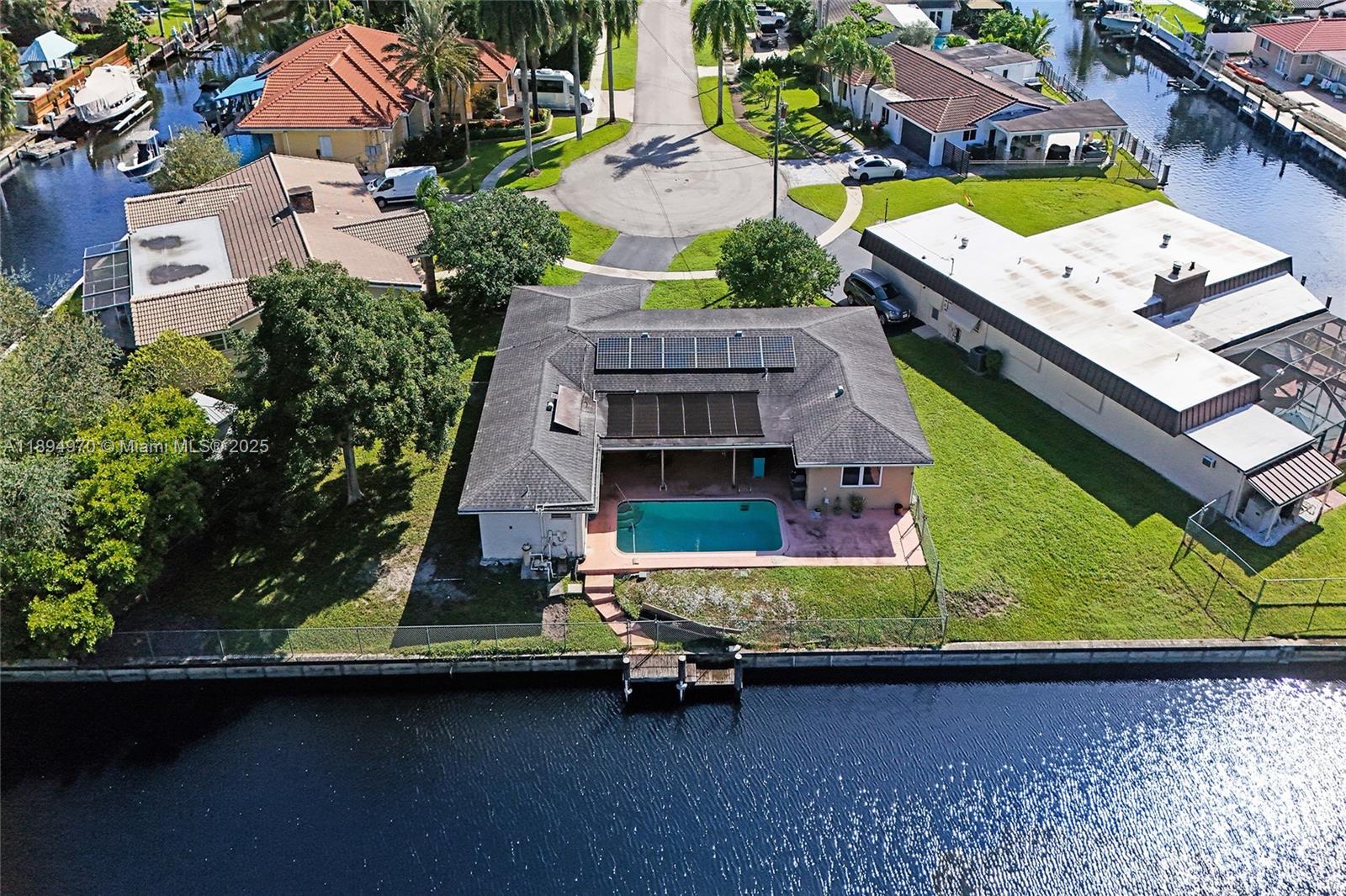 Waterfront property with ocean access — just 45 minutes to the ocean by boat from your private 160-foot dock. Set on an oversized triangular lot at the end of a quiet cul-de-sac, this home offers privacy, expansive water views, and the essence of South Florida living. Enjoy a solar-heated saltwater pool, covered patio, and open outdoor spaces ideal for relaxing or entertaining. Impact-resistant windows and doors, an electric two-car garage, and driveway parking for four provide comfort, security, and convenience. The fenced and open yards offer room for gatherings or pets, while the covered front porch is perfect for enjoying the shade or watching the moon rise. Located near parks, shopping, highways, the port, and the airport.