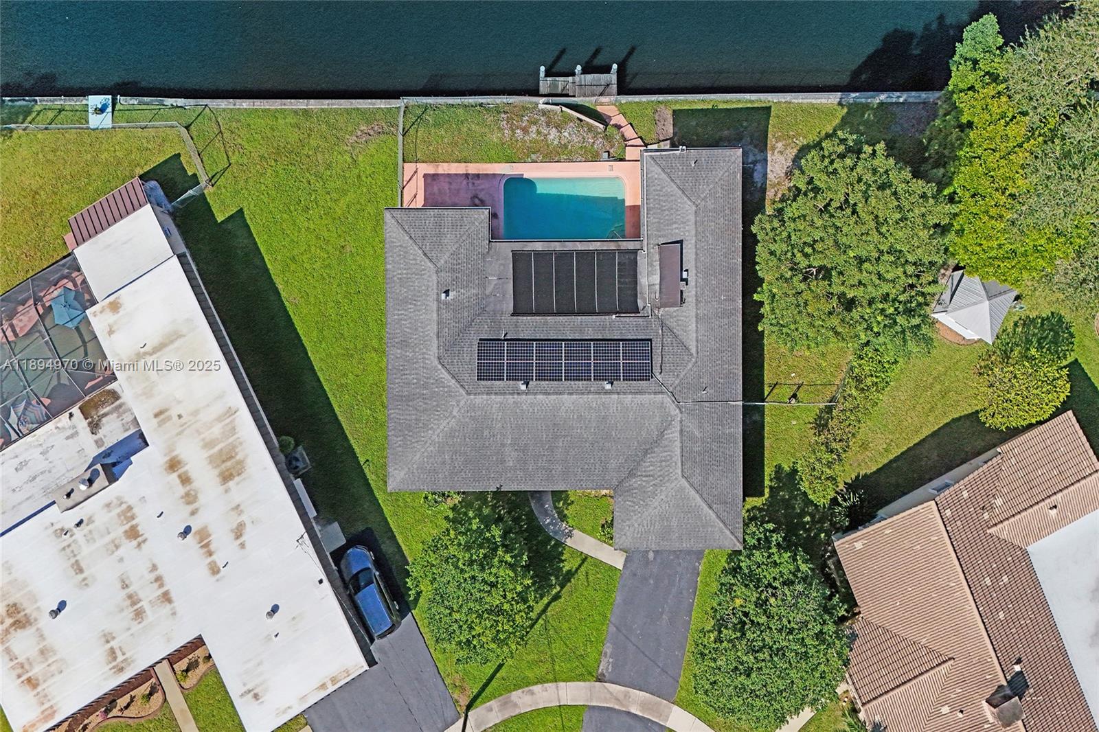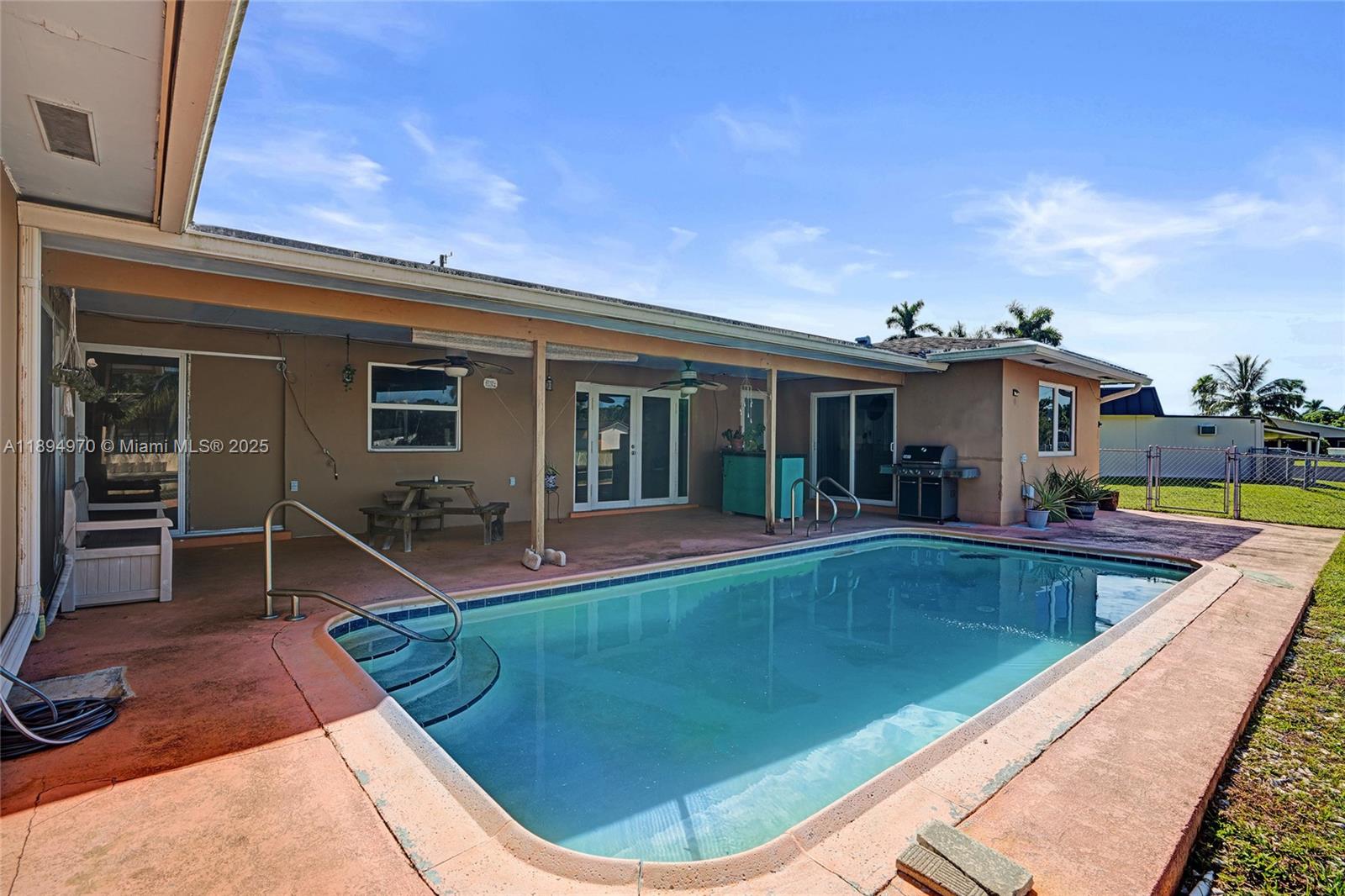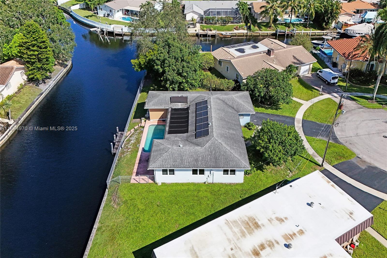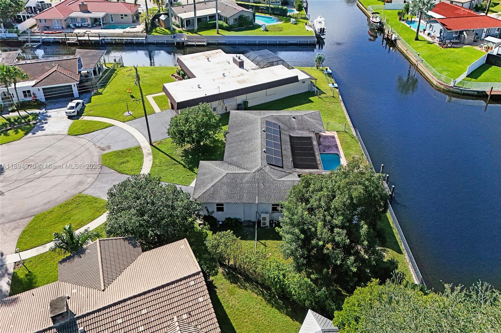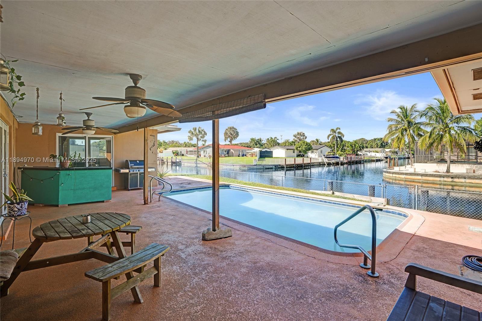 Waterfront property with ocean access — just 45 minutes to the ocean by boat from your private 160-foot dock. Set on an oversized triangular lot at the end of a quiet cul-de-sac, this home offers privacy, expansive water views, and the essence of South Florida living. Enjoy a solar-heated saltwater pool, covered patio, and open outdoor spaces ideal for relaxing or entertaining. Impact-resistant windows and doors, an electric two-car garage, and driveway parking for four provide comfort, security, and convenience. The fenced and open yards offer room for gatherings or pets, while the covered front porch is perfect for enjoying the shade or watching the moon rise. Located near parks, shopping, highways, the port, and the airport.