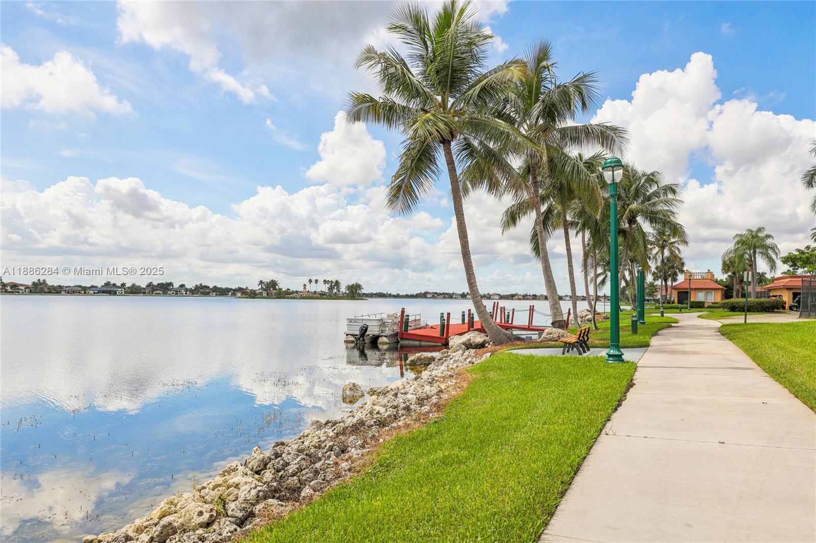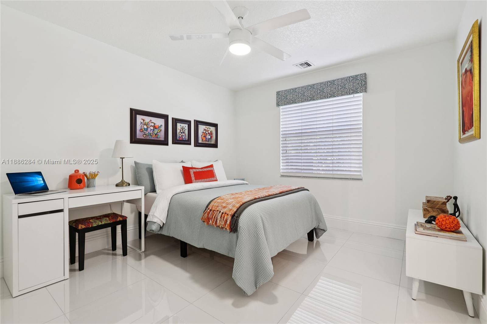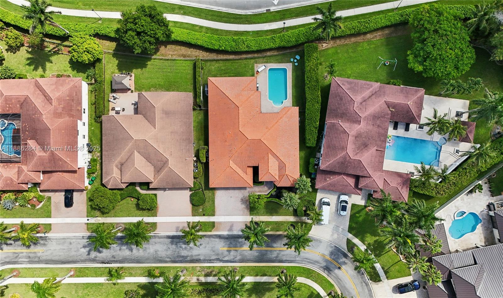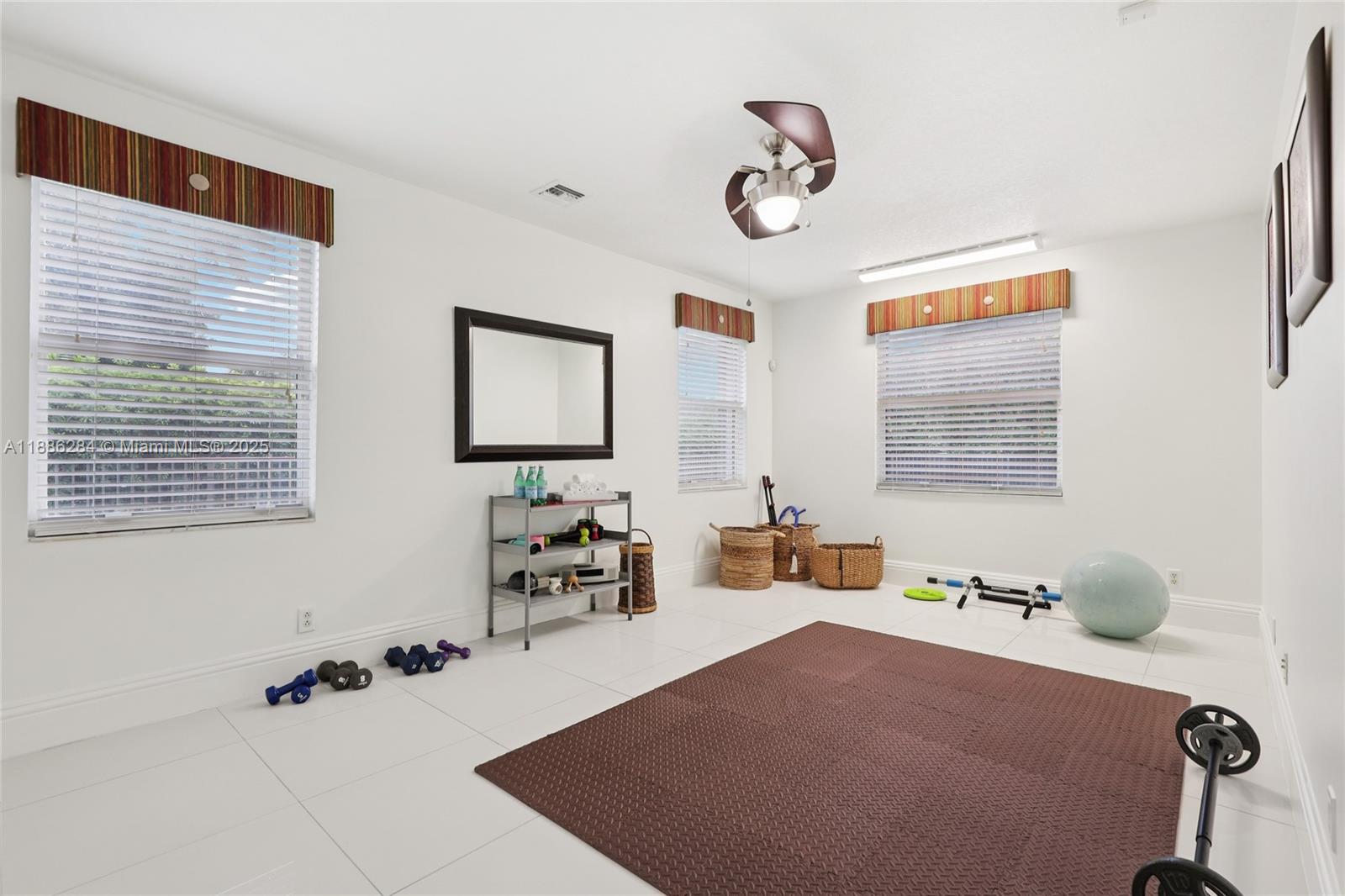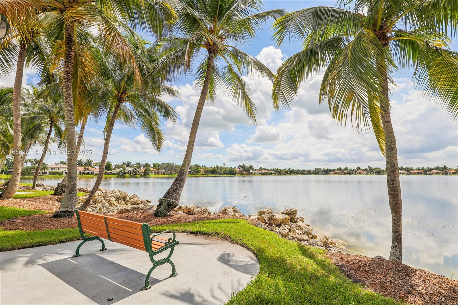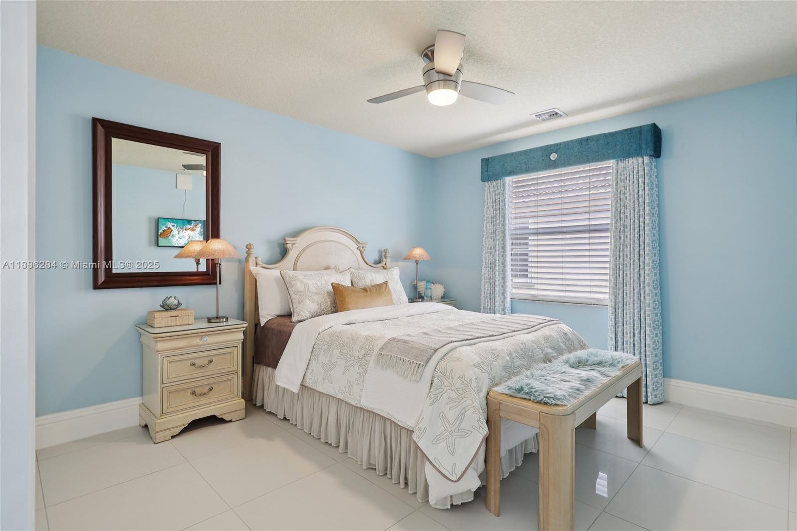 Beautiful 6-bed, 3.5-bath home with an office and a 3-car garage in the exclusive Sunset Lake community. Features dramatic volume ceilings, elegant porcelain tile floors, and a seamless indoor-outdoor flow. The spacious patio and beautiful pool create the perfect backyard retreat. Inside, the open-concept design welcomes abundant natural light. The open kitchen offers granite countertops, wood cabinetry, and a sun-drenched breakfast nook adjoining the expansive family room. The huge primary suite includes a sitting area, walk-in closets, and a spacious bath. Accordion shutters throughout provide peace of mind. Conveniently located near A-rated schools, shops, and dining. The resort-style clubhouse offers a pool, tennis courts, playgrounds, and a gym. Low HOA fee includes Internet and cable