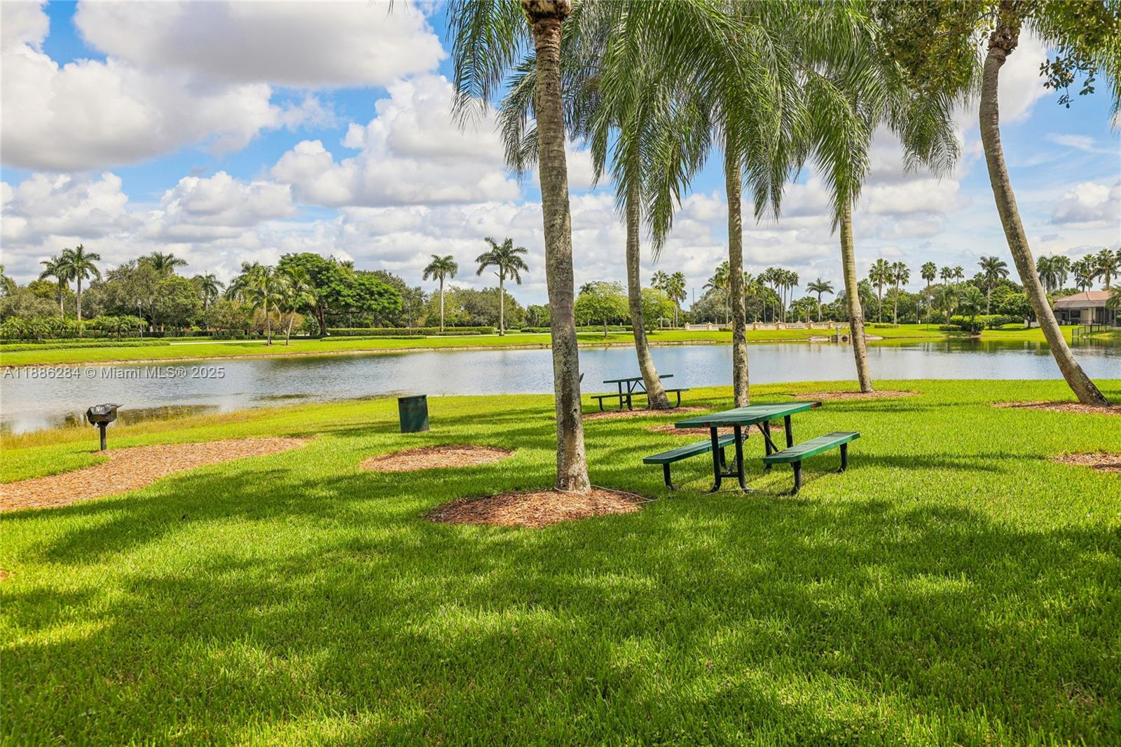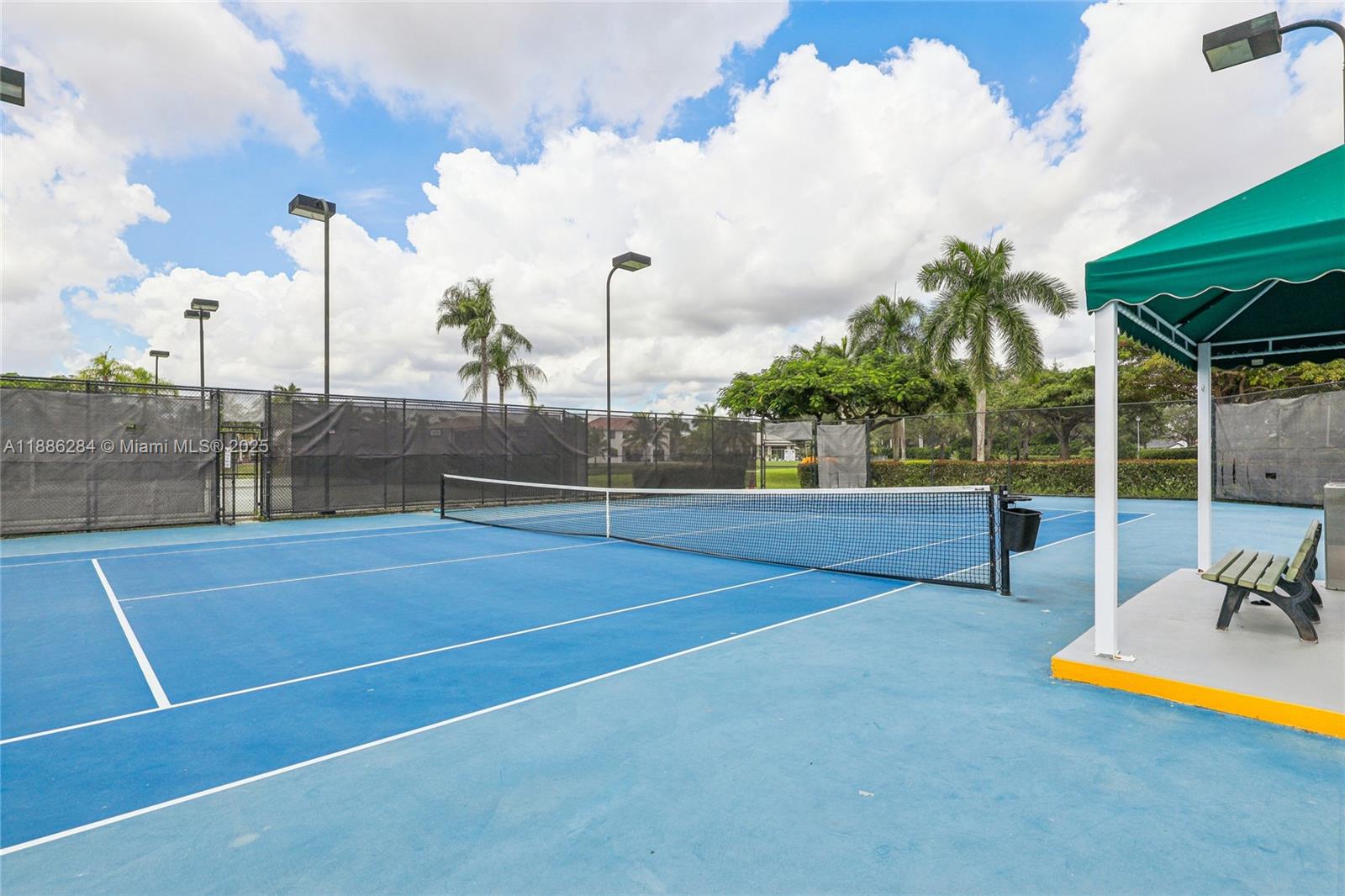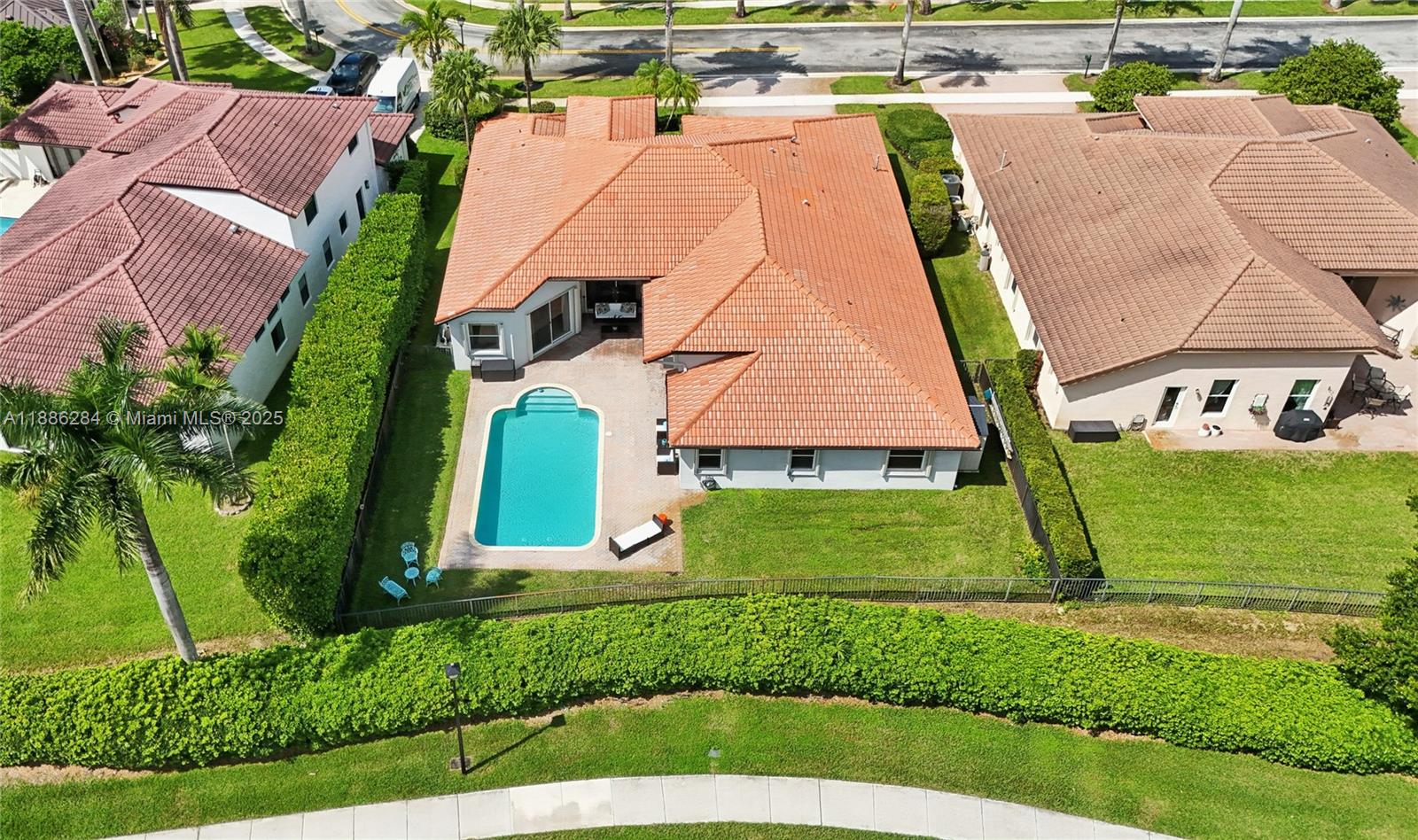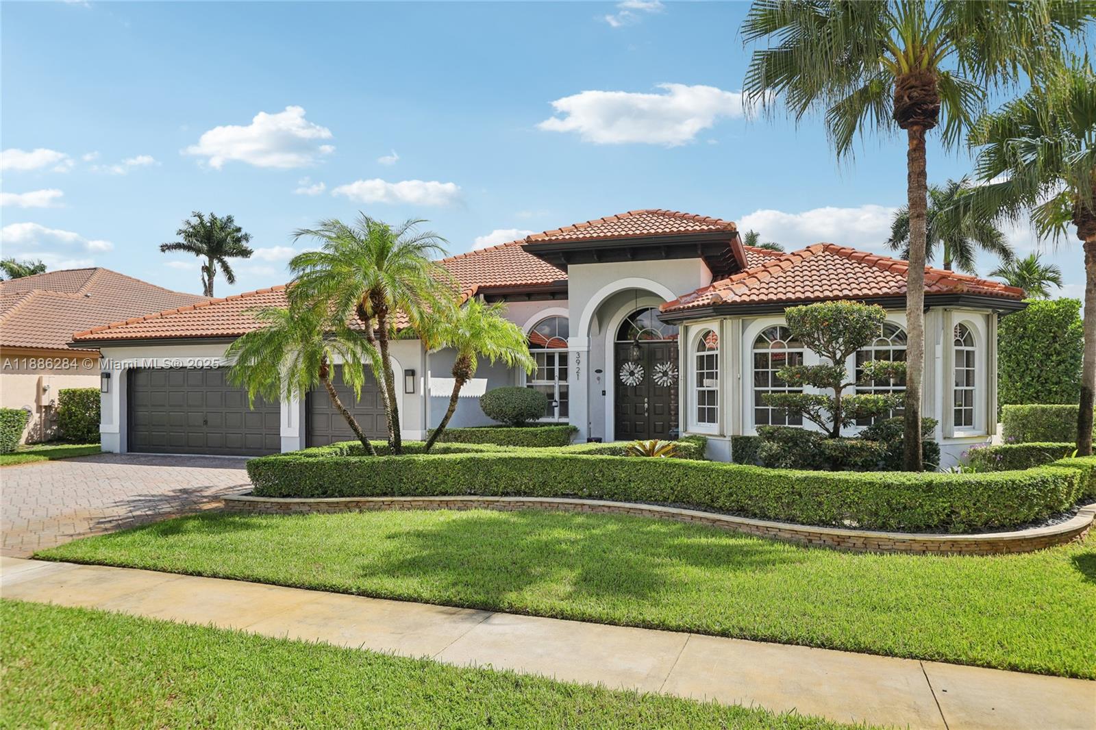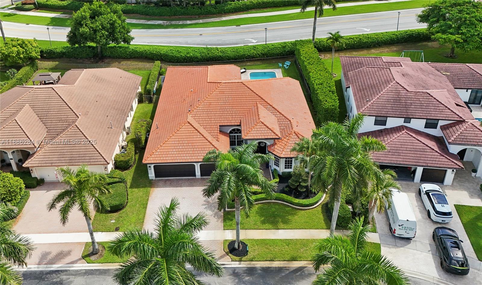 Beautiful 6-bed, 3.5-bath home with an office and a 3-car garage in the exclusive Sunset Lake community. Features dramatic volume ceilings, elegant porcelain tile floors, and a seamless indoor-outdoor flow. The spacious patio and beautiful pool create the perfect backyard retreat. Inside, the open-concept design welcomes abundant natural light. The open kitchen offers granite countertops, wood cabinetry, and a sun-drenched breakfast nook adjoining the expansive family room. The huge primary suite includes a sitting area, walk-in closets, and a spacious bath. Accordion shutters throughout provide peace of mind. Conveniently located near A-rated schools, shops, and dining. The resort-style clubhouse offers a pool, tennis courts, playgrounds, and a gym. Low HOA fee includes Internet and cable