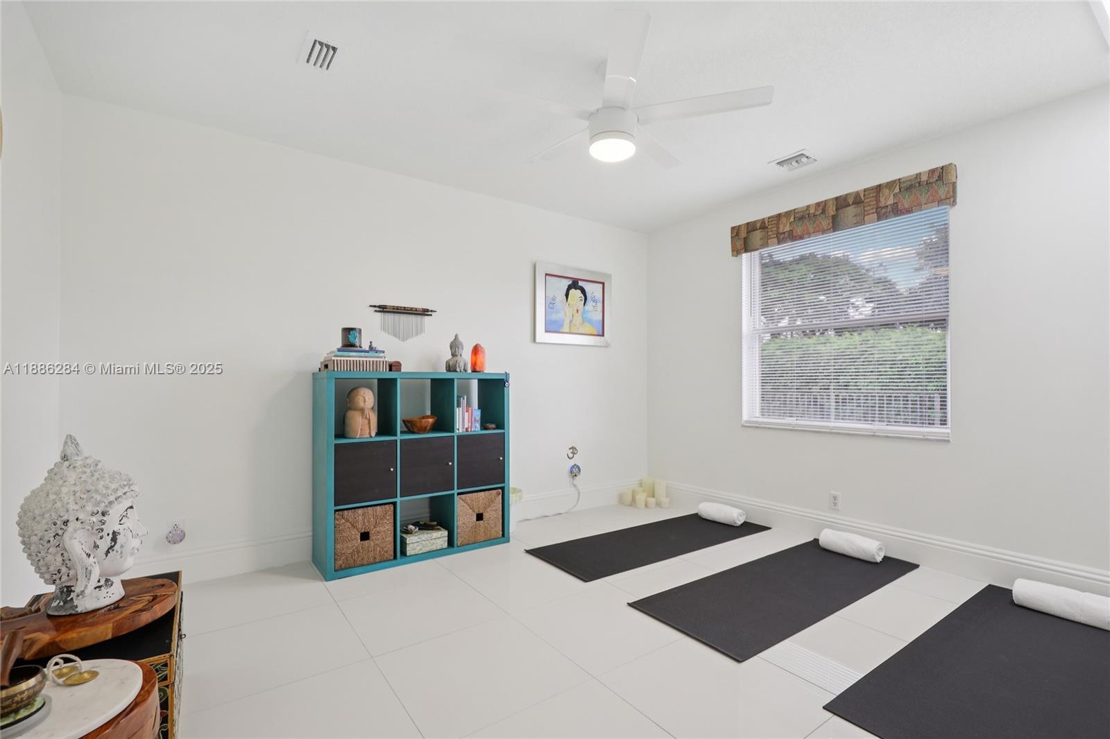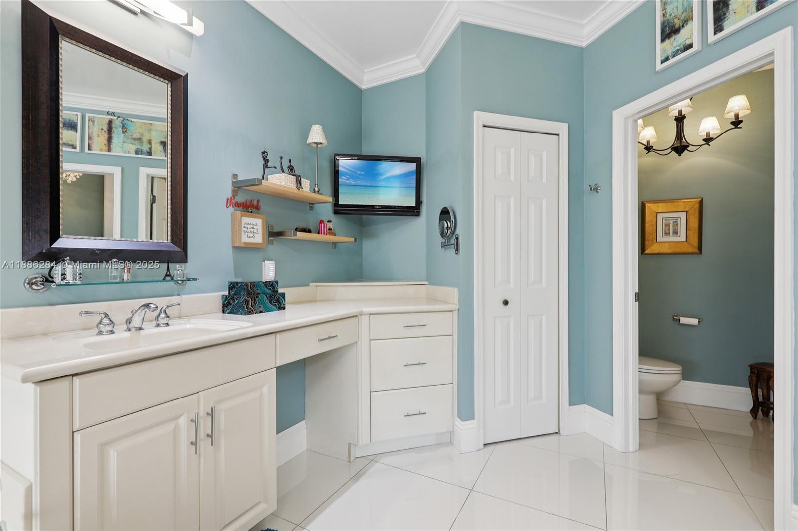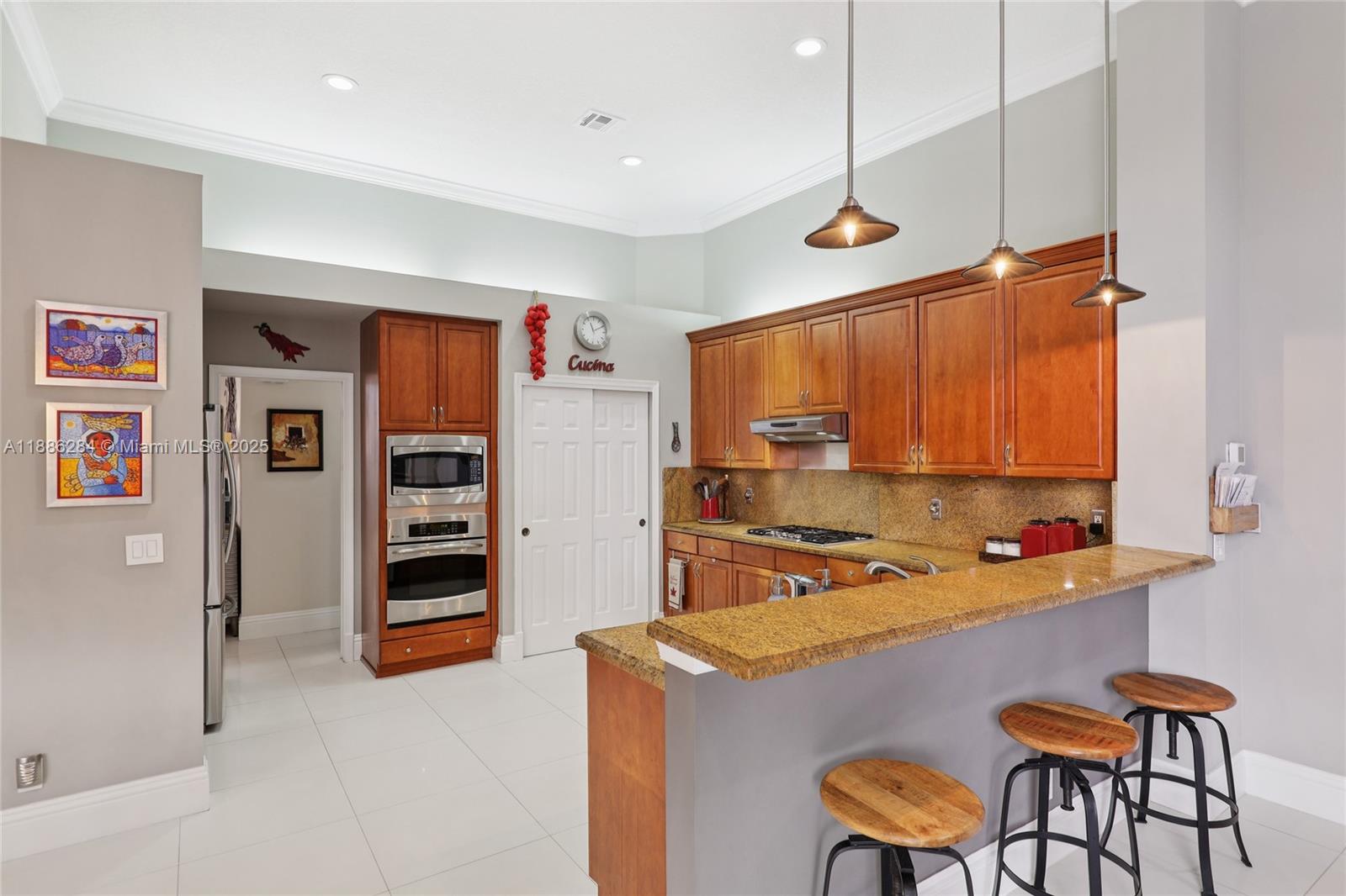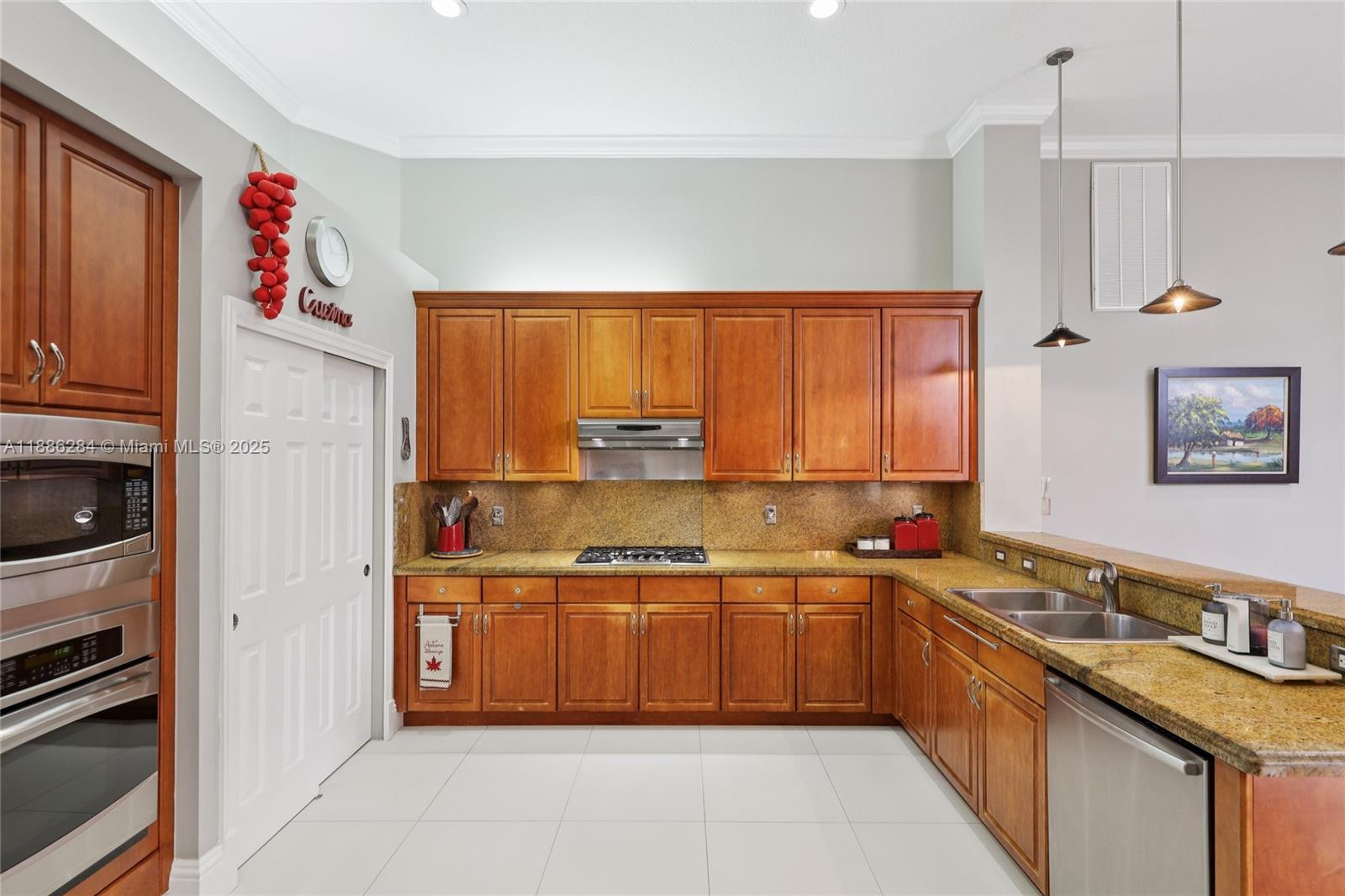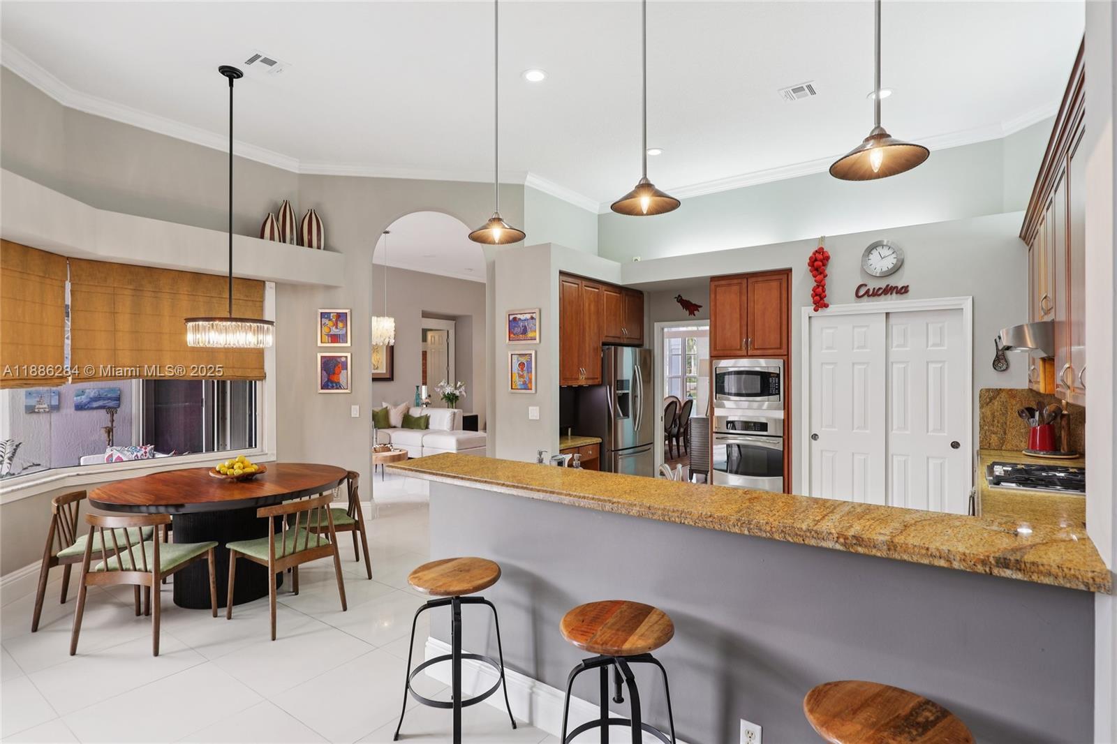 Beautiful 6-bed, 3.5-bath home with an office and a 3-car garage in the exclusive Sunset Lake community. Features dramatic volume ceilings, elegant porcelain tile floors, and a seamless indoor-outdoor flow. The spacious patio and beautiful pool create the perfect backyard retreat. Inside, the open-concept design welcomes abundant natural light. The open kitchen offers granite countertops, wood cabinetry, and a sun-drenched breakfast nook adjoining the expansive family room. The huge primary suite includes a sitting area, walk-in closets, and a spacious bath. Accordion shutters throughout provide peace of mind. Conveniently located near A-rated schools, shops, and dining. The resort-style clubhouse offers a pool, tennis courts, playgrounds, and a gym. Low HOA fee includes Internet and cable