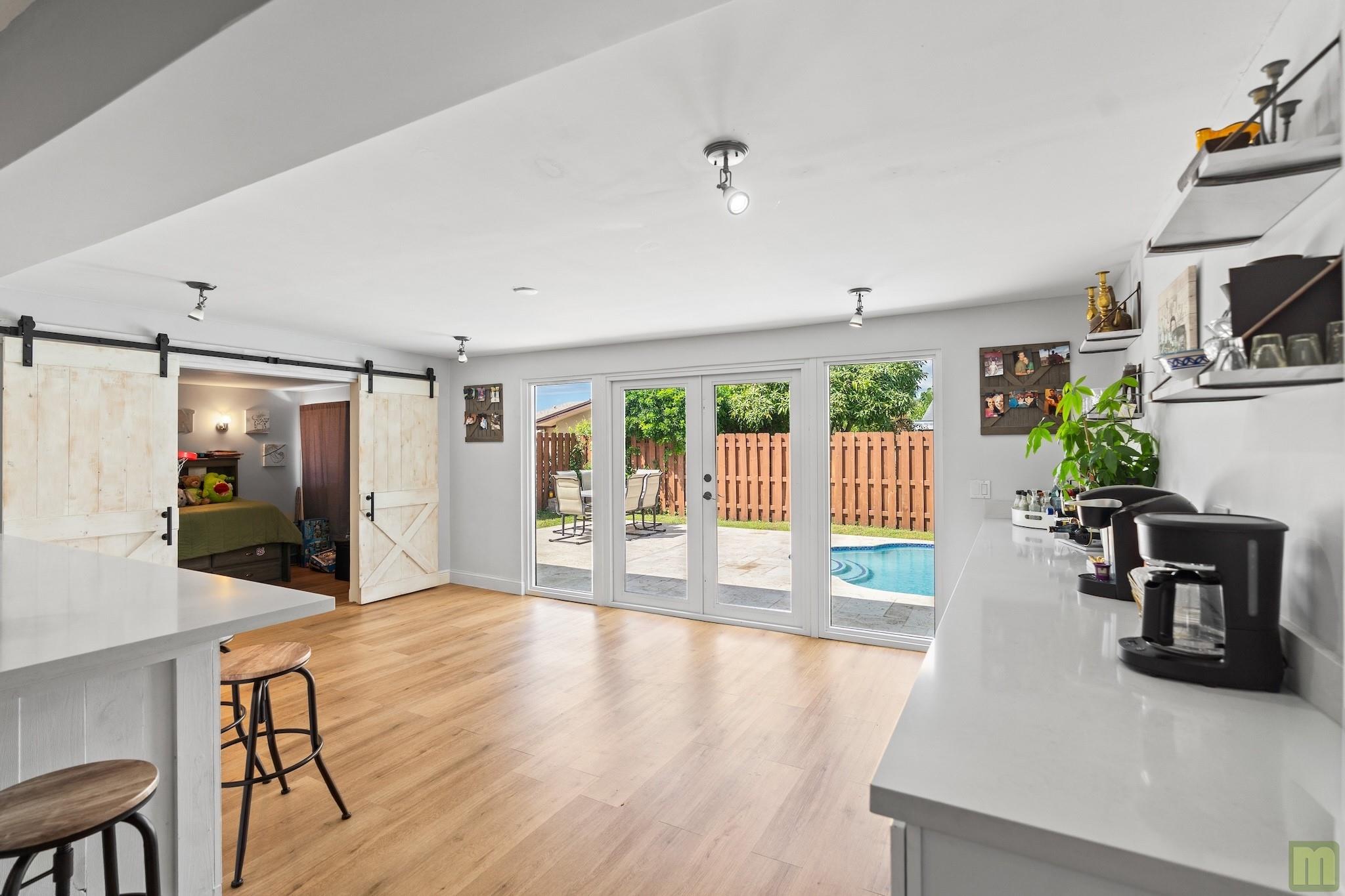 Beautifully updated, move-in ready pool home in the popular neighborhood of Palm Aire Village West. You'll feel a wam welcome from the minute you walk in the front door. Bright, open floor plan with white Oak LVP flooring throughout, gorgeous open kitchen with white shaker cabinetry, quartz countertops, stainless steel appliances and enough bar seating for a small Realtor convention! Primary bedroom has HUGE walk-in closet & en-suite bathroom. Two additional sun-filled bedrooms, main bathroom with shower & tub, large family / Florida room overlooking the newly updated pool and travertine patio. There's also a fantastic den / office that is currently being used as a 4th bedroom. No worries about FL storms with full impact windows and doors. No HOA - one of the best central Broward locations