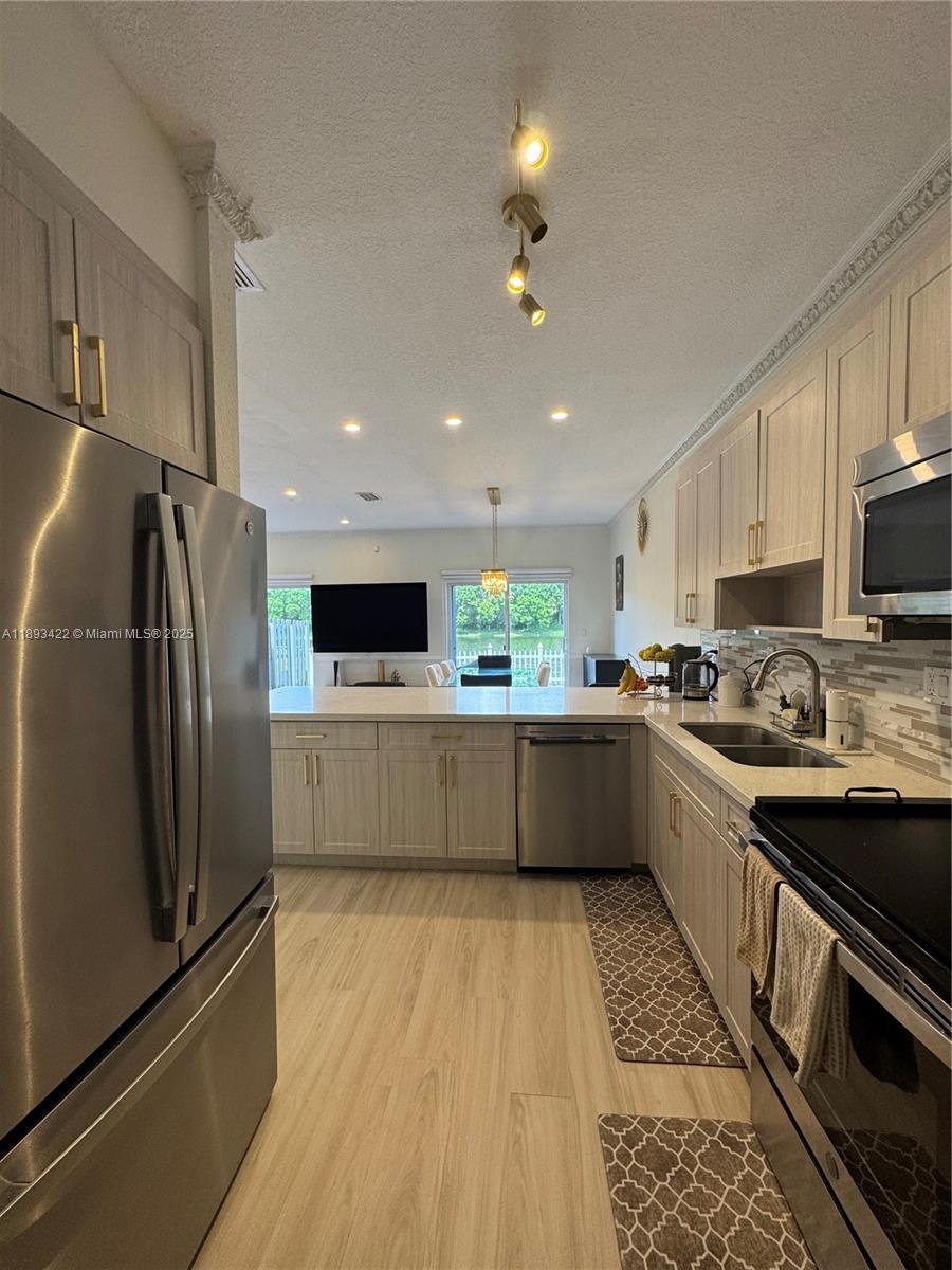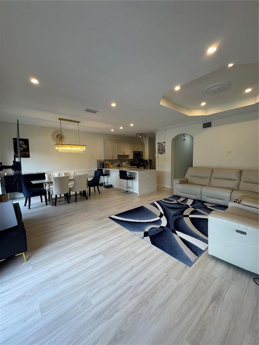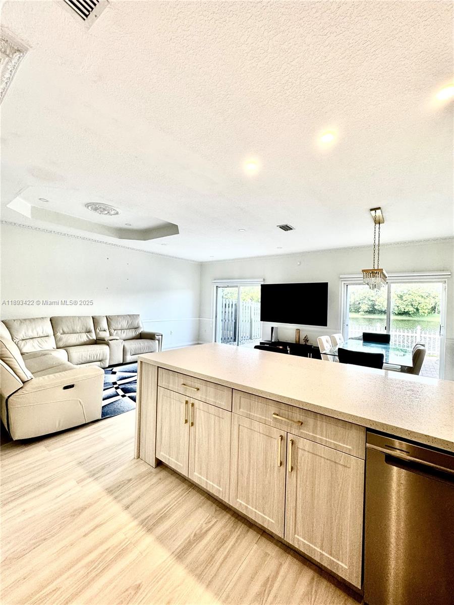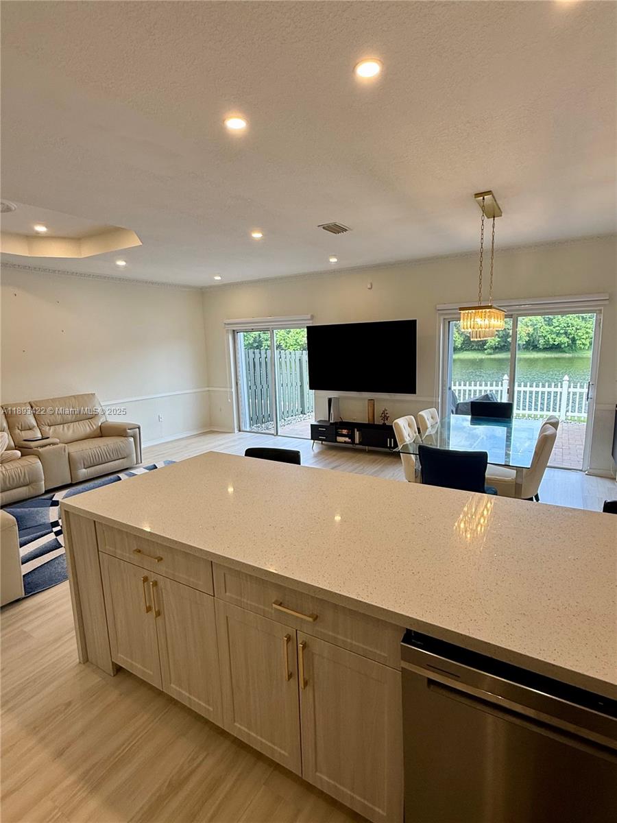 Discover this one-of-a-kind, fully renovated lakefront home in one of Miramar’s most desirable communities! This 3-bed, 2.5-bath residence offers breathtaking water views, a bright open layout, and NEW stainless-steel appliances. The designer kitchen features quartz countertops, custom cabinetry, and flows into sunlit living areas. Enjoy luxury vinyl flooring, modern bathrooms, and smart-home upgrades including an updated garage door control system. The garage has been converted into a stylish office or flex space, perfect for remote work or creative use. Step outside to a private patio overlooking the tranquil lake—ideal for entertaining or relaxing. Conveniently located near top schools, highways, and shopping. No neighbors in the front or back for privacy. Move-in ready!