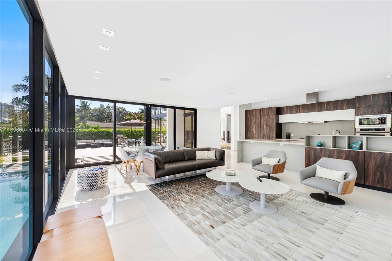 Welcome to Sunset Mansion, a breathtaking 2-story ultra-modern marvel nestled in the prestigious guard-gated Golden Isles community. This secure sanctuary boasts 6 bedrooms and 6 bathrooms, adorned with soaring 24-foot ceilings throughout the living areas, offering an unparalleled sense of space and grandeur. Elevate your lifestyle with the convenience of an elevator and indulge in culinary delights with a state-of-the-art summer kitchen. With 85 feet of yacht-friendly water-frontage, effortlessly access the bay and ocean, making every sunset an unforgettable experience. Embrace luxury living at its finest in this waterfront masterpiece. Call listing agent for exclusive showings.