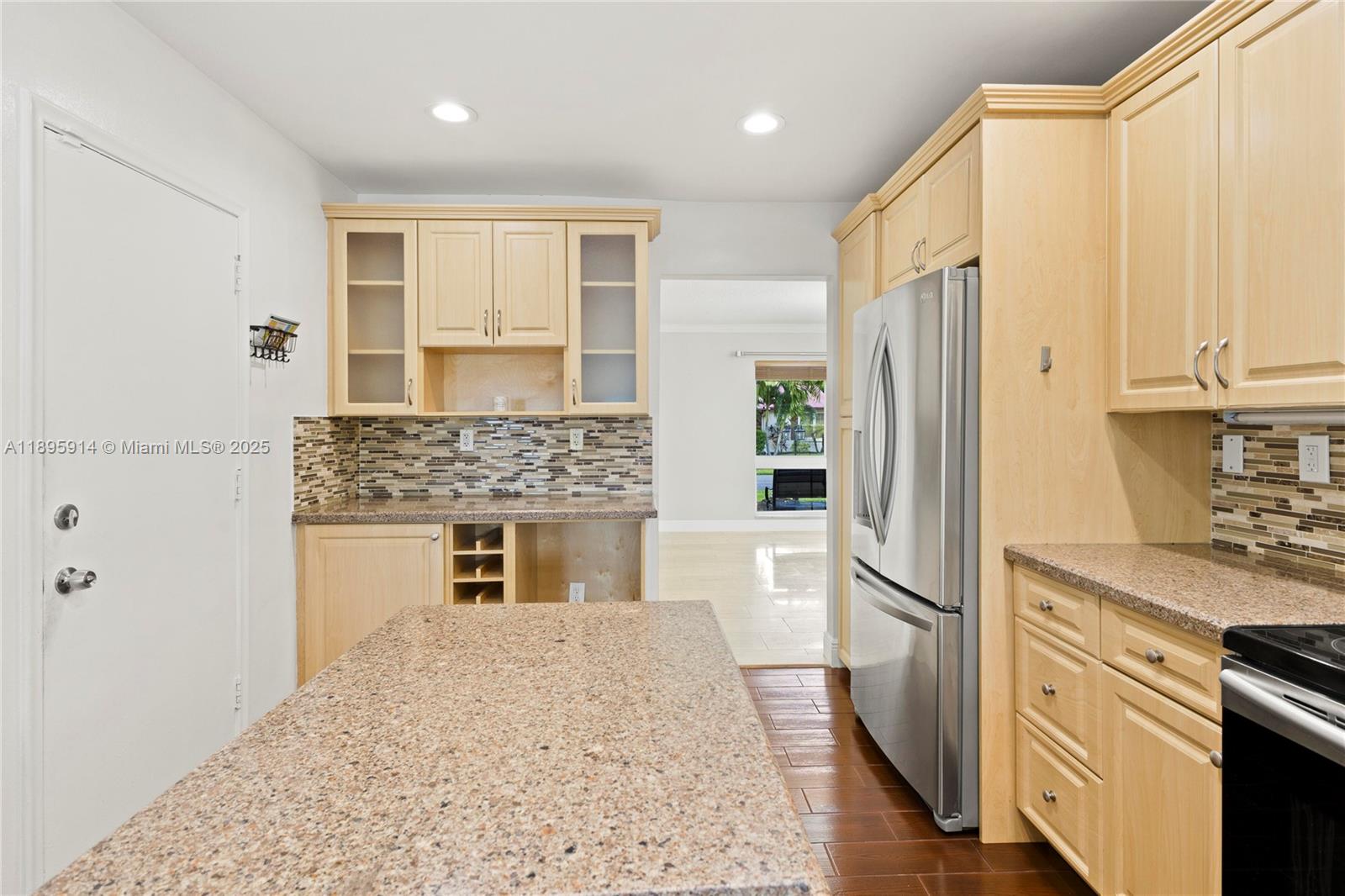 Stunning one-story 5-bed, 4-bath home with a multi-purpose room and open floor plan filled with natural light. Features include a spacious living room with accent wall and recessed lighting, large kitchen with granite countertops, stainless steel appliances, and renovated bathrooms with quartz counters and spa benches. Enjoy a huge patio, saltwater pool, and private fenced yard—suitable for entertaining. Includes hurricane-proof windows/doors, 2-car garage, and space for 8 cars. Located in a serene, family-friendly neighborhood with A-rated schools, near shopping, dining, entertainment, highways, airport, and the beach. Don’t miss this incredible opportunity!