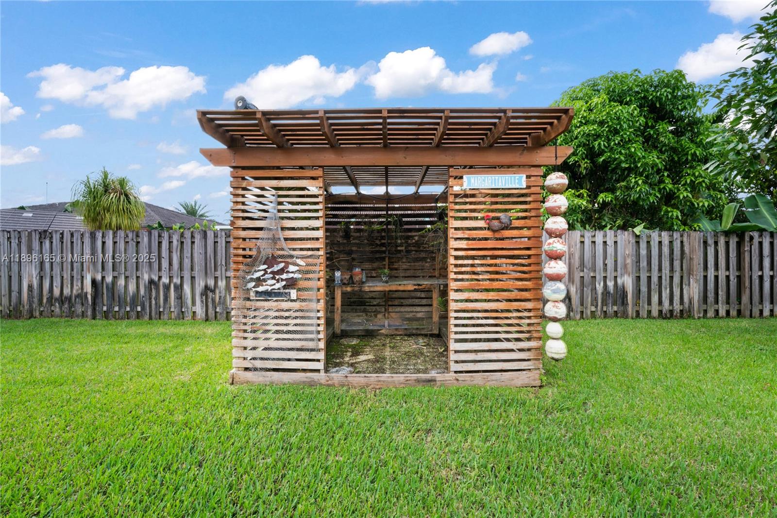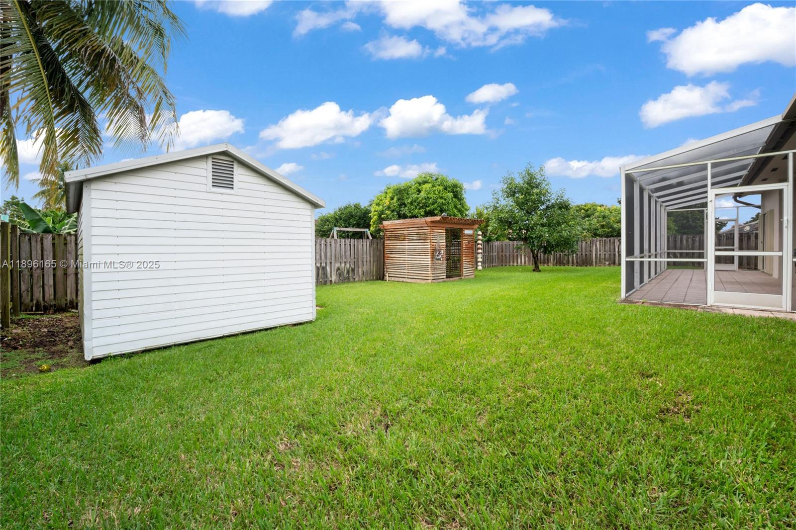 Beautifully maintained 4-bedroom, 2.5-bath home with brand-new tile roof and all impact windows and doors. Original owner, pride of ownership throughout. Features include a custom kitchen with granite countertops, solid wood cabinetry, and rollout drawers. Newly renovated bathroom with rain shower. Whole-house 27,000-watt generator with three 100-gallon propane tanks provides full power backup. Oversized lot with 10' x 12' storage shed and irrigated plant/orchid house. Located in a quiet neighborhood with top-rated schools.